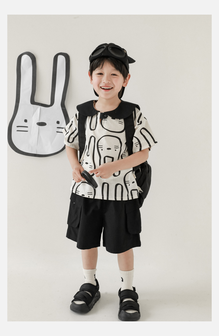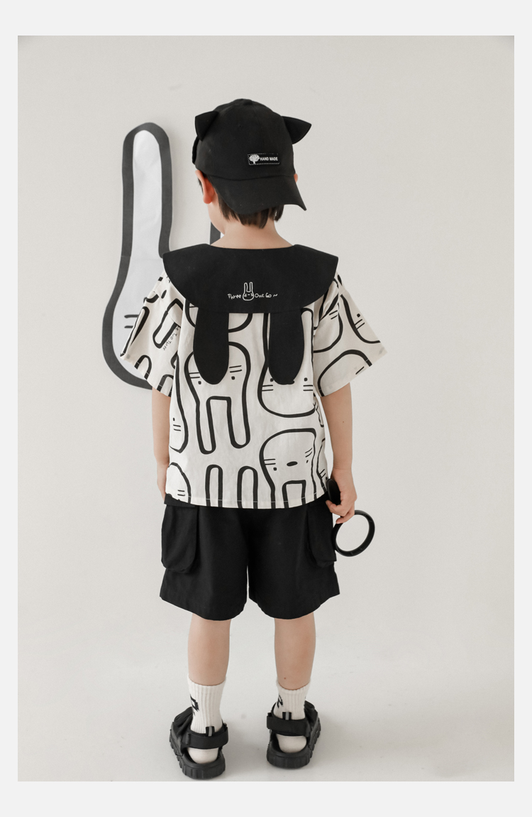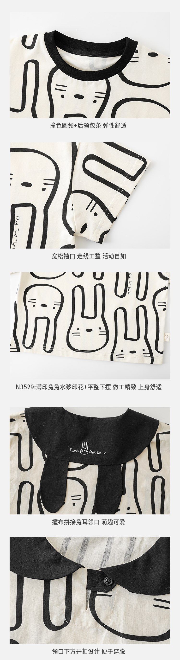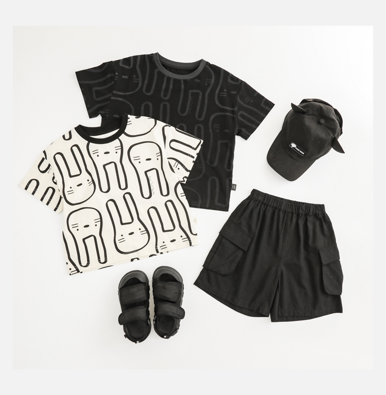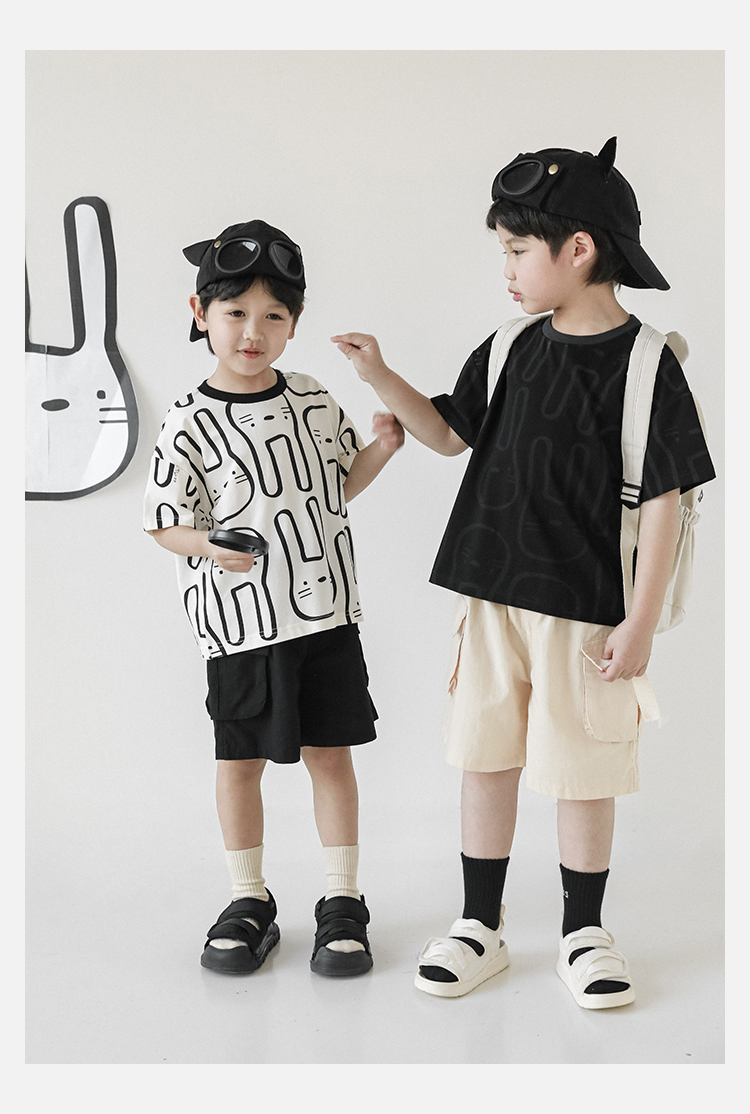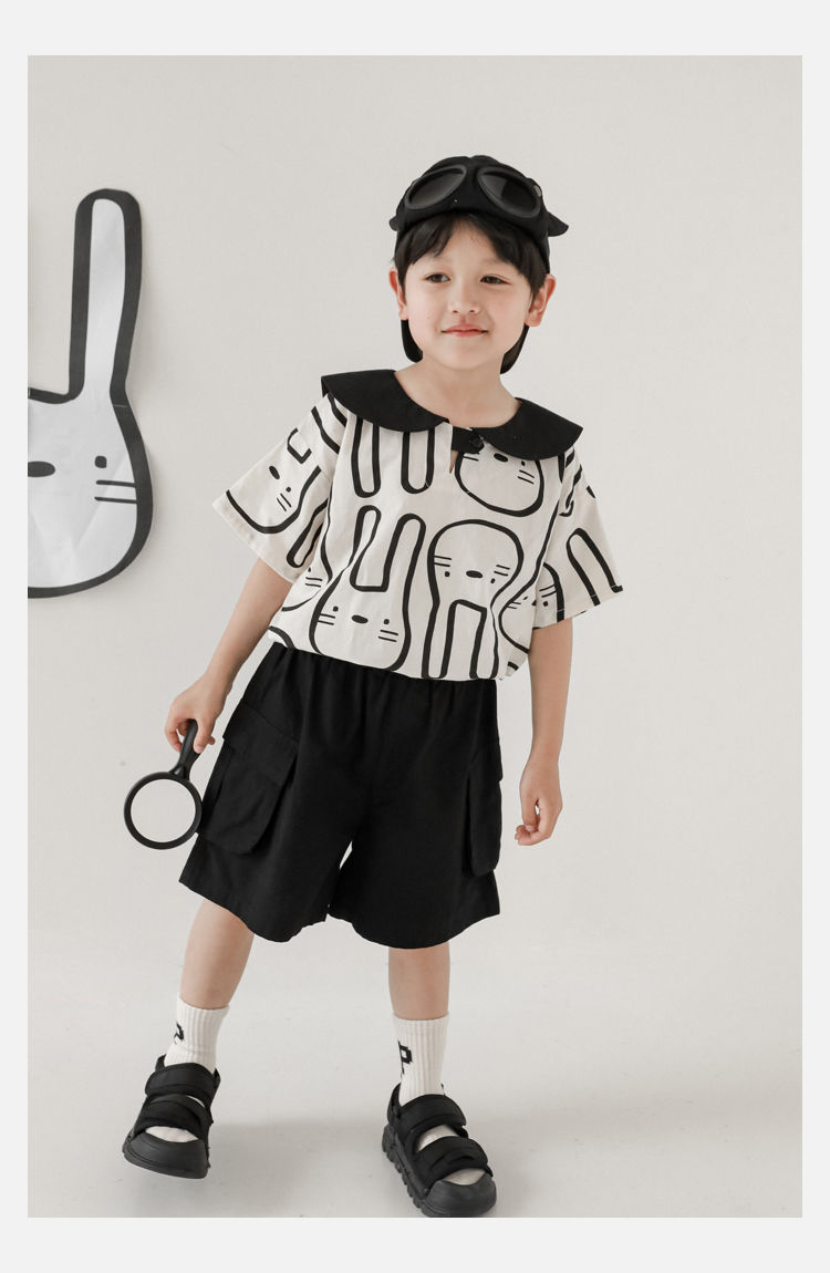 우립 어린이 토끼 프린트 인형 랩 티셔츠 여름 얇은 최고 소년 캐주얼 바지 세트스토어 가기