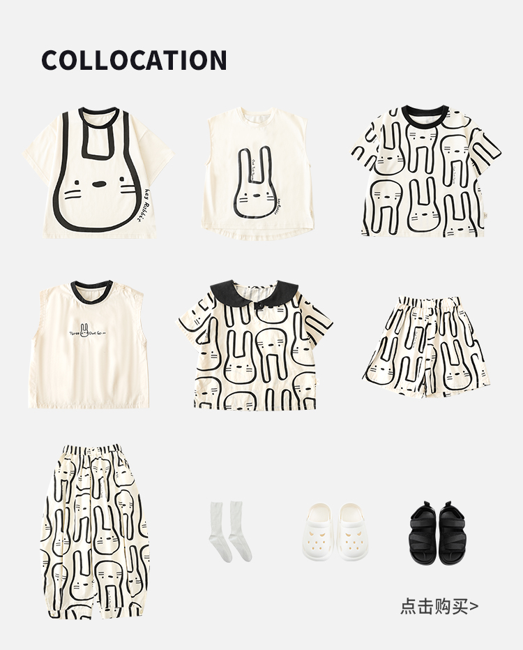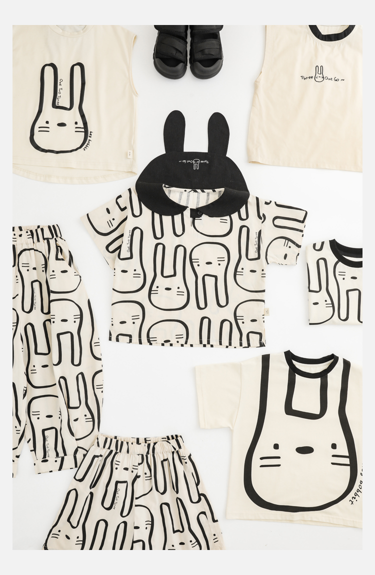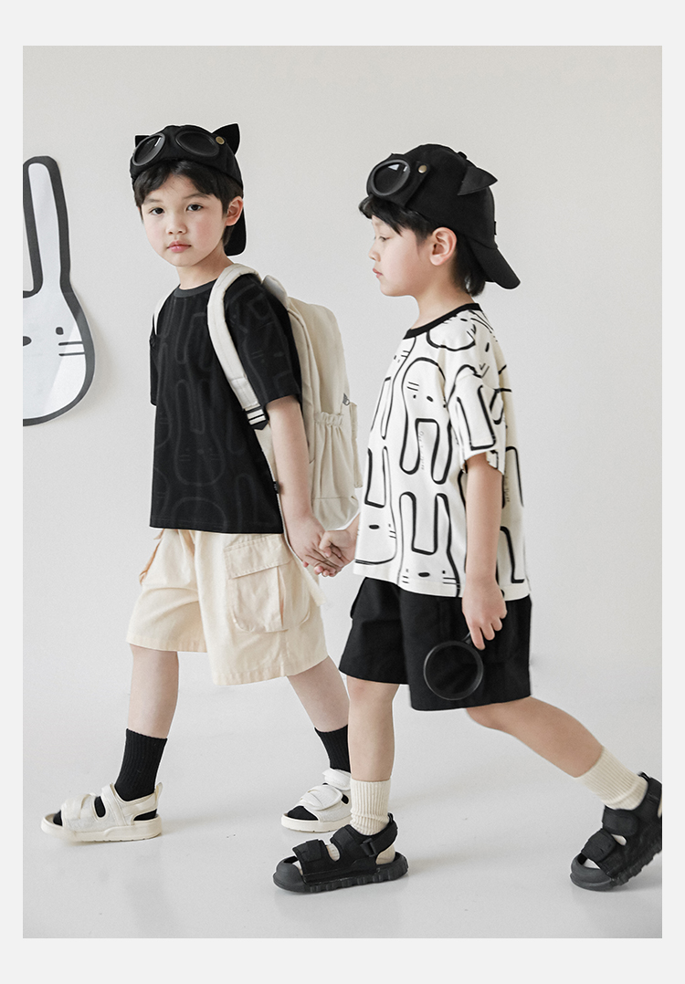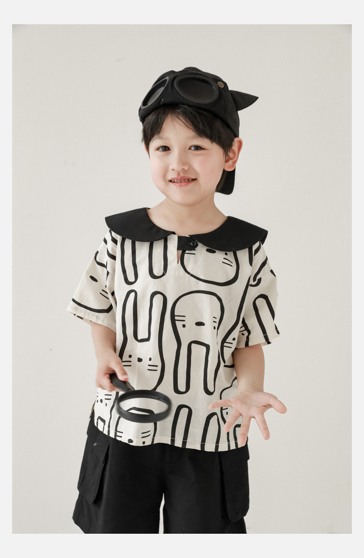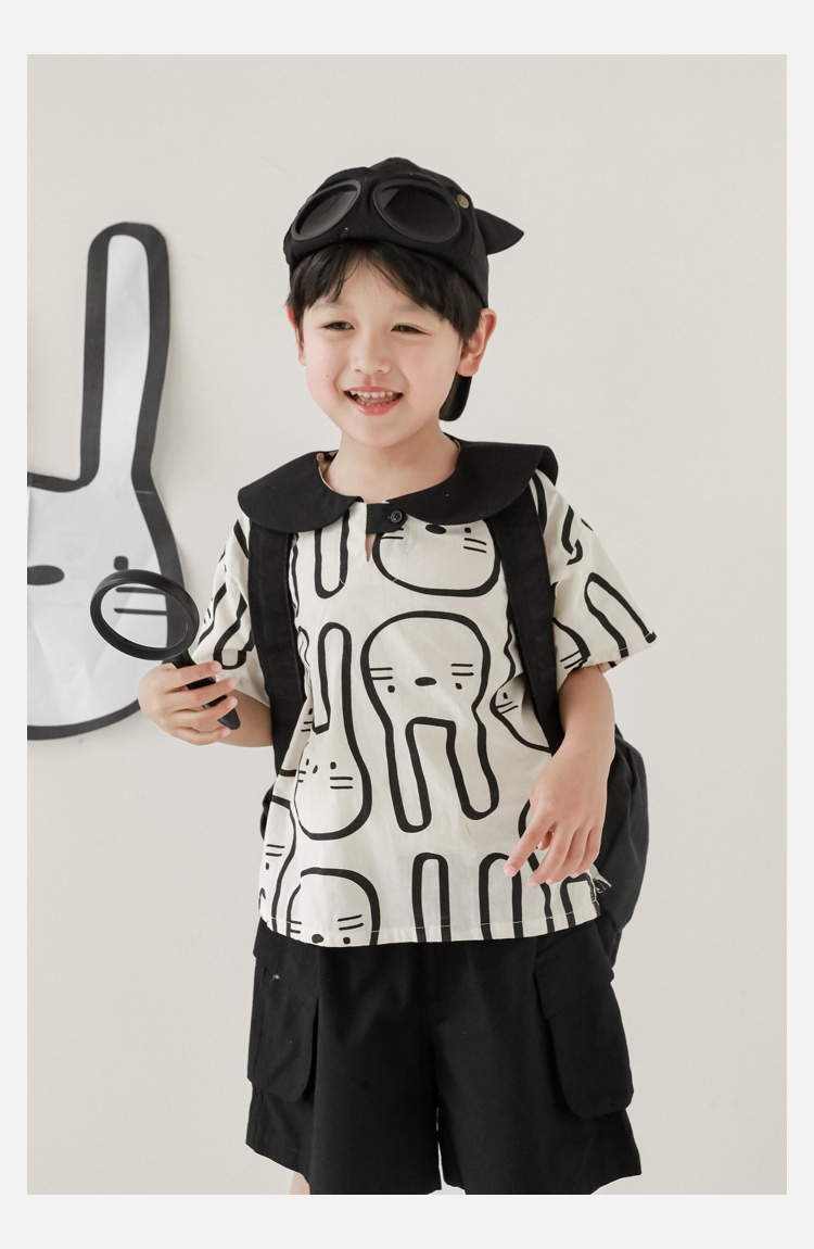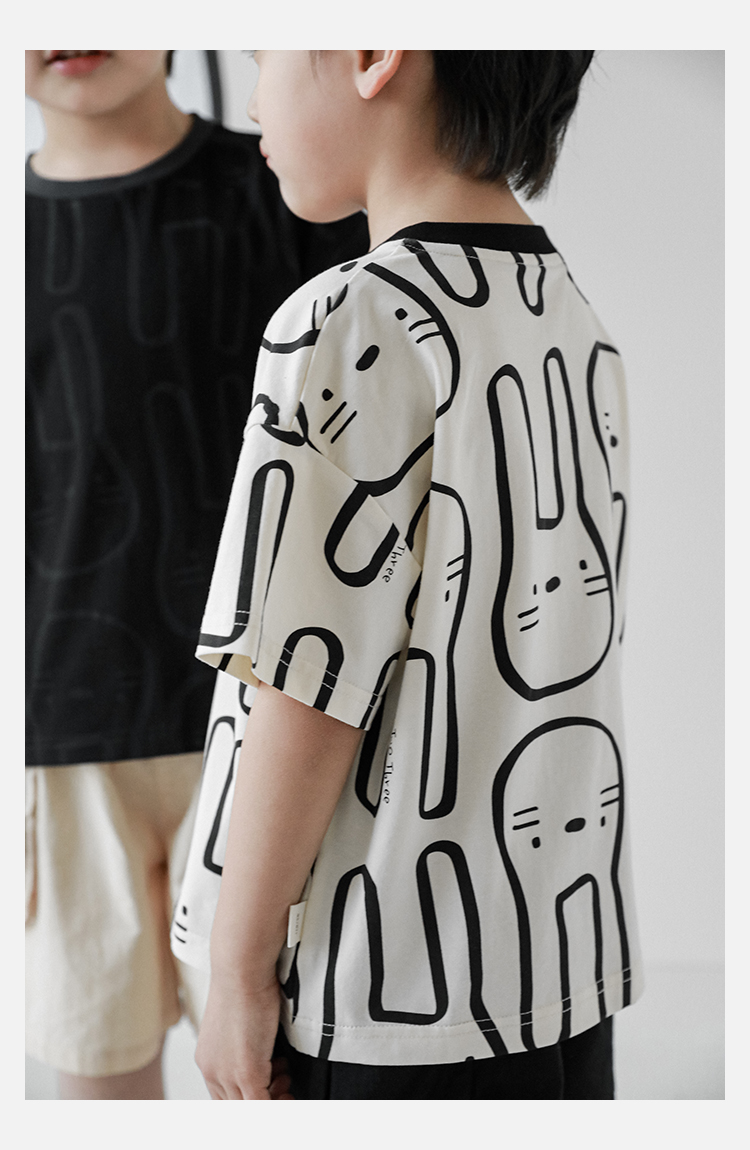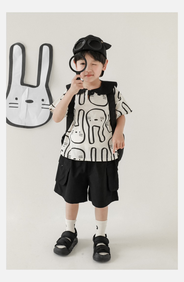 우립 어린이 토끼 프린트 인형 랩 티셔츠 여름 얇은 최고 소년 캐주얼 바지 세트스토어 가기