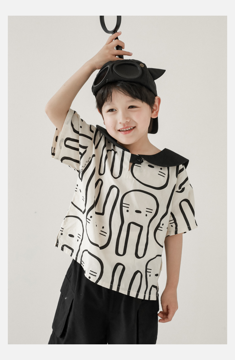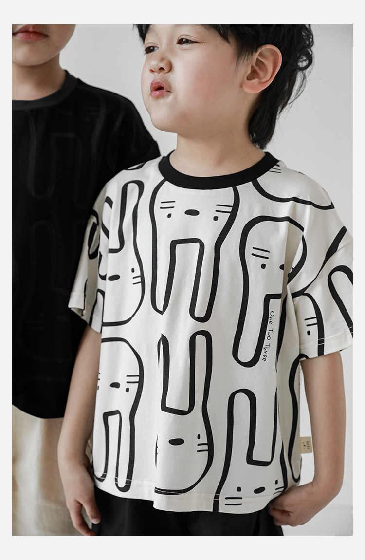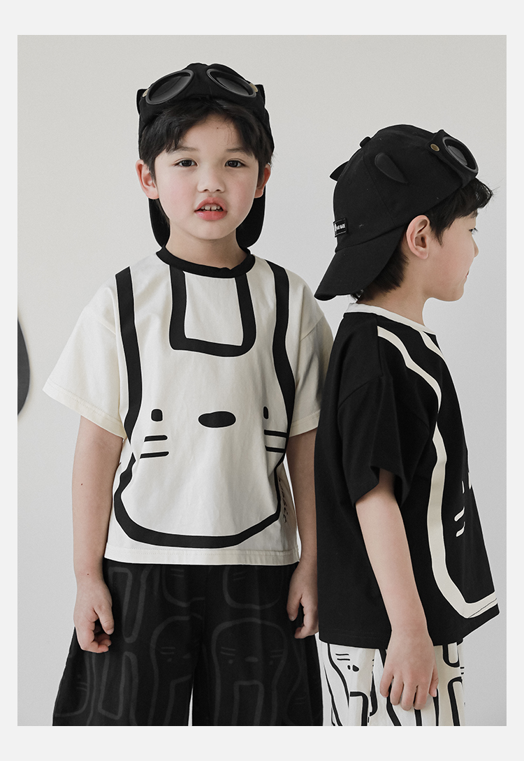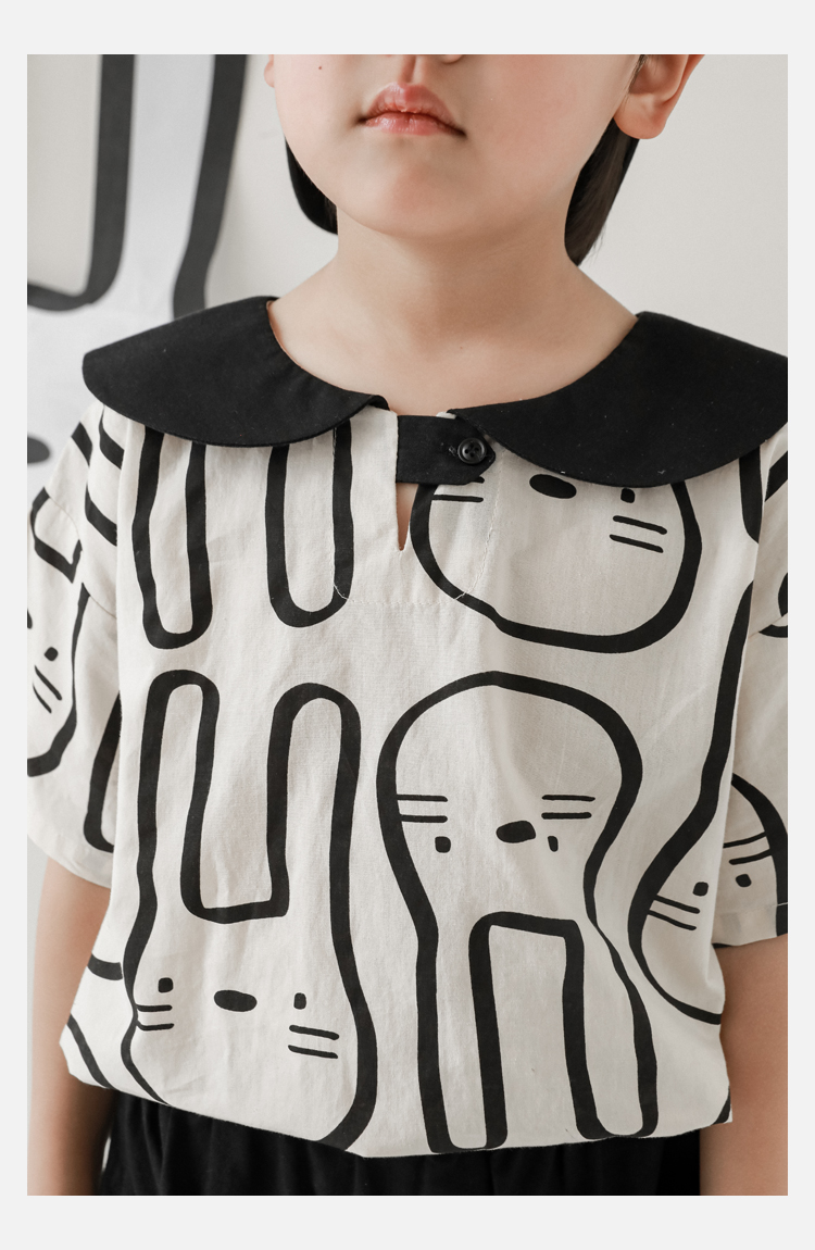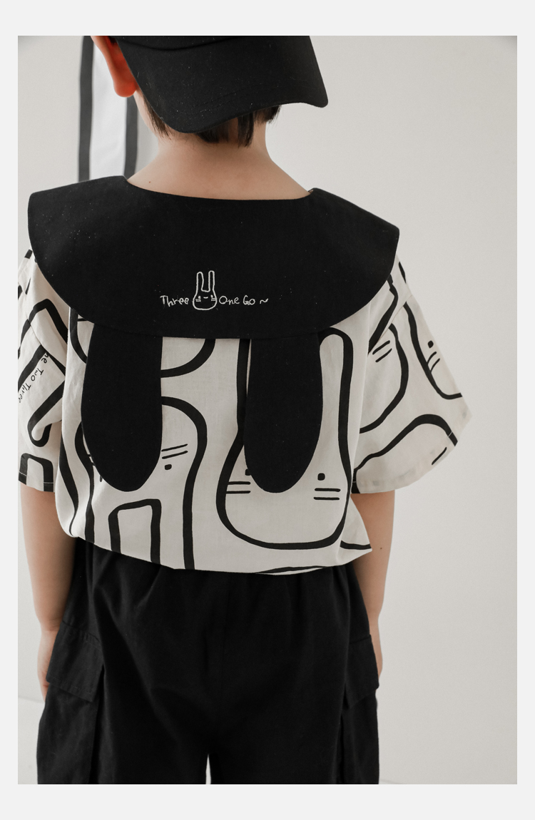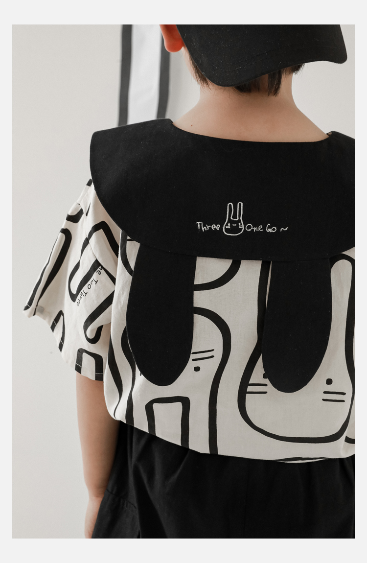 우립 어린이 토끼 프린트 인형 랩 티셔츠 여름 얇은 최고 소년 캐주얼 바지 세트스토어 가기