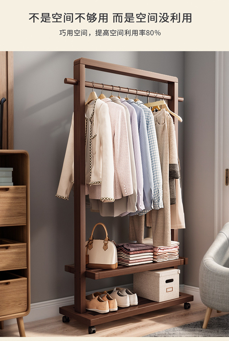 옷 옷걸이 바닥 서 간단한 옷 옷걸이 침실 이동식 실내 가정용 옷 걸이 형 단단한 나무 코트 랙 홈스테이스토어 가기