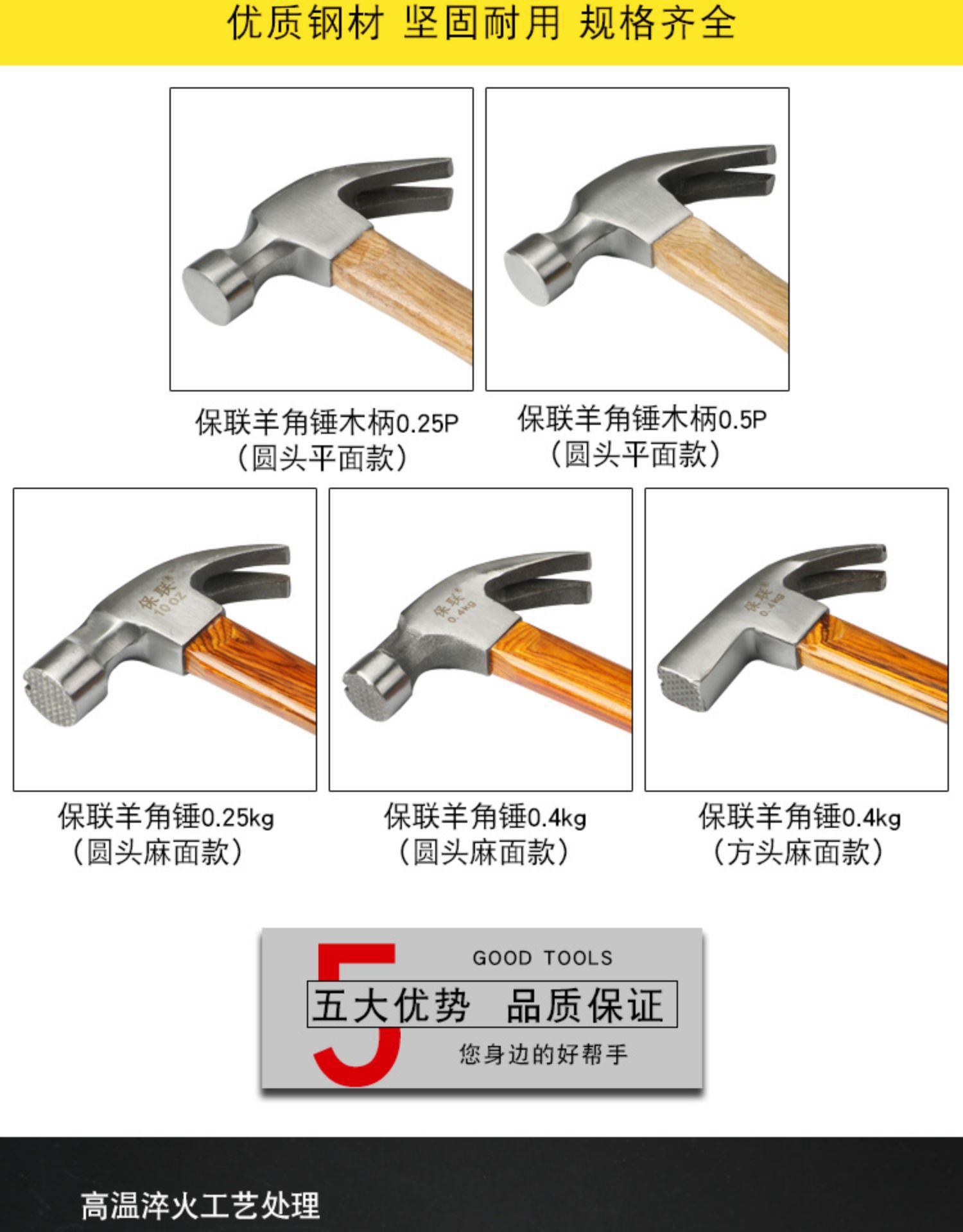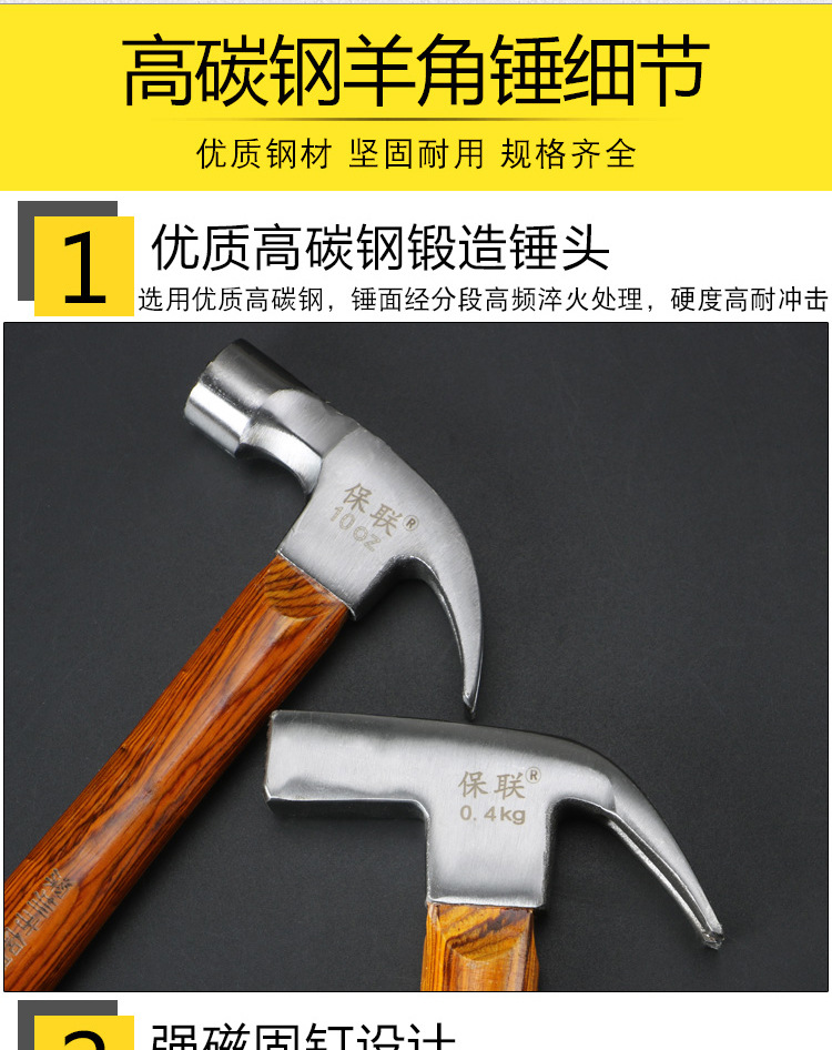 • 500g 결합 된 단조 클로 해머 (둥근 머리)
