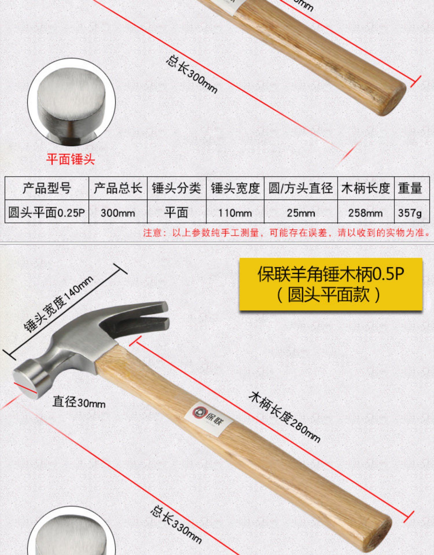 • 250g 미끄럼 방지 클로 해머 (둥근 머리)
