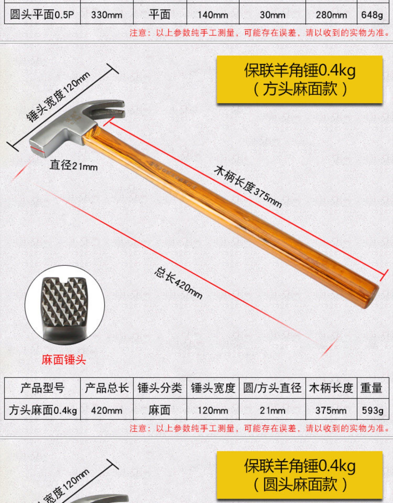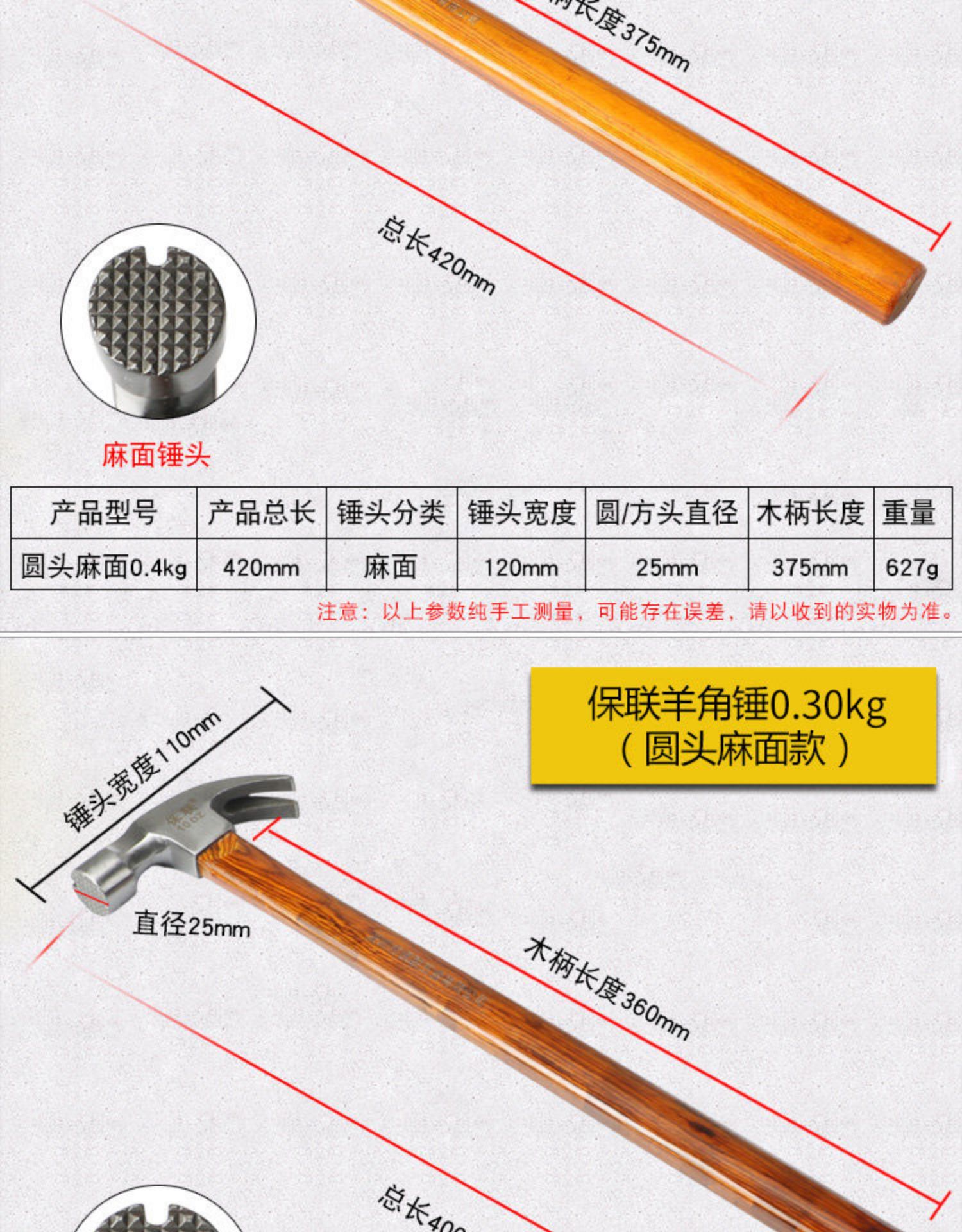 • 400g 미끄럼 방지 클로 해머 (둥근 머리)