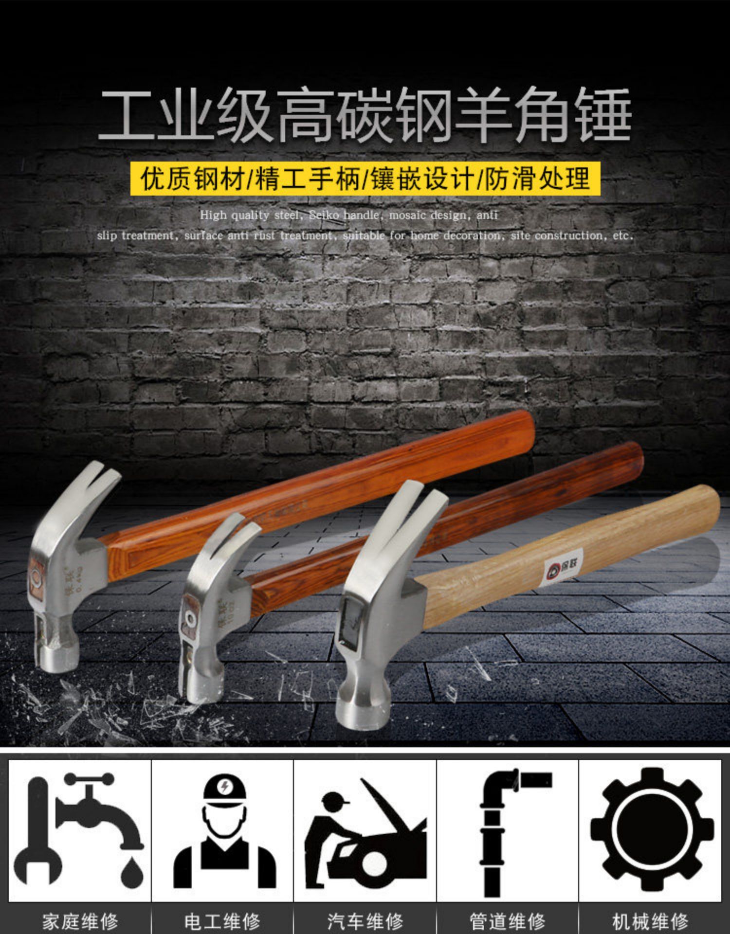 • 400g 미끄럼 방지 클로 해머 (검은 손잡이 사각형 머리)