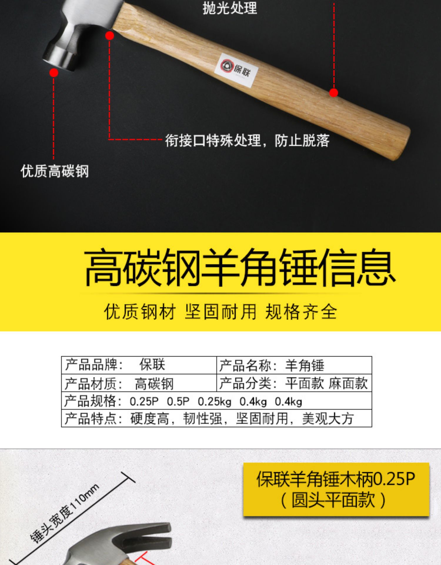 • 0.25P 평면 클로 해머 (둥근 머리)