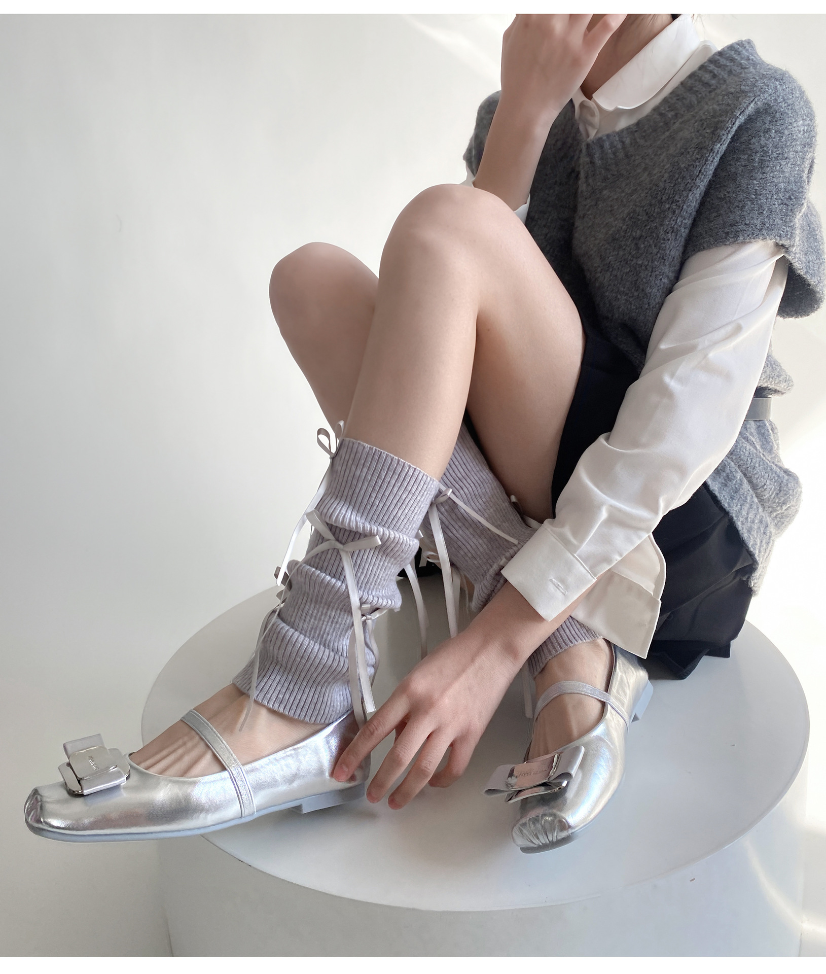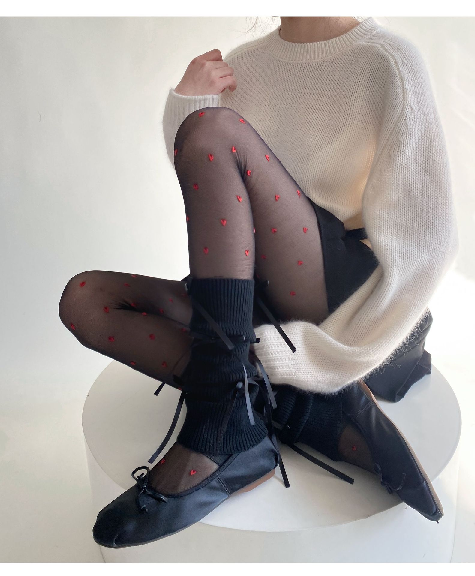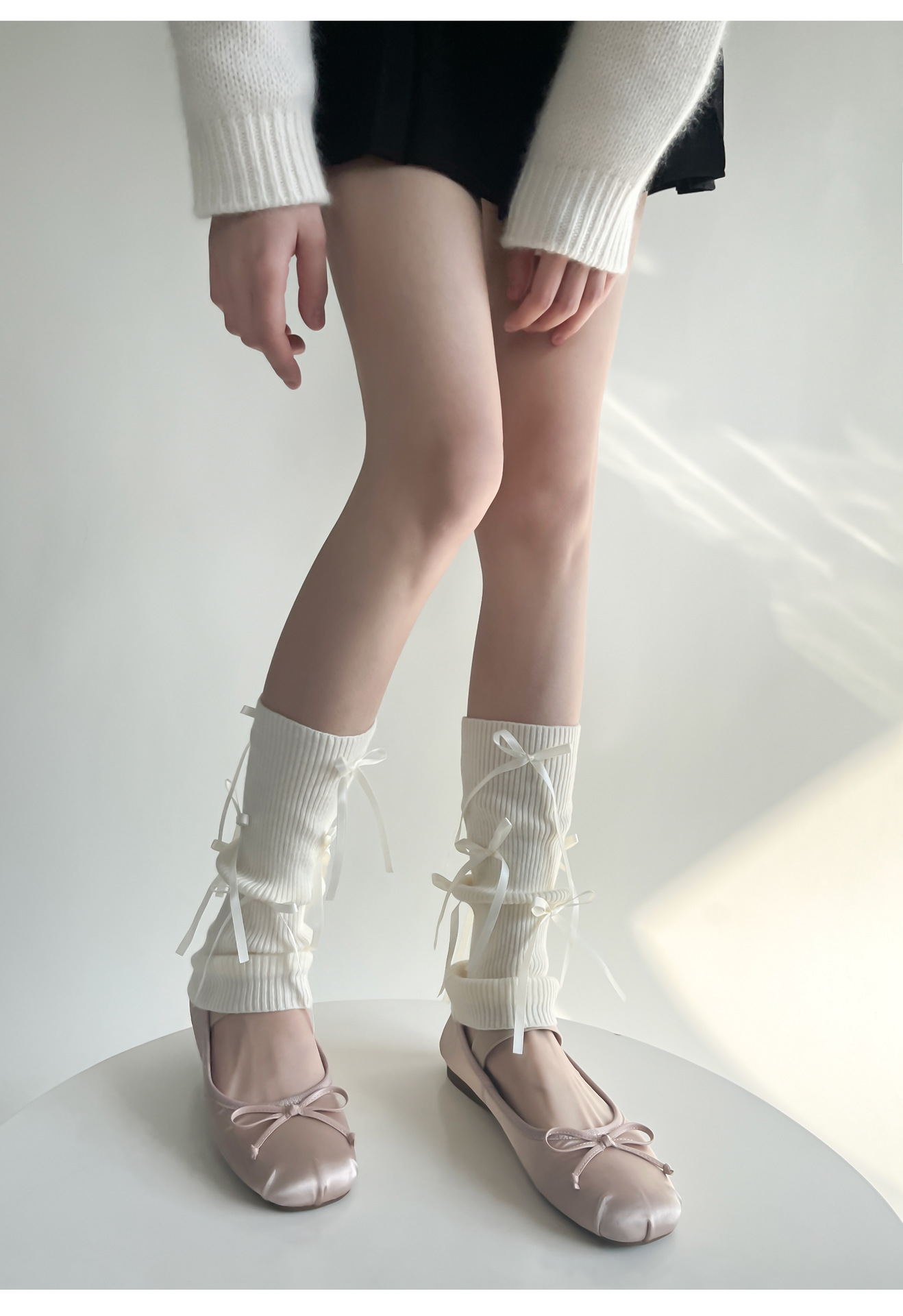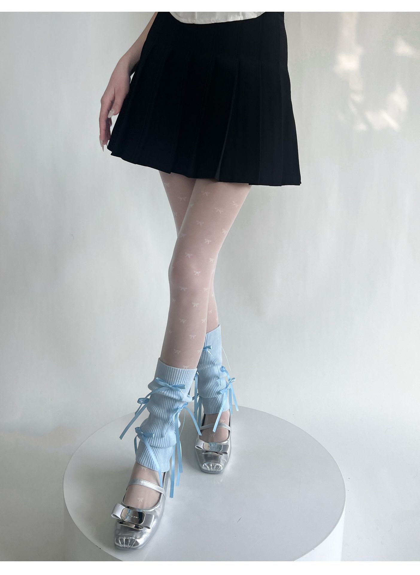 봄과 여름 캔디 컬러 얇은 발레 스타일 달콤한 양말 여성 핑크 블루 나비 파일 다리 커버 소녀 부츠 커버
