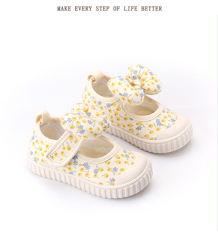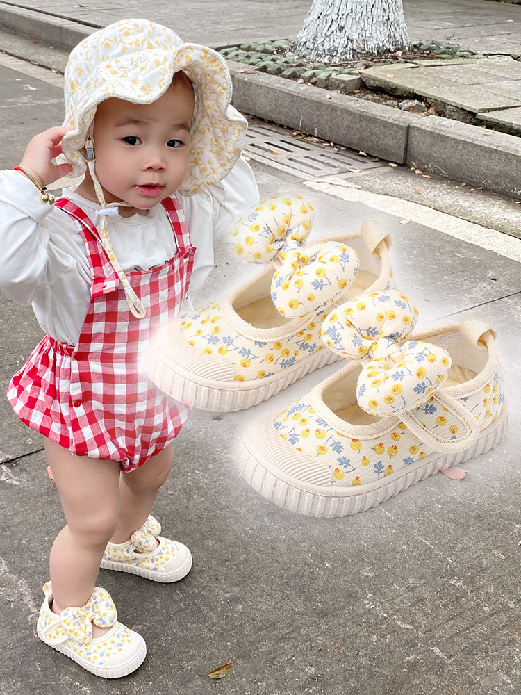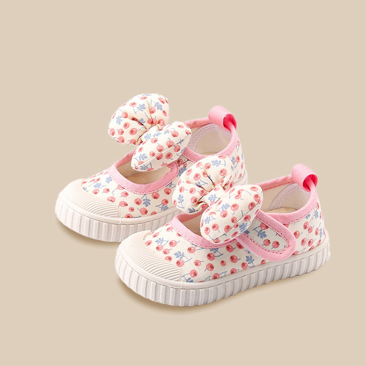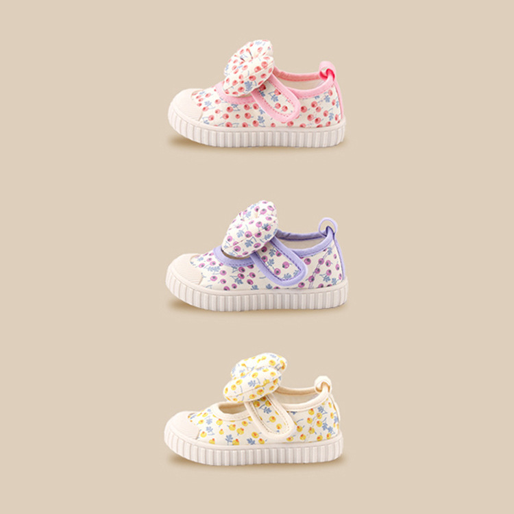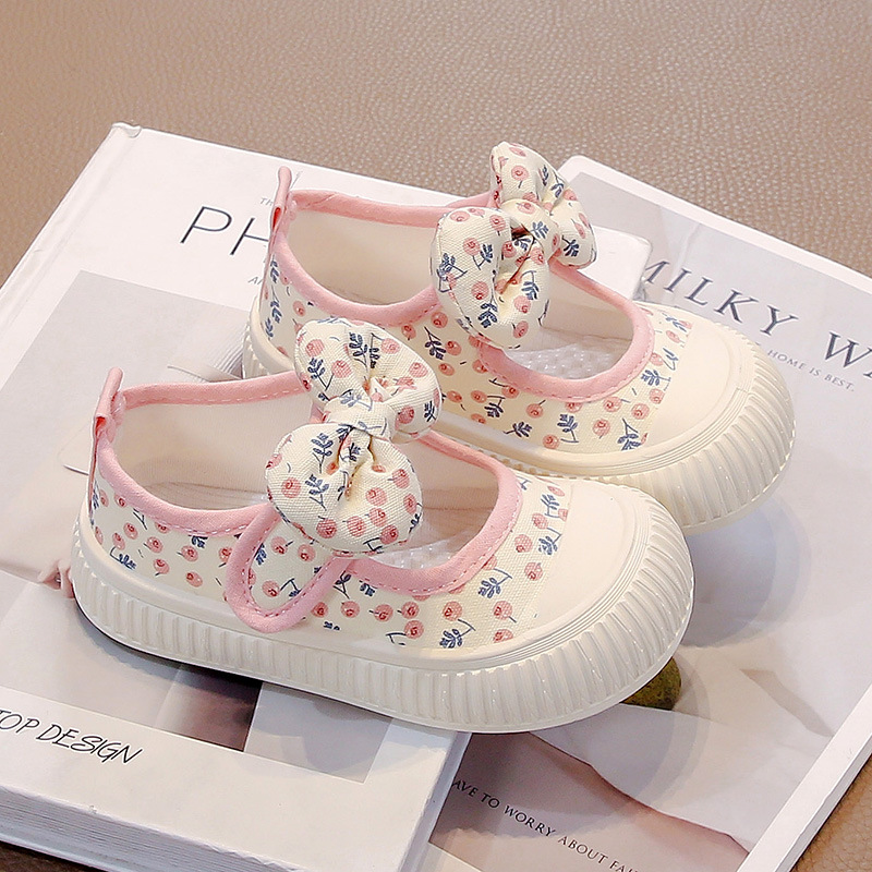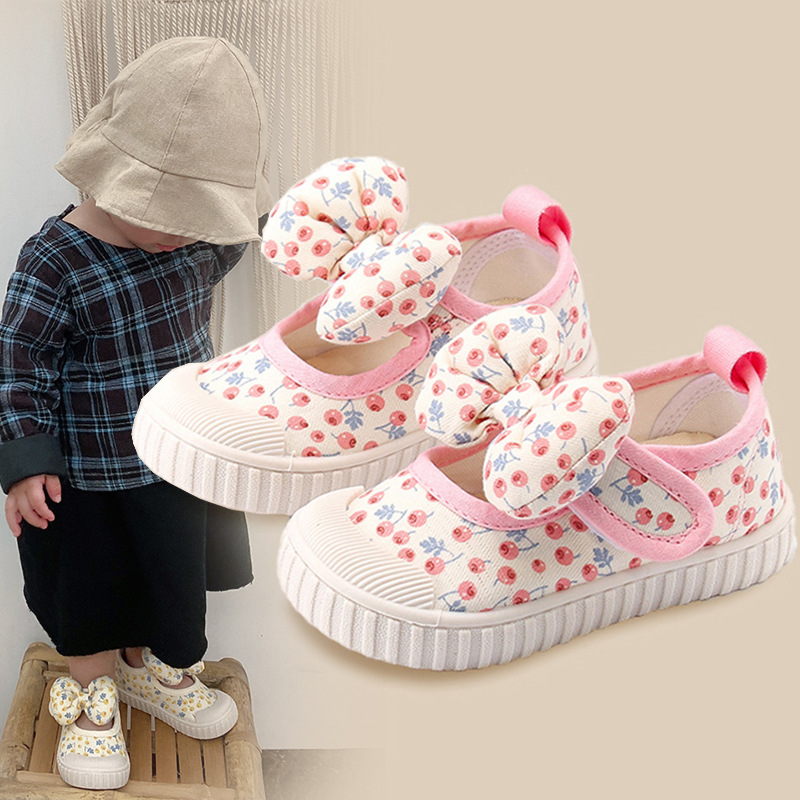 소녀 나비 매듭 캔버스 신발 미끄럼 방지 부드러운 바닥 2024 봄 새로운 통기성 캐주얼 신발 모두 일치하는 중간 및 작은 어린이 패션스토어 가기