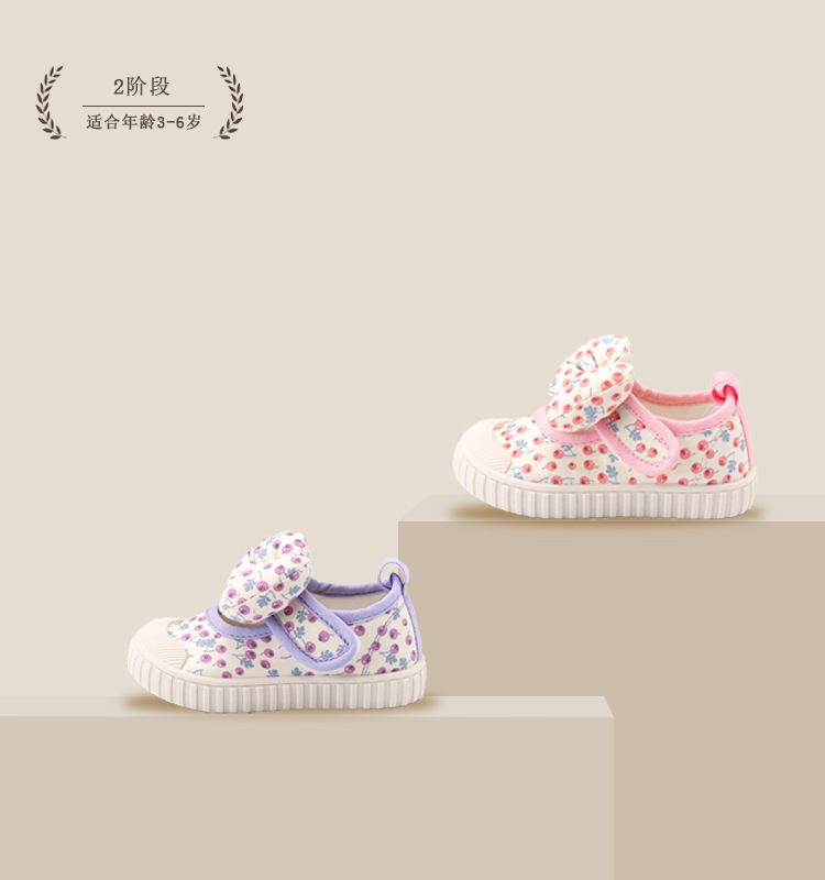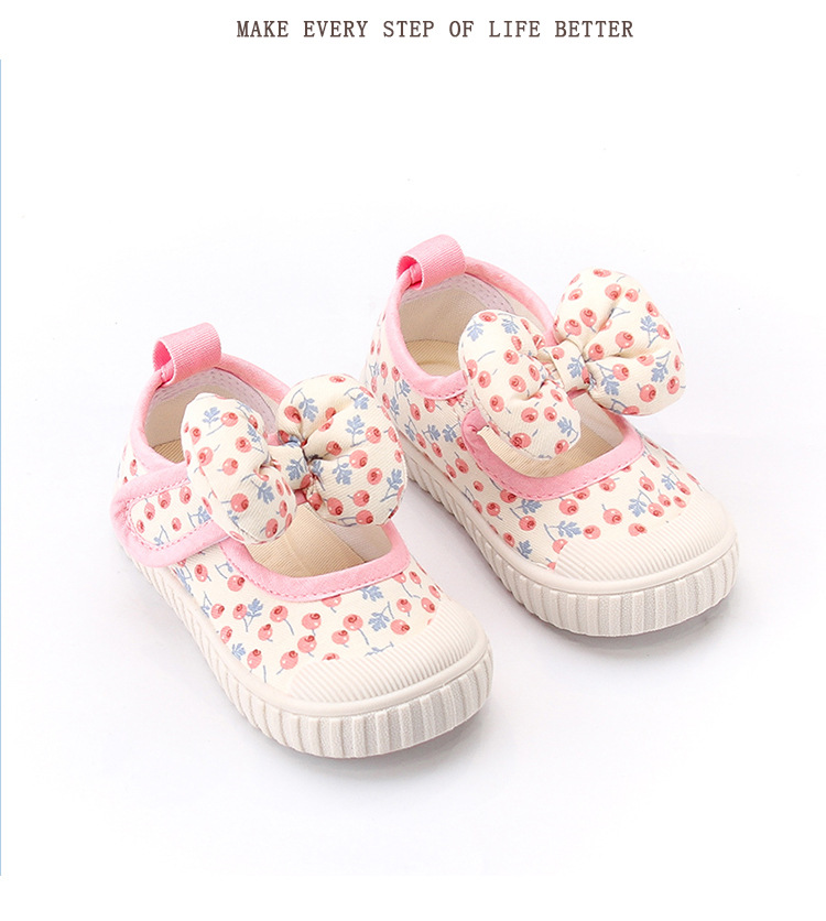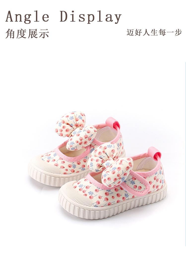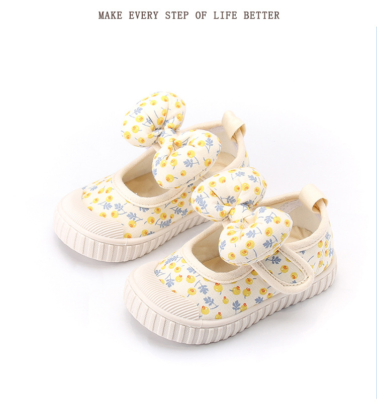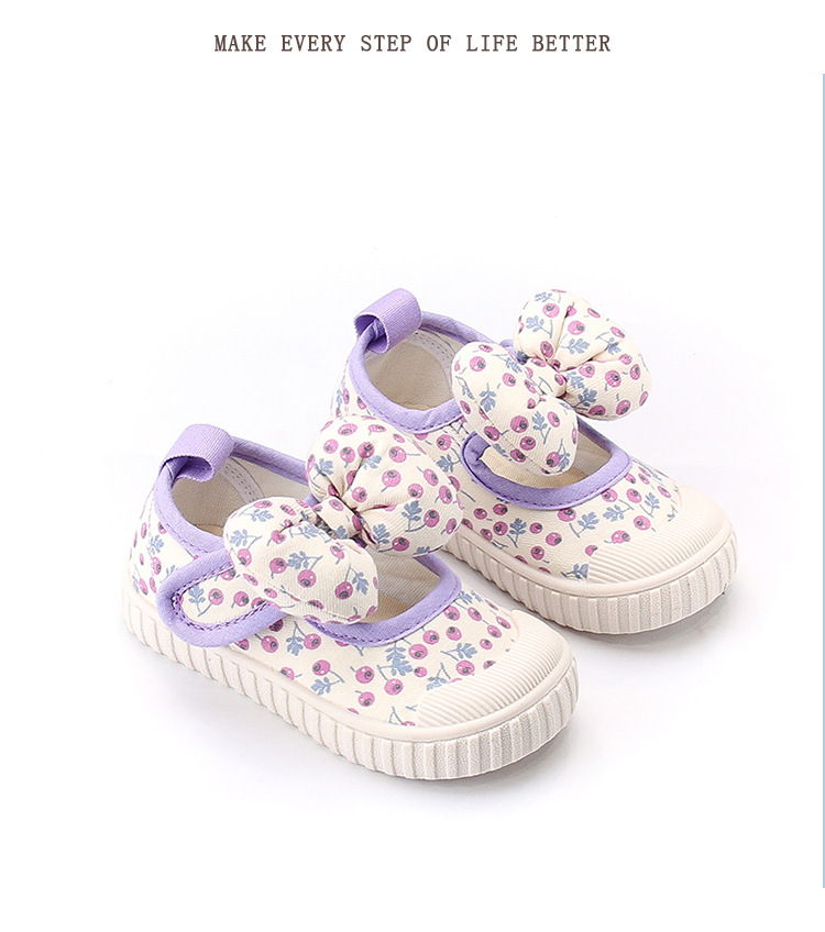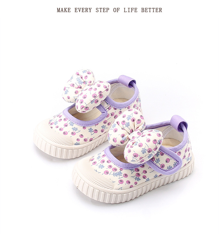 소녀 나비 매듭 캔버스 신발 미끄럼 방지 부드러운 바닥 2024 봄 새로운 통기성 캐주얼 신발 모두 일치하는 중간 및 작은 어린이 패션스토어 가기