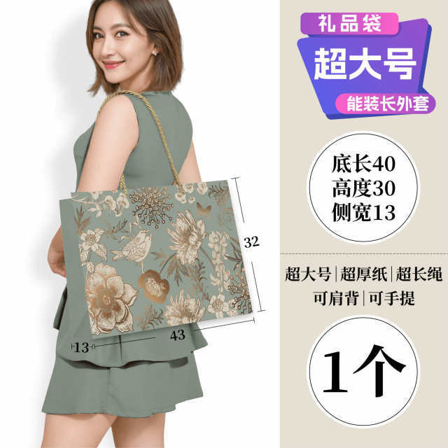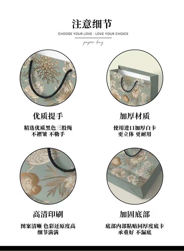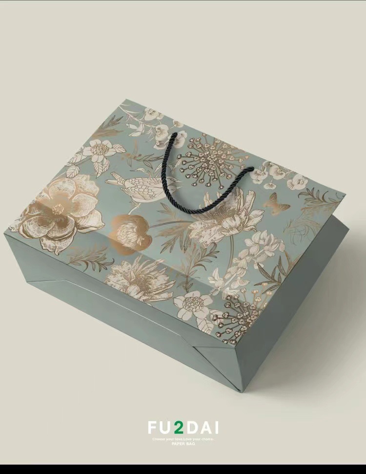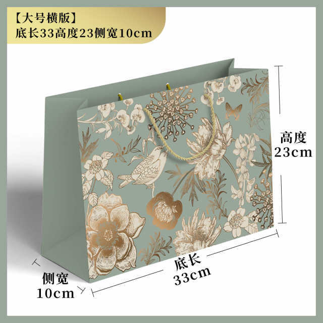 빈티지 선물 가방 황금 꽃과 새 쇼핑백 하이 엔드 선물 가방 의류 매장 포장 가방 두꺼운 휴대용 종이 가방