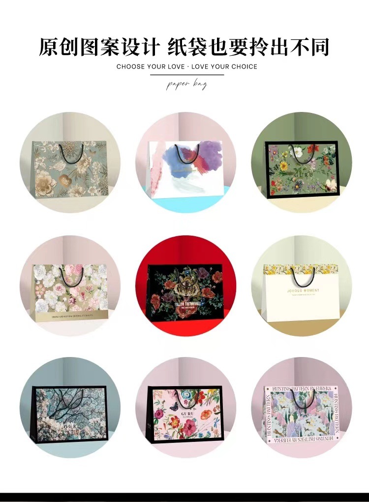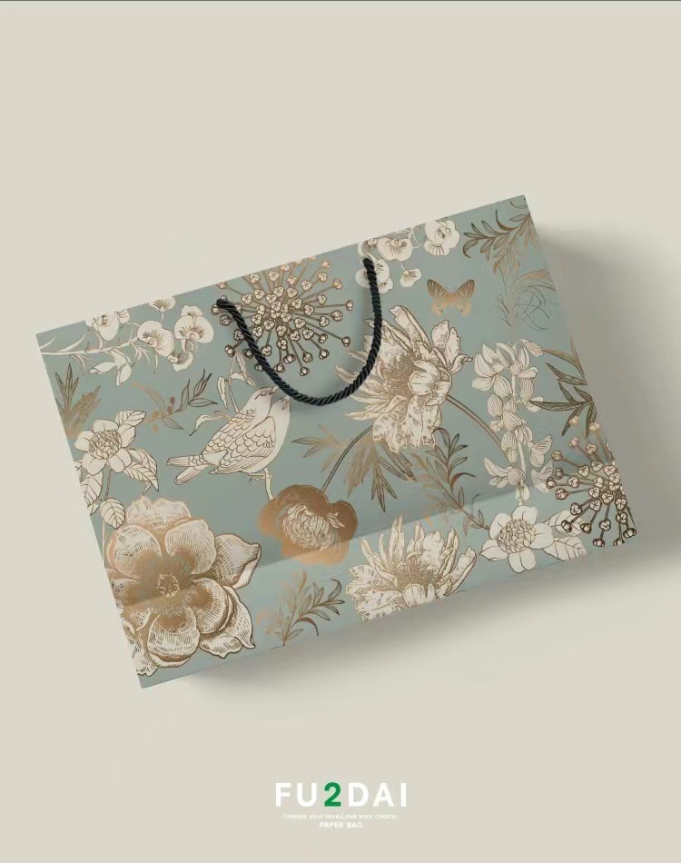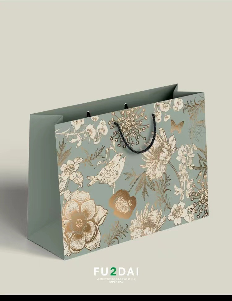 빈티지 선물 가방 황금 꽃과 새 쇼핑백 하이 엔드 선물 가방 의류 매장 포장 가방 두꺼운 휴대용 종이 가방스토어 가기