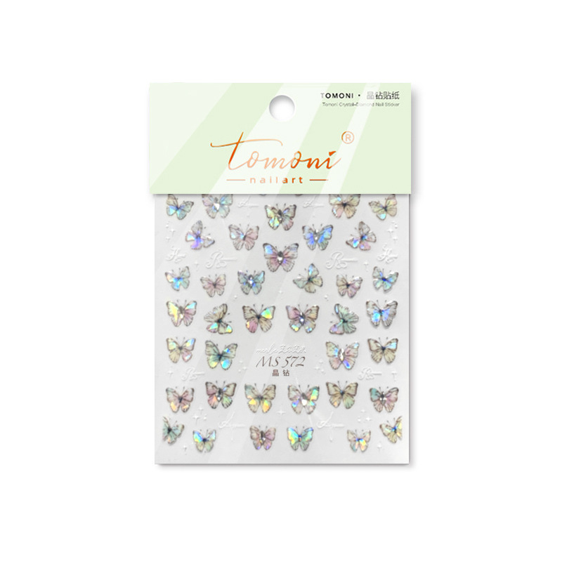 Tomoni 크리스탈 다이아몬드 스티커 손실 협력 일본 복고풍 네일 스티커 도매 네일 나비 스티커 MS571