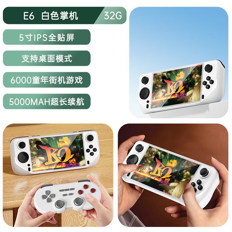 E6 휴대용 게임기 PSP 2인용 배틀 아케이드 5inch 완전 호환 게임기 안드로이드 시스템 N64 휴대용