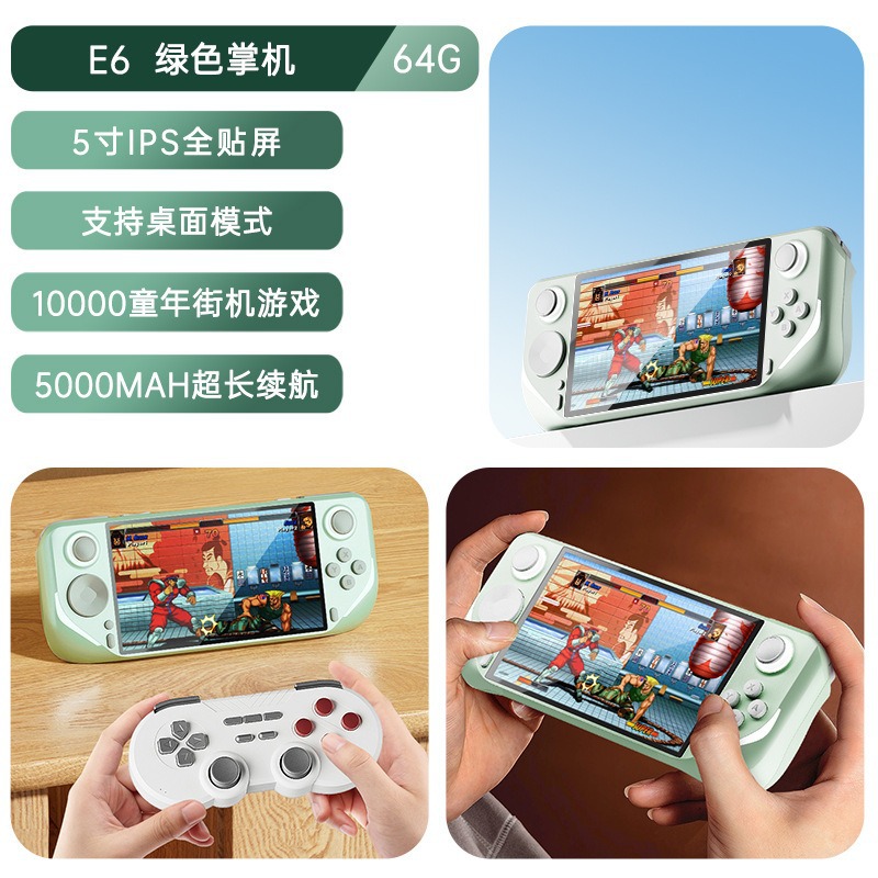 E6 휴대용 게임기 PSP 2인용 배틀 아케이드 5inch 완전 호환 게임기 안드로이드 시스템 N64 휴대용스토어 가기