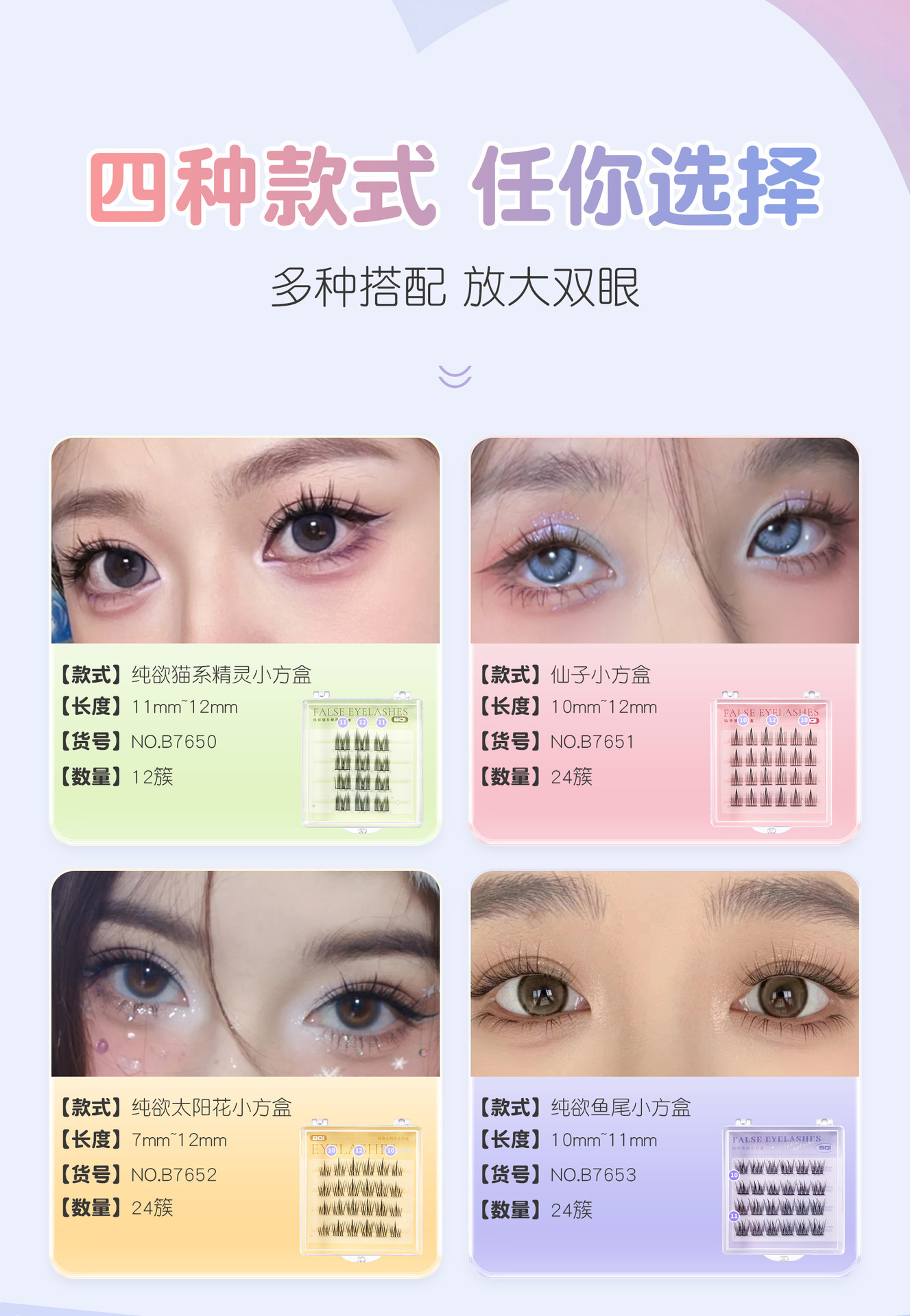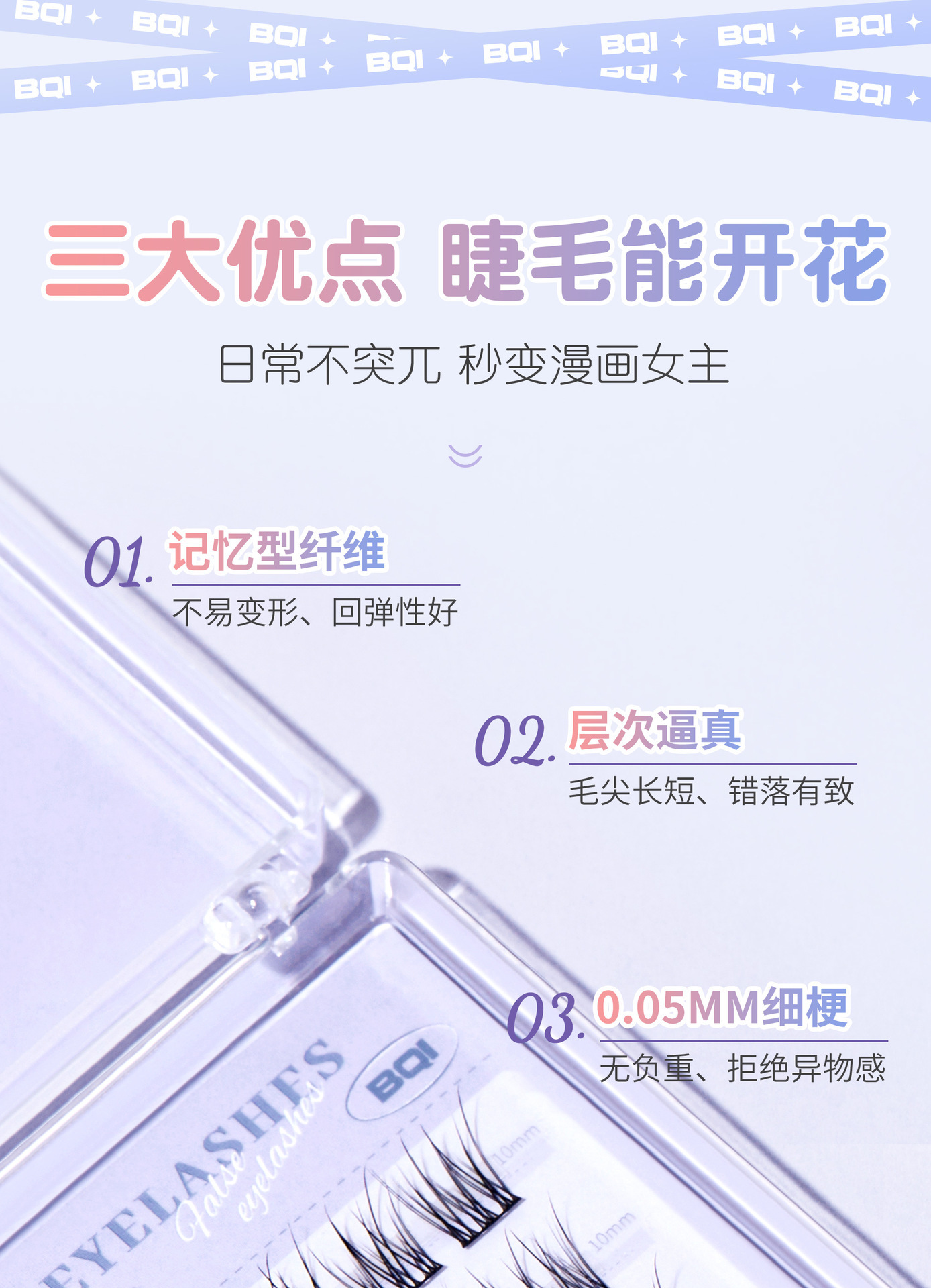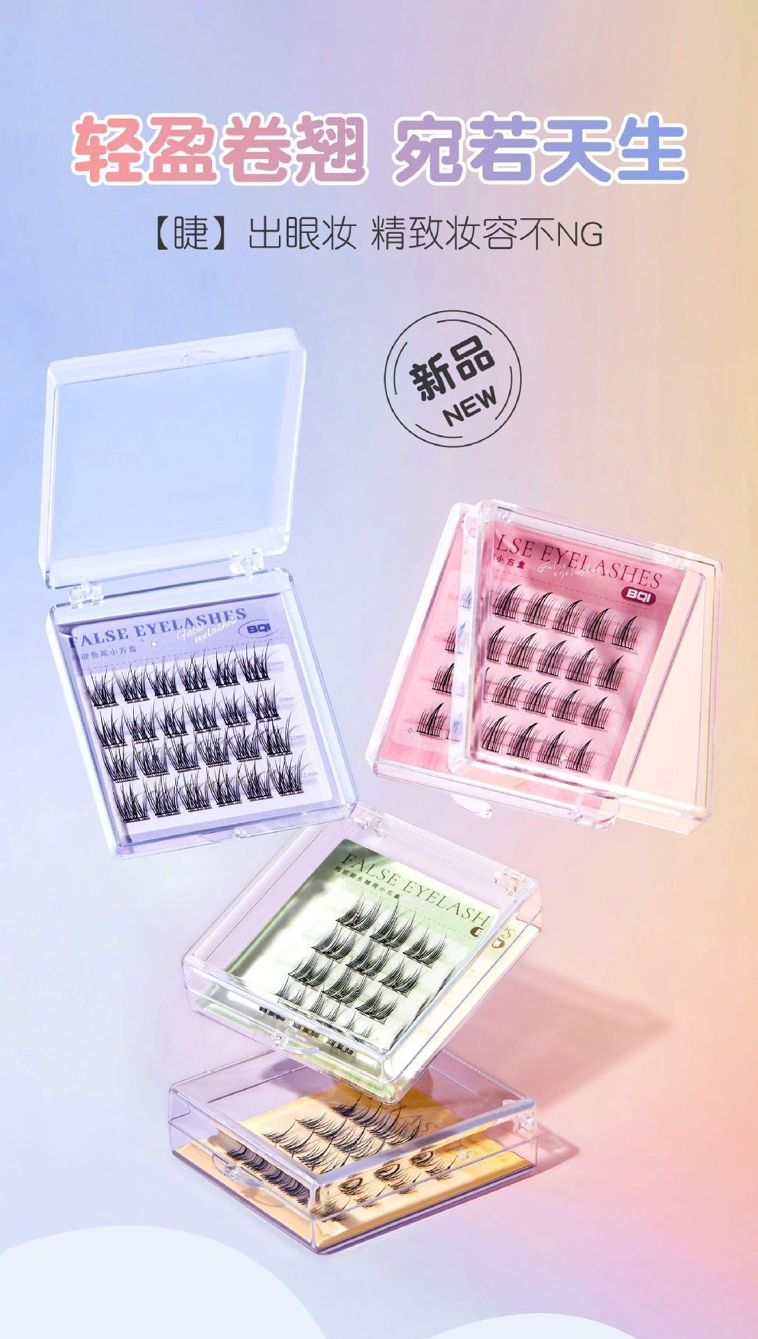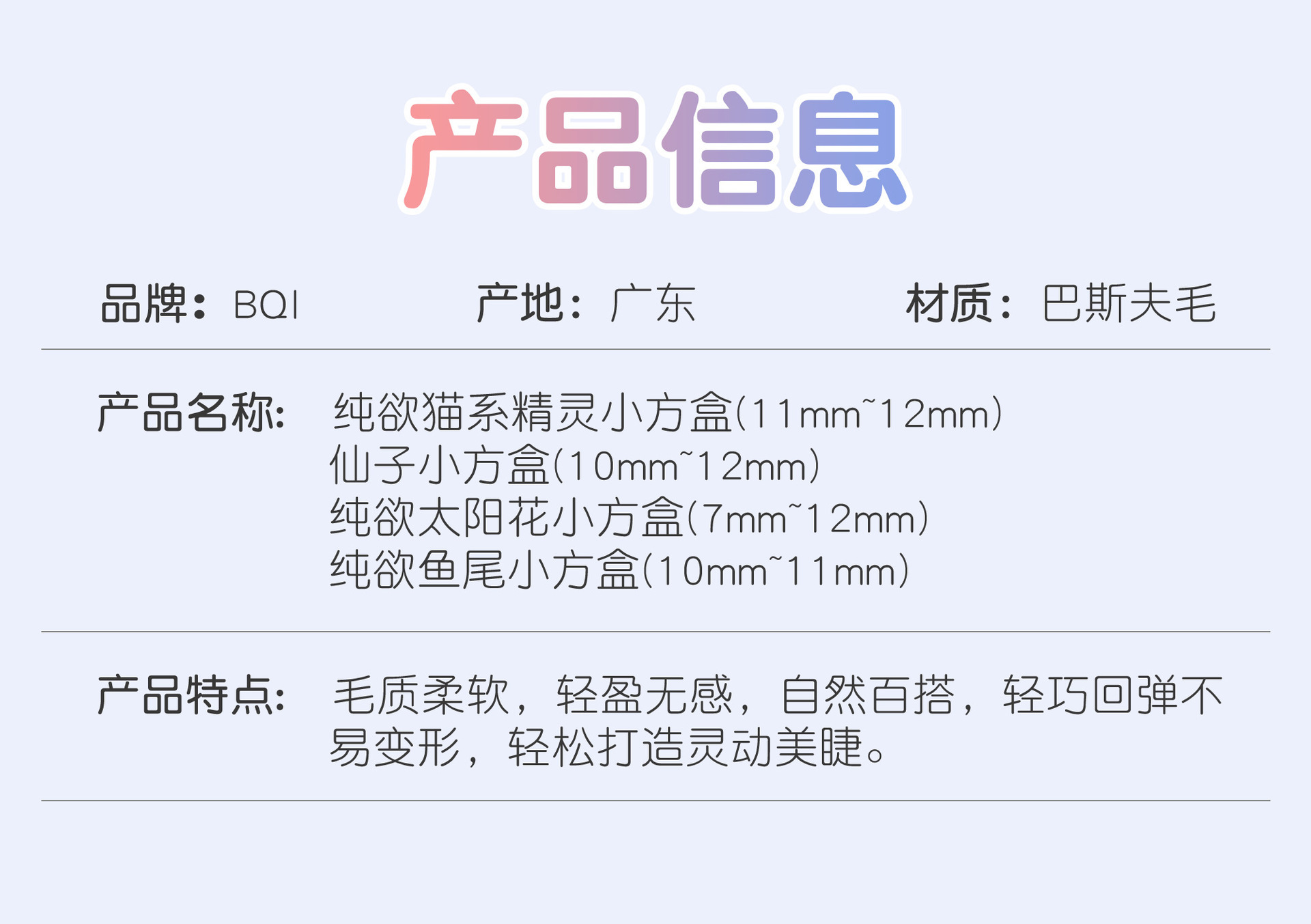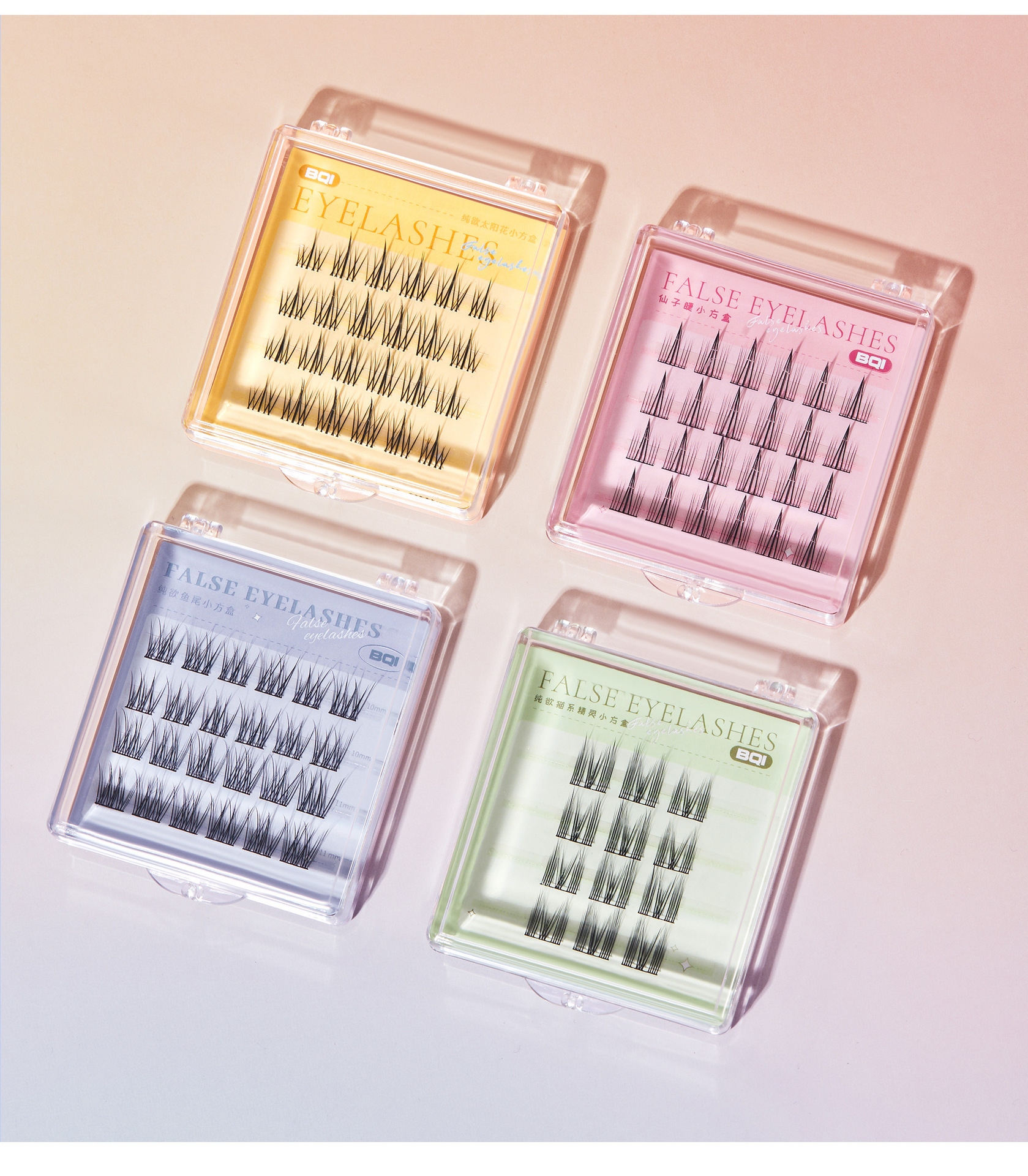 BQI 작은 사각형 상자 시리즈 자연 작은 단일 클러스터 세그먼트 속눈썹 여행 작은 사각형 상자 가짜 속눈썹 도매스토어 가기