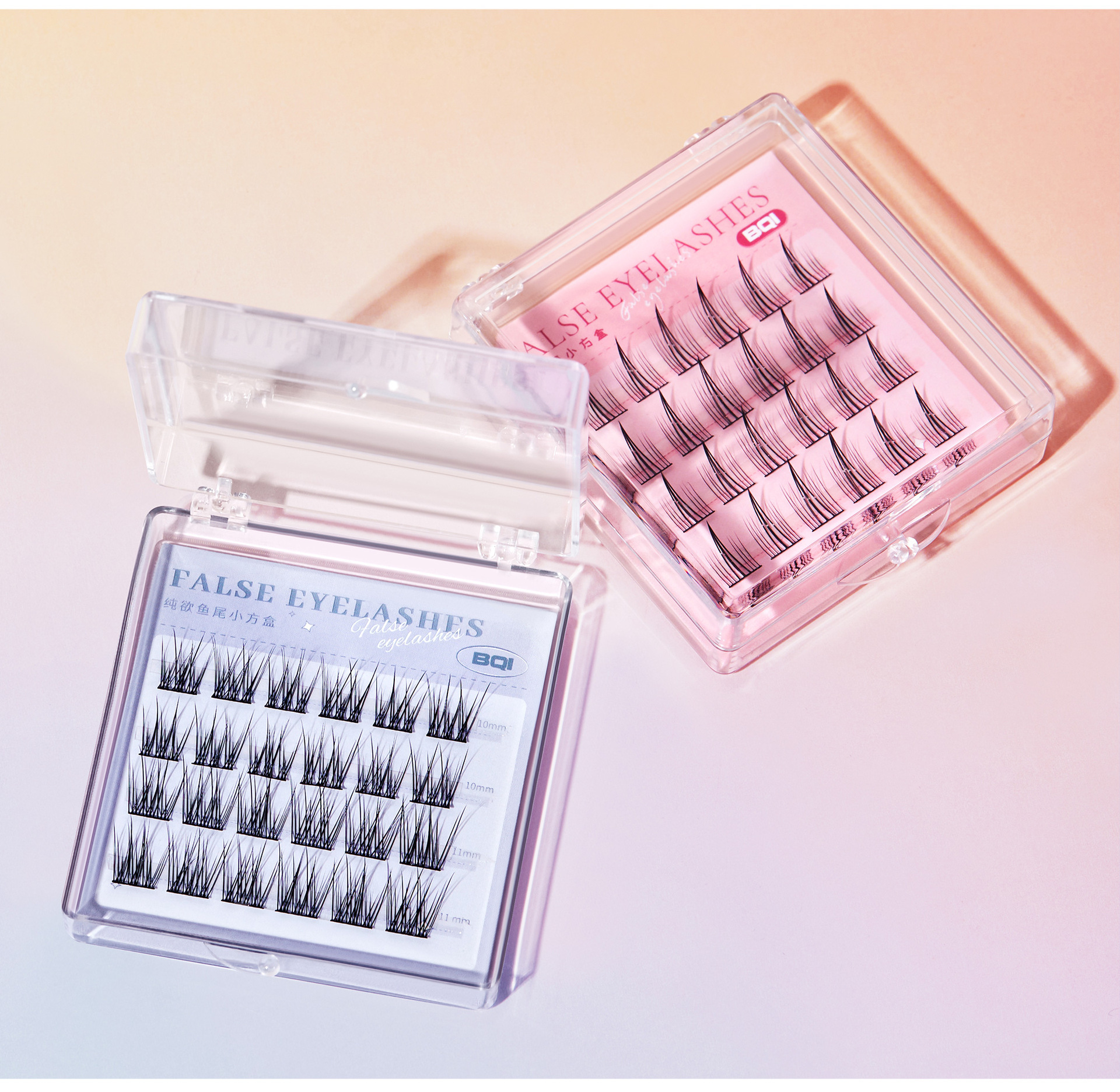 BQI 작은 사각형 상자 시리즈 자연 작은 단일 클러스터 세그먼트 속눈썹 여행 작은 사각형 상자 가짜 속눈썹 도매