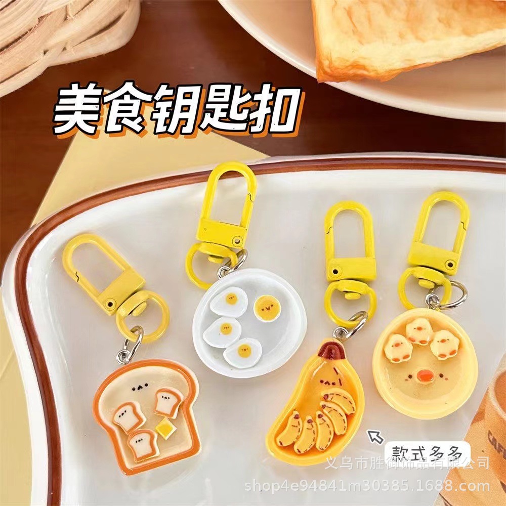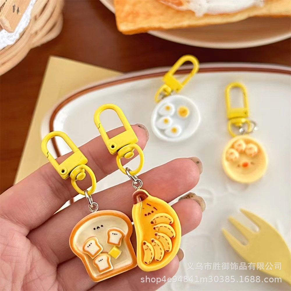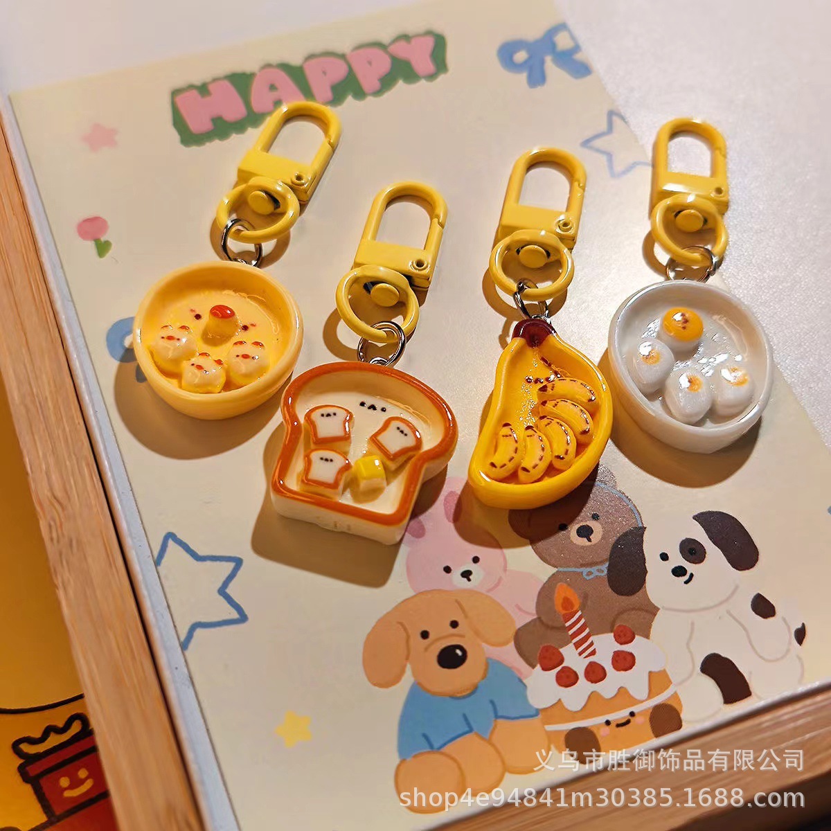 귀여운 아침 식사 접시 펜던트 도매 재미있는 시뮬레이션 음식과 플레이 키 체인 소녀 심장 배낭 액세서리 커플 여자 친구스토어 가기