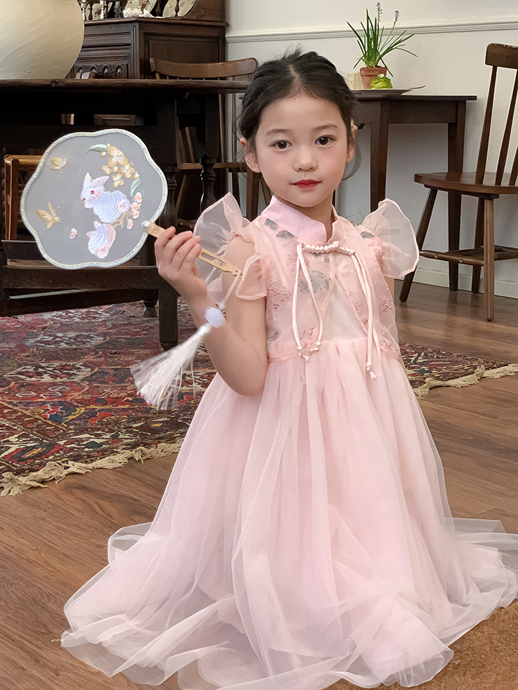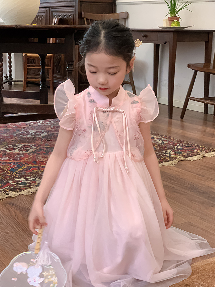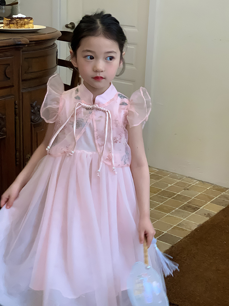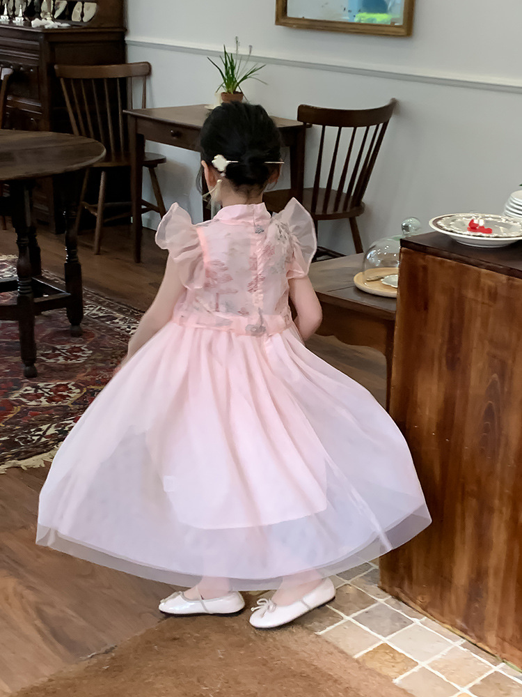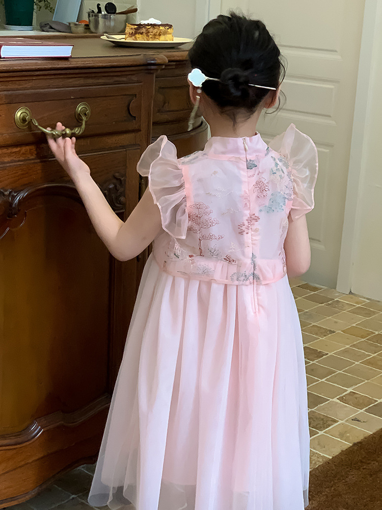 꽃과 여자를 찾고 청삼 칼라 원피스 2024 새로운 스타일 서양식 중국 스타일 거즈 스커트 달콤한 어린이 공주 스커트