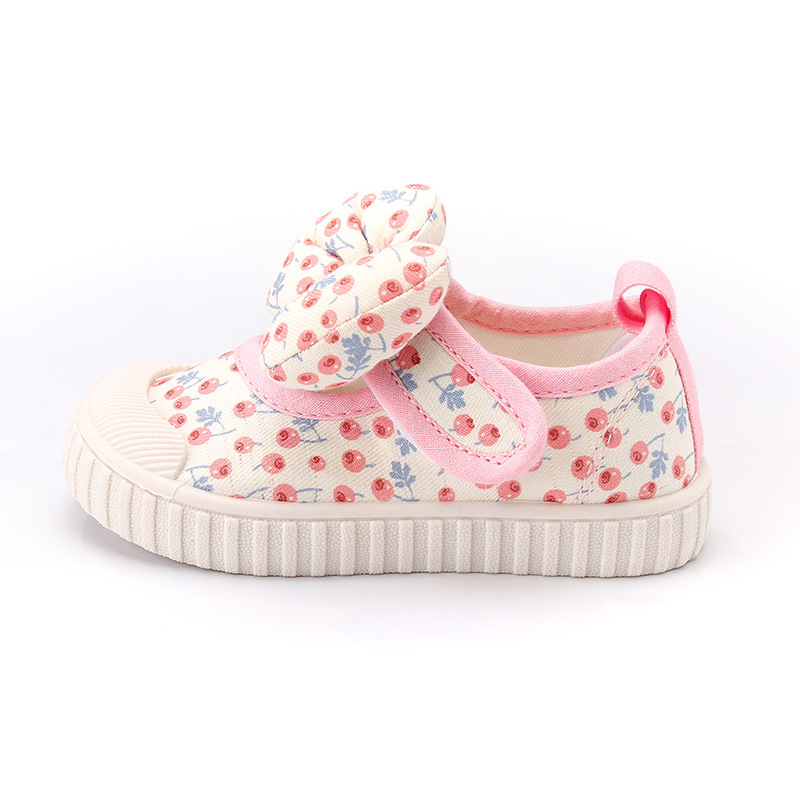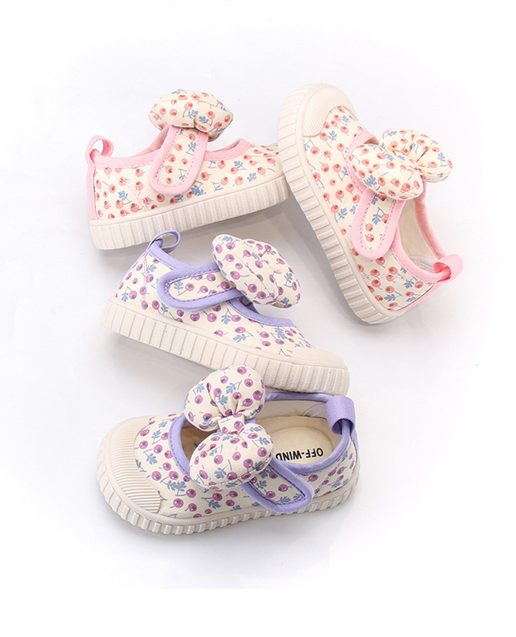 소녀 나비 매듭 캔버스 신발 미끄럼 방지 부드러운 바닥 2024 봄 새로운 통기성 캐주얼 신발 모두 일치하는 중간 및 작은 어린이 패션스토어 가기