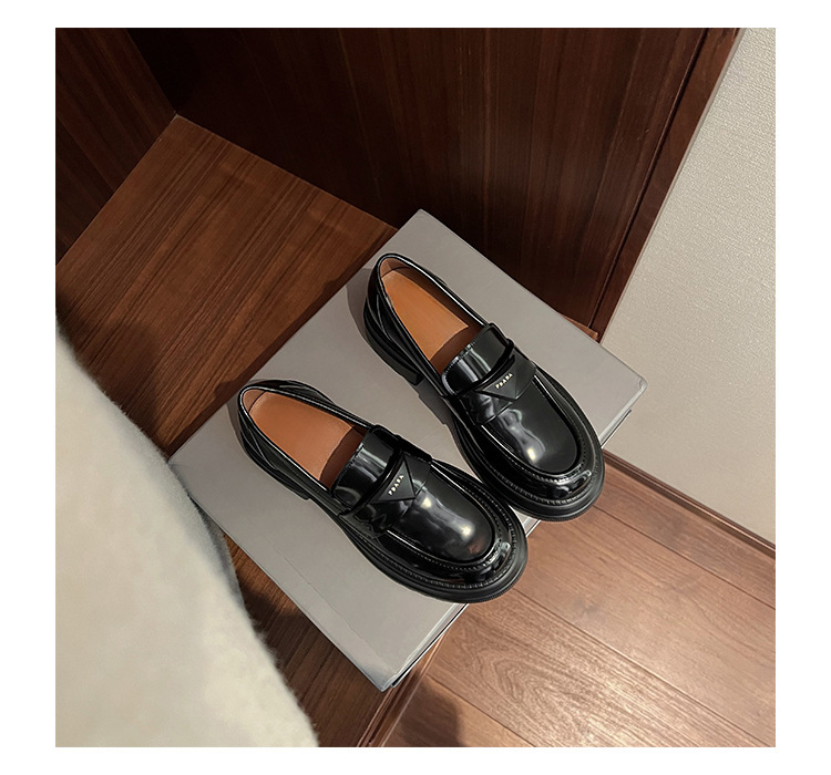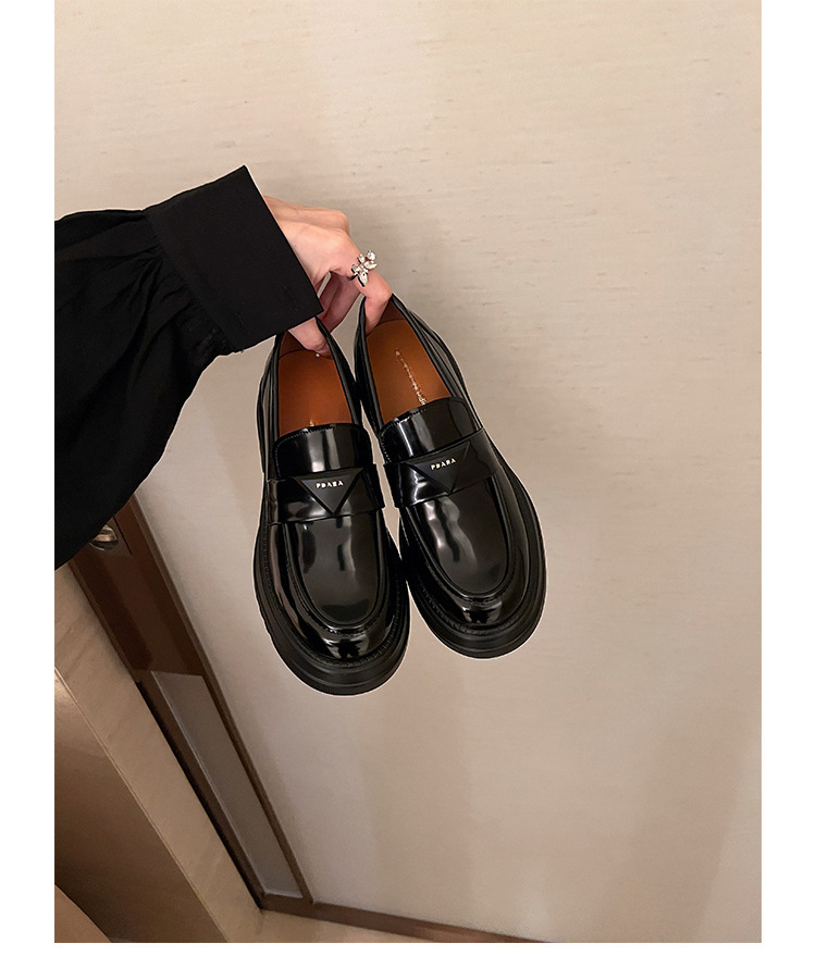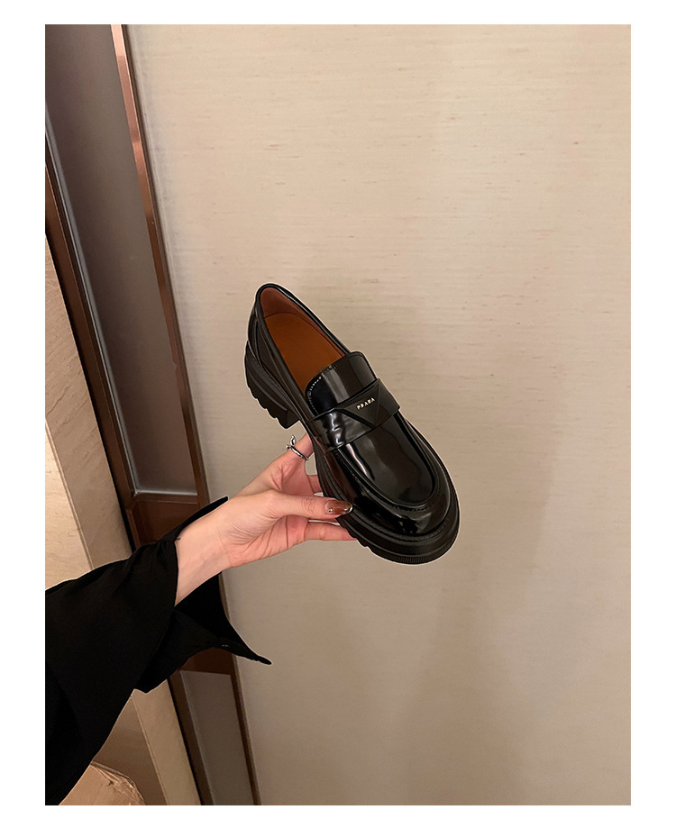 가죽 삼촌의 두꺼운 밑창 로퍼 내부 및 외부 여성 가죽 봄 새로운 영국 스타일의 작은 가죽 신발 신발 게으른 조수