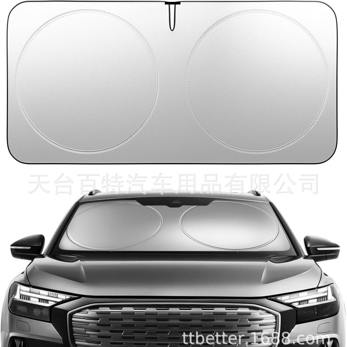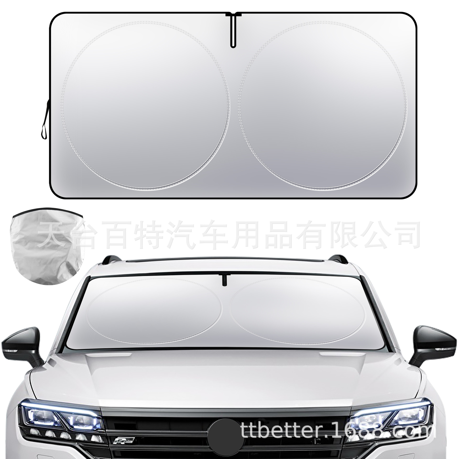 本产品使用高密度全新钛银反光涂层材料和高弹性记忆钢丝,用于汽车前挡风玻璃遮阳,0透光,有效阻挡99%的紫外线等有害光线,降低热量传导,带开口嵌合魔术贴设计,不遮挡行车记录仪,有效降低车内温度,保护汽车内饰,延缓老化,收纳方便,一秒折叠,随时置于车门两侧。适用于大多数的五座轿车,货车,大卡车,或者MVP等,支持各种尺寸,材料,可按照客户要求做,欢迎询价!