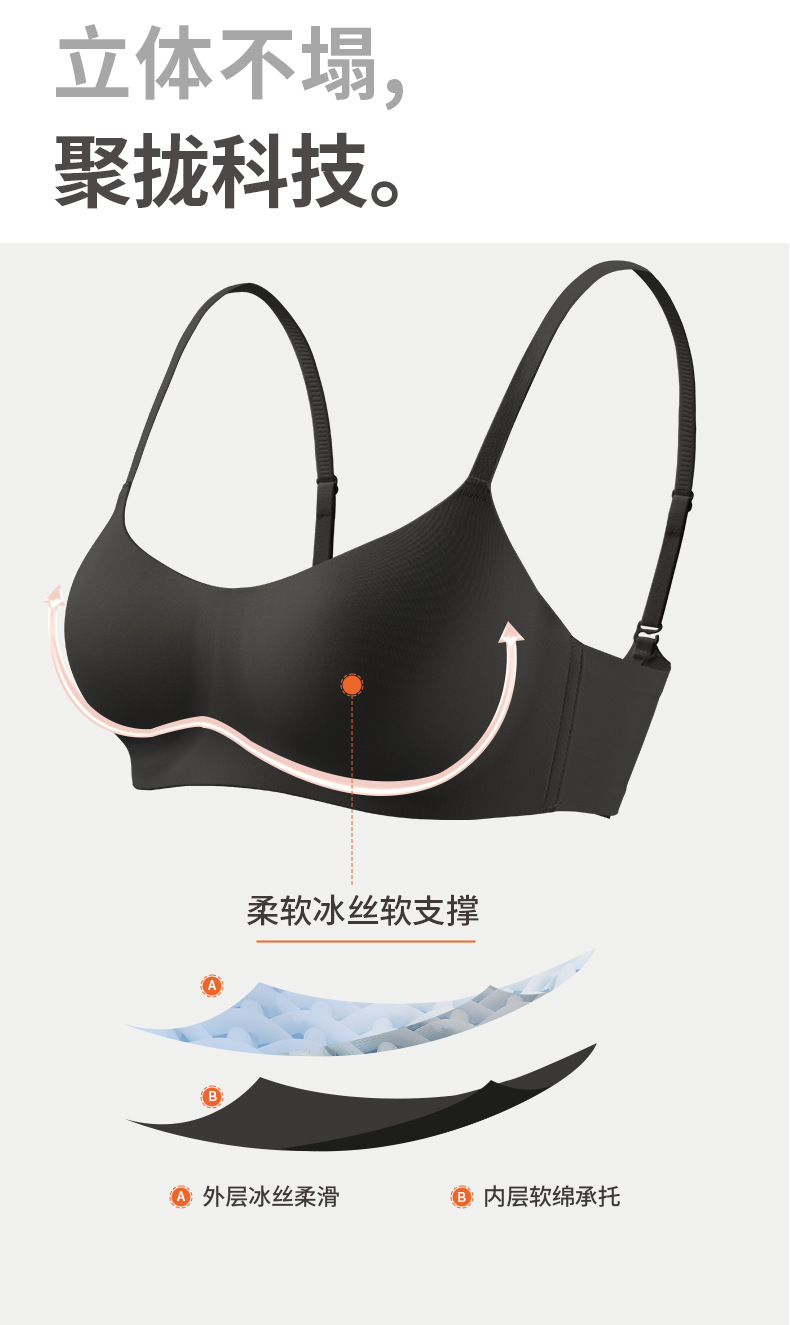 오렌지 내부 나무 속옷 여성 오렌지 센스 컵 경량 통기성 원활한 원피스 조절 어깨 끈 보이지 않는 푸시 업 브라 여성스토어 가기