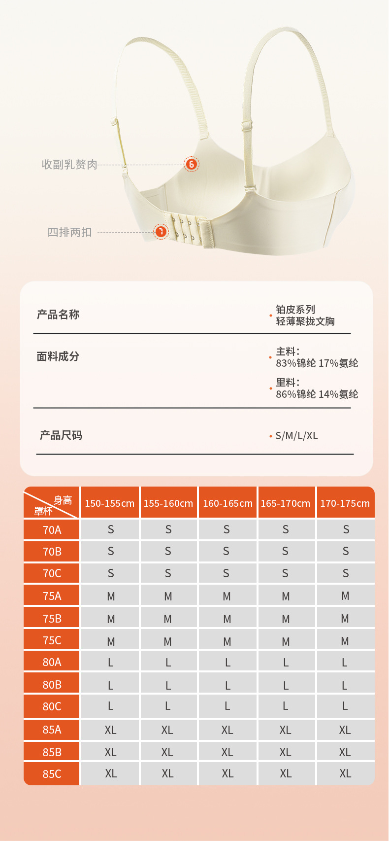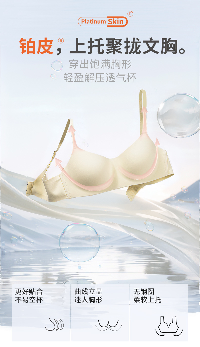 오렌지 내부 나무 속옷 여성 오렌지 센스 컵 경량 통기성 원활한 원피스 조절 어깨 끈 보이지 않는 푸시 업 브라 여성