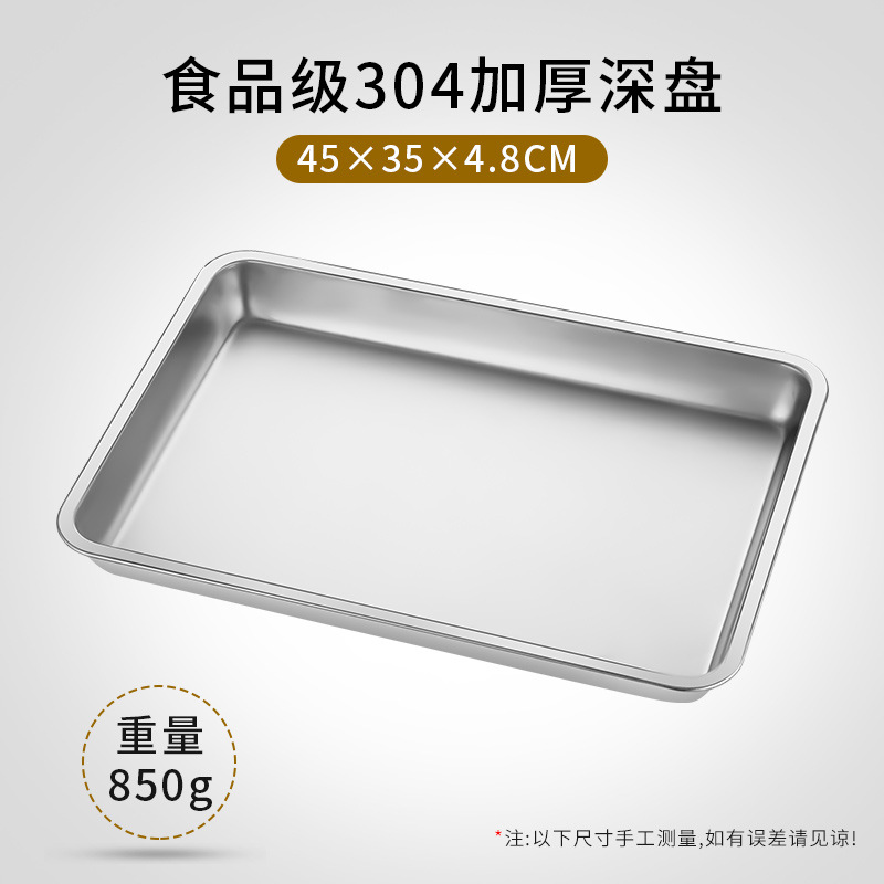 두꺼운 304 식품 등급 스테인레스 스틸 직사각형 트레이 가정용 넉넉한 접시 상업 구운 생선 철판 찐 쌀 접시스토어 가기