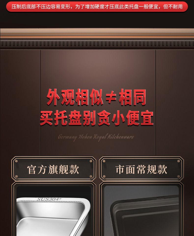 • 두꺼운 304 식품 학년 건강 소재 50*35cm 얕은 판 2.5cm