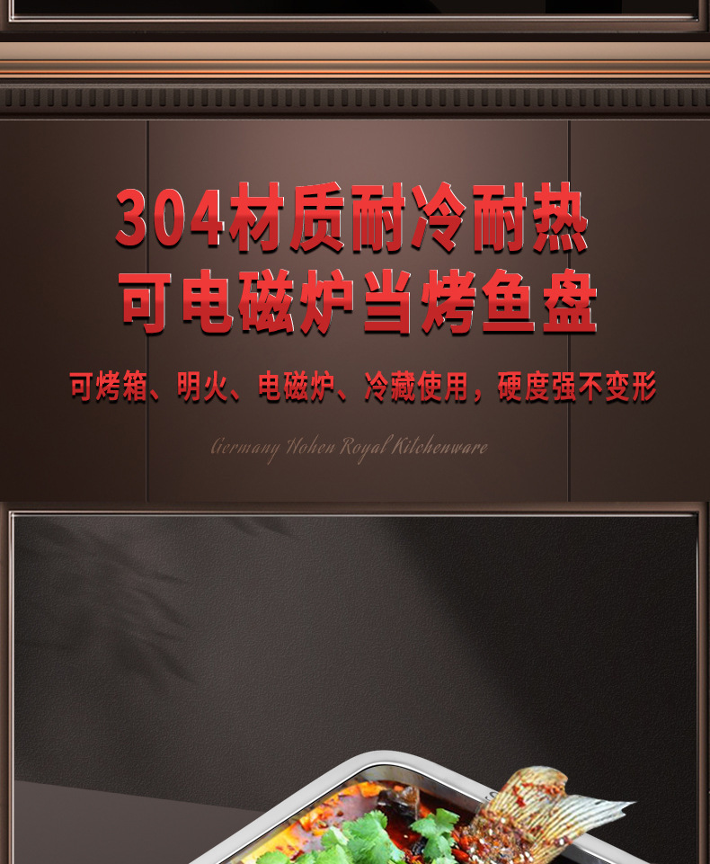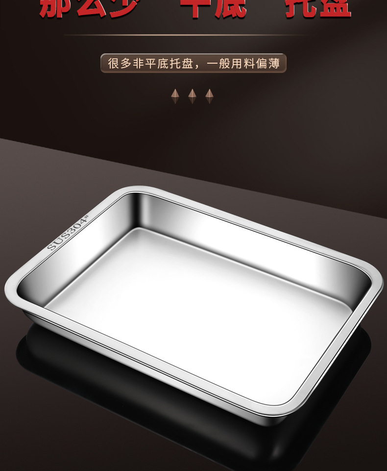두꺼운 304 식품 등급 스테인레스 스틸 직사각형 트레이 가정용 넉넉한 접시 상업 구운 생선 철판 찐 쌀 접시