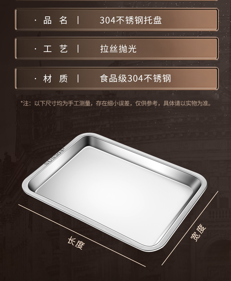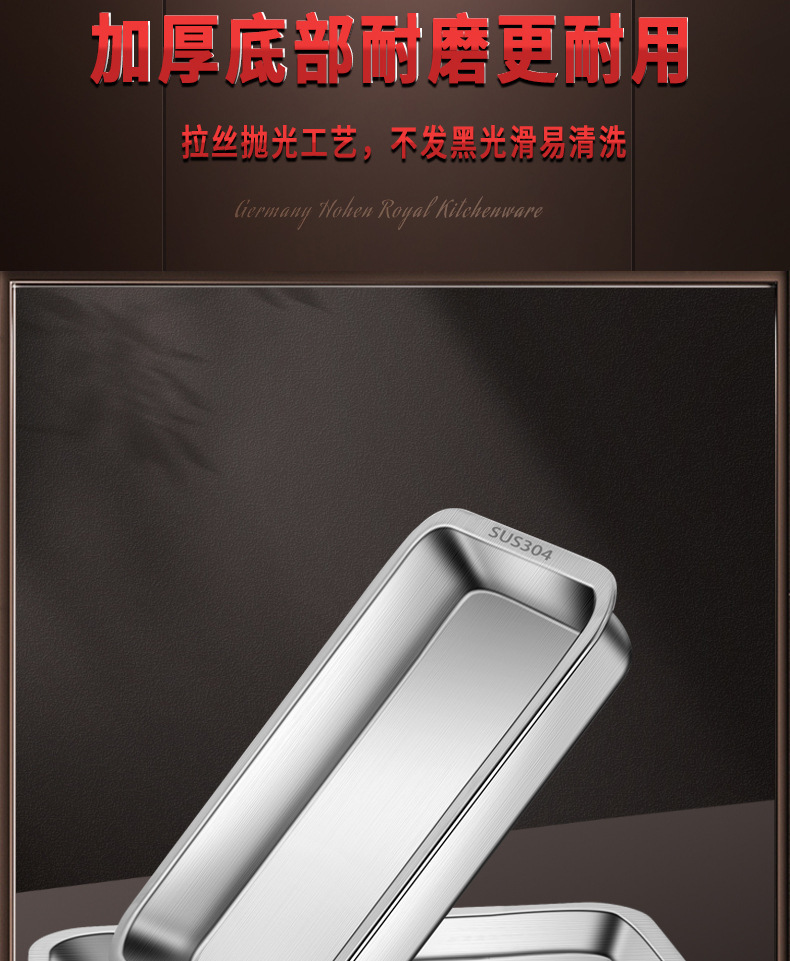 • 두꺼운 304 식품 학년 건강 소재 27*20cm 얕은 판 2.5cm