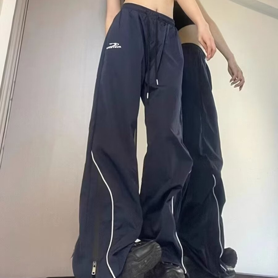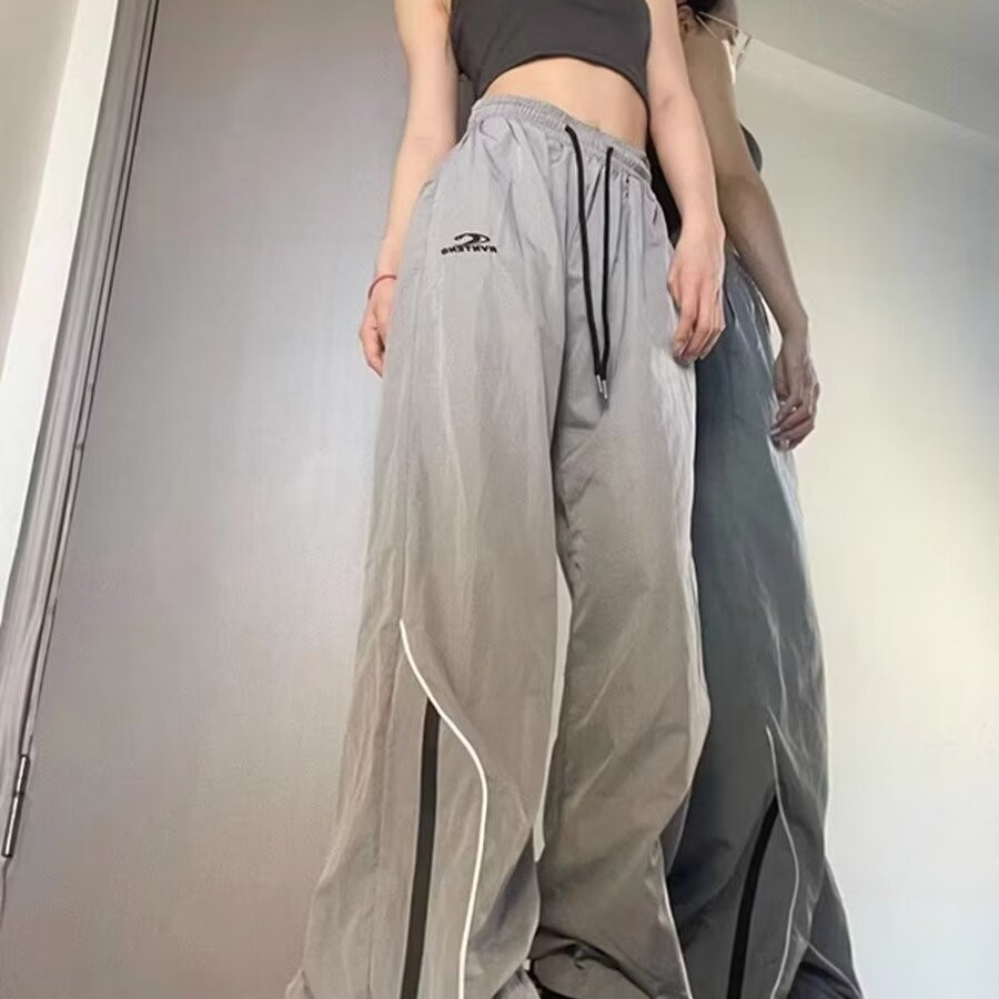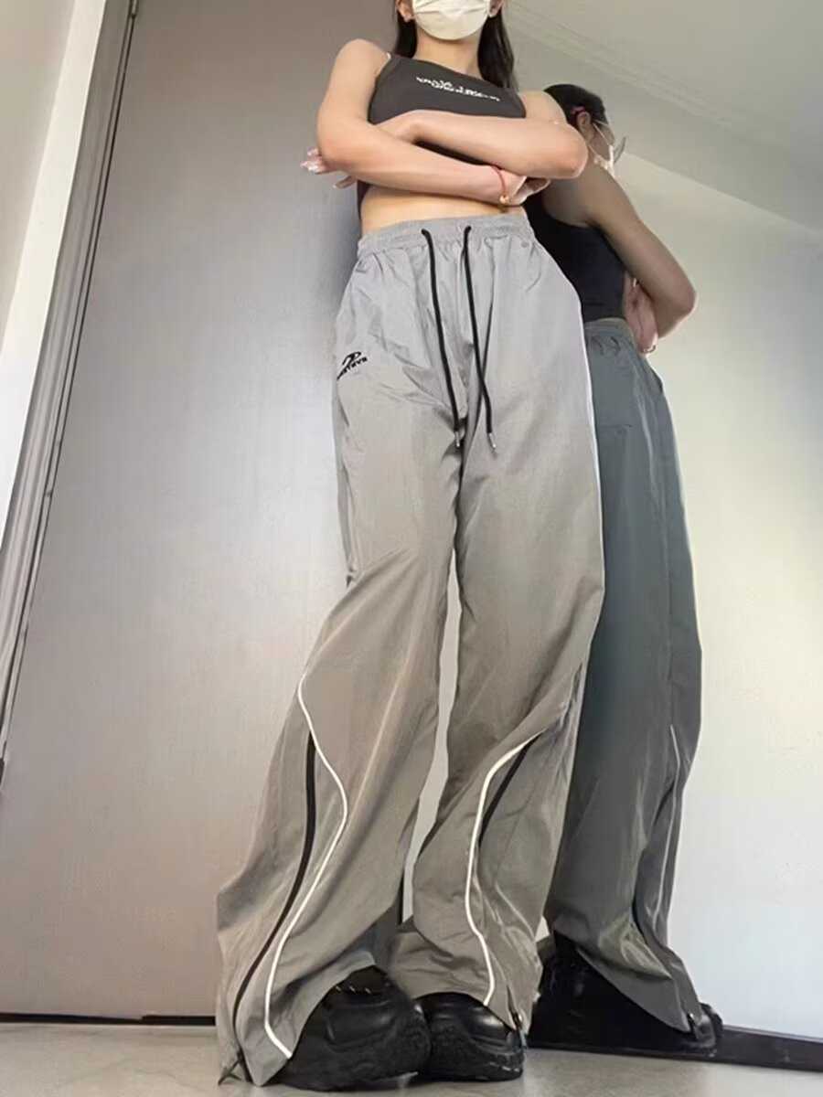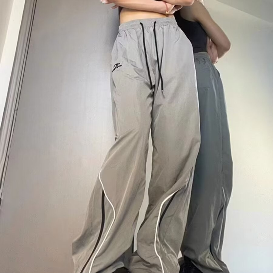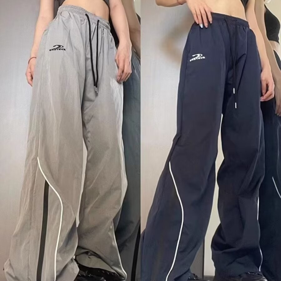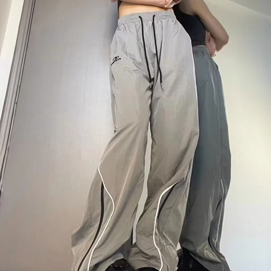 미국 스타일의 빠른 건조 충전 기능성 스포츠 바지 여성 야외 복고풍 캐주얼 스트레이트 바지 여름 얇은 여성 바지