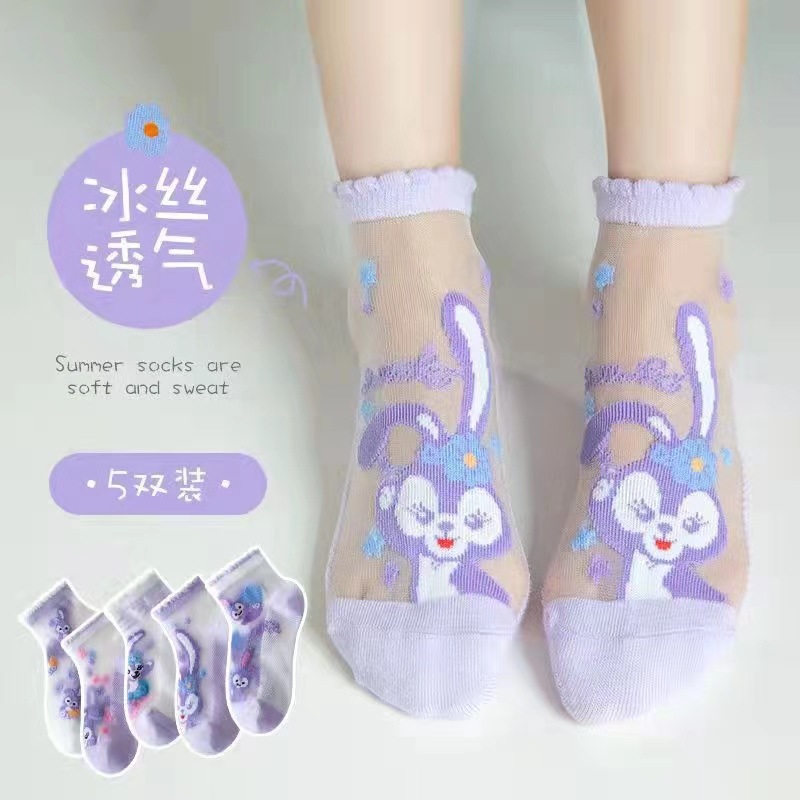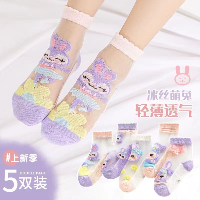 여름 얇은 어린이 양말 크리스탈 스타킹 통기성 아이스 실크 소녀 양말 kulomi 메쉬 양말 통기성 유리 스타킹