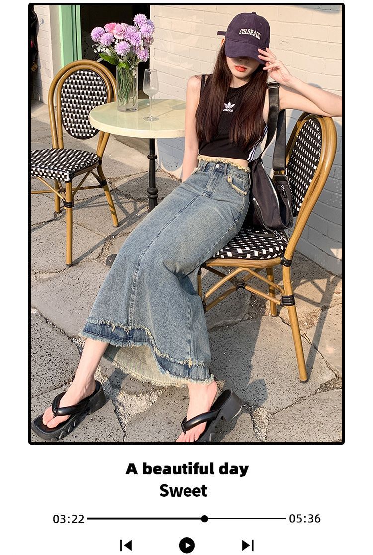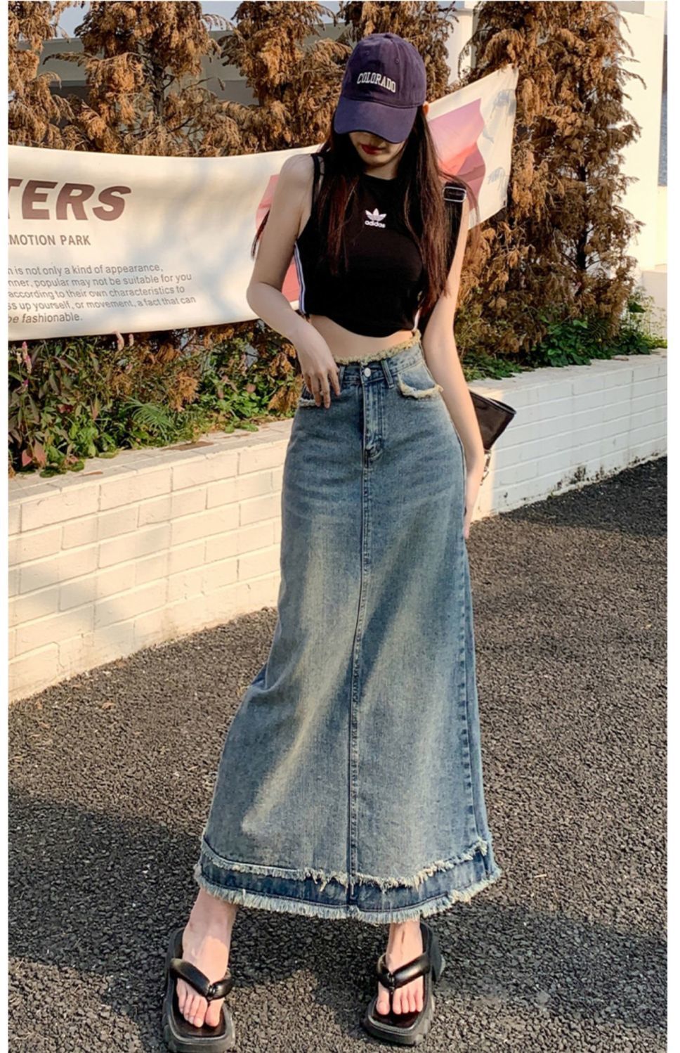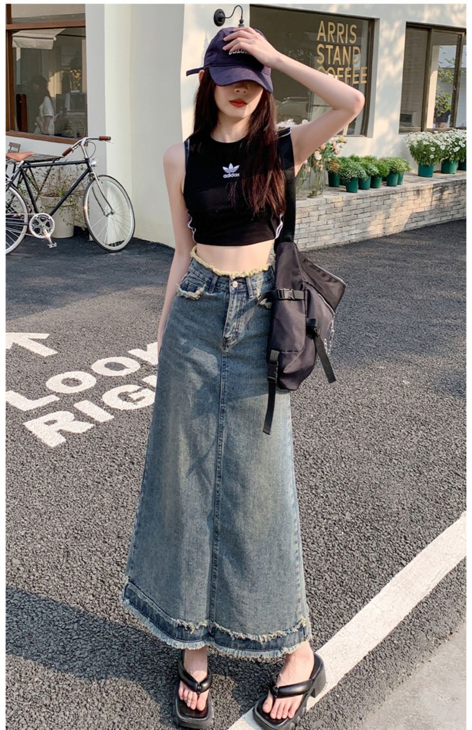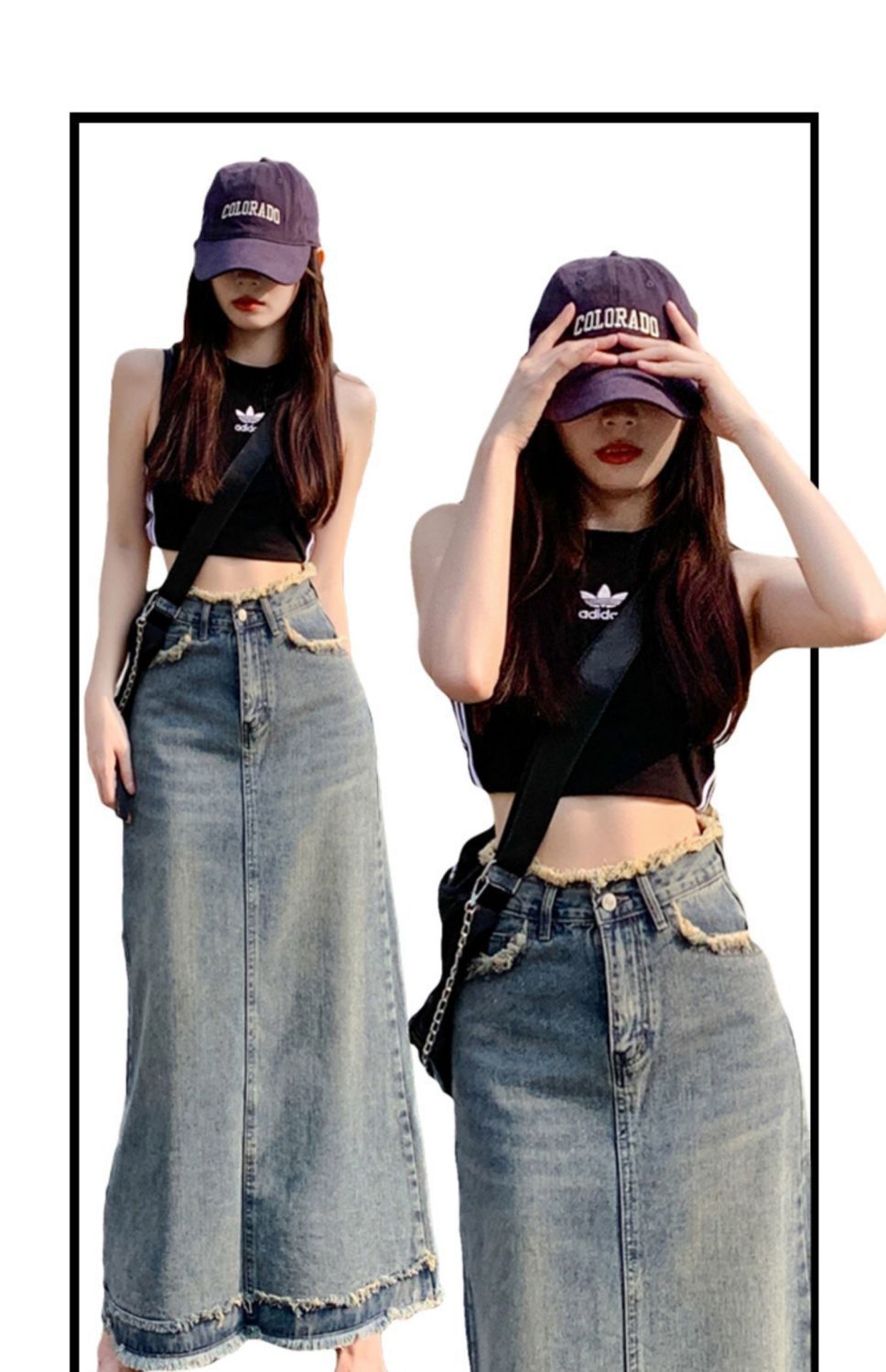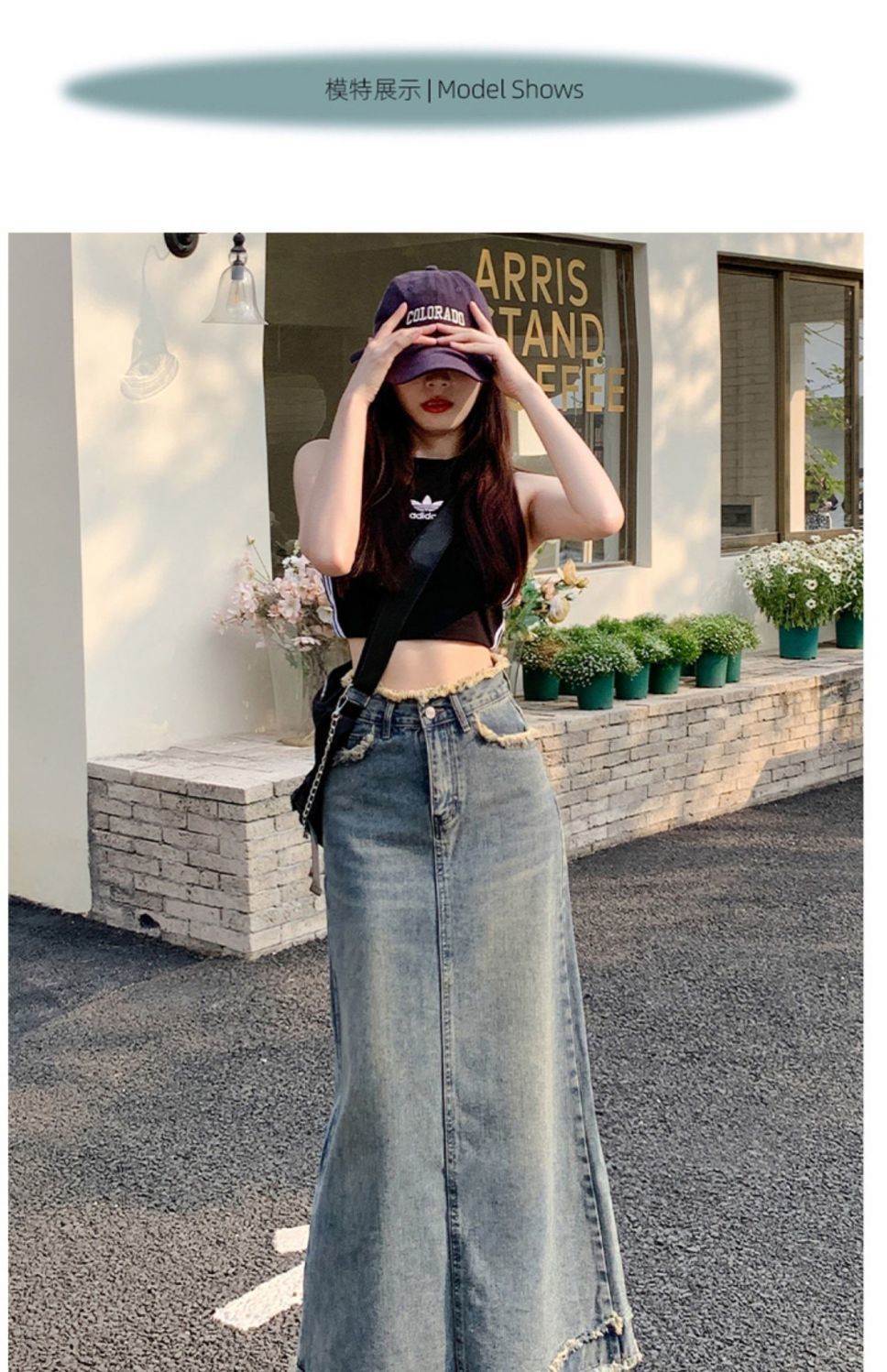 2024 봄 새로운 복고풍 하이 허리 디자인 닳은 데님 스커트 여성 튀김 거리 캐주얼 A-라인 원피스스토어 가기