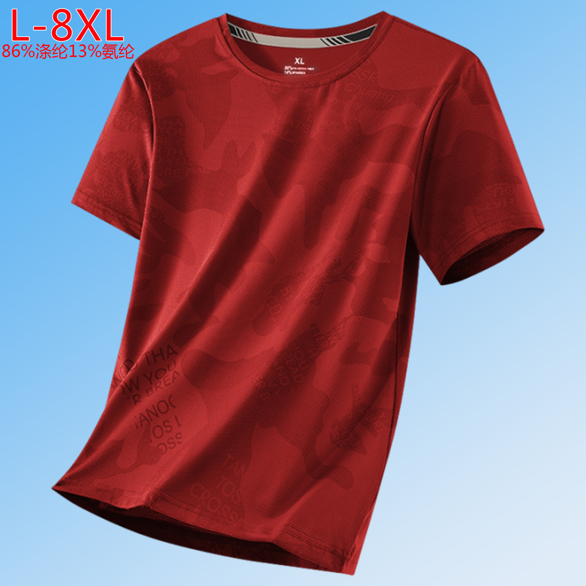 플러스 사이즈 반팔 티셔츠 남성용 여름 얇은 아이스 실크 메쉬 위장 빠른 건조 탑 옷 느슨한 스웨트 티셔츠스토어 가기