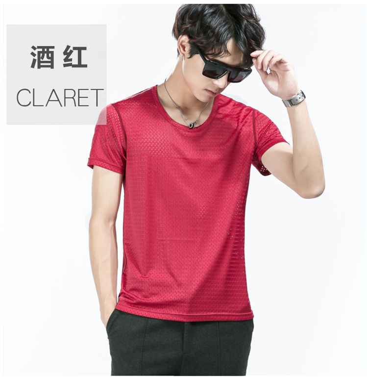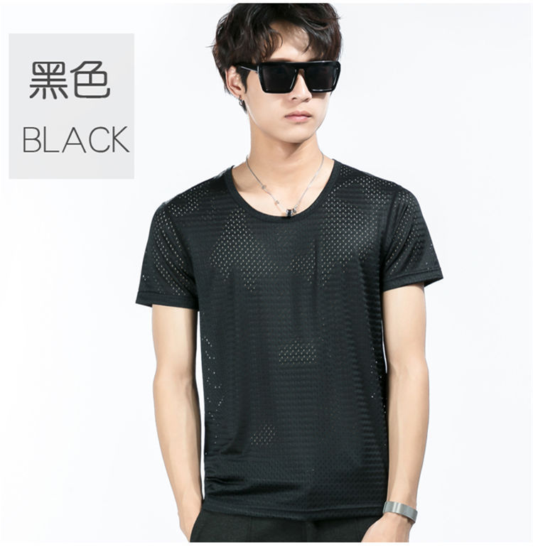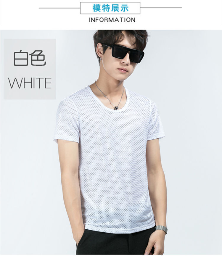 남성용 아이스 실크 메쉬 반팔 티셔츠 트렌디 한 속이 빈 여름 빠른 건조 반팔 티셔츠 느슨한 스포츠 바닥 셔츠