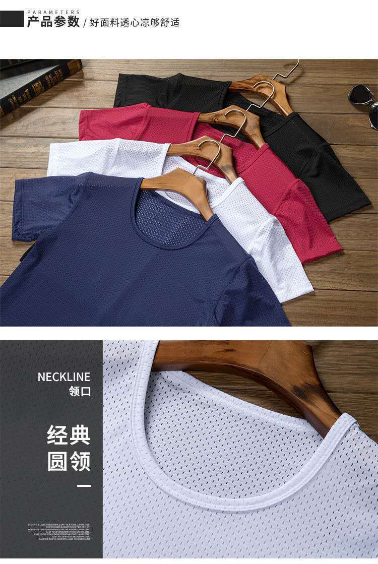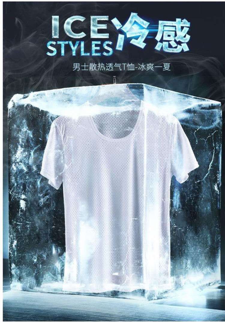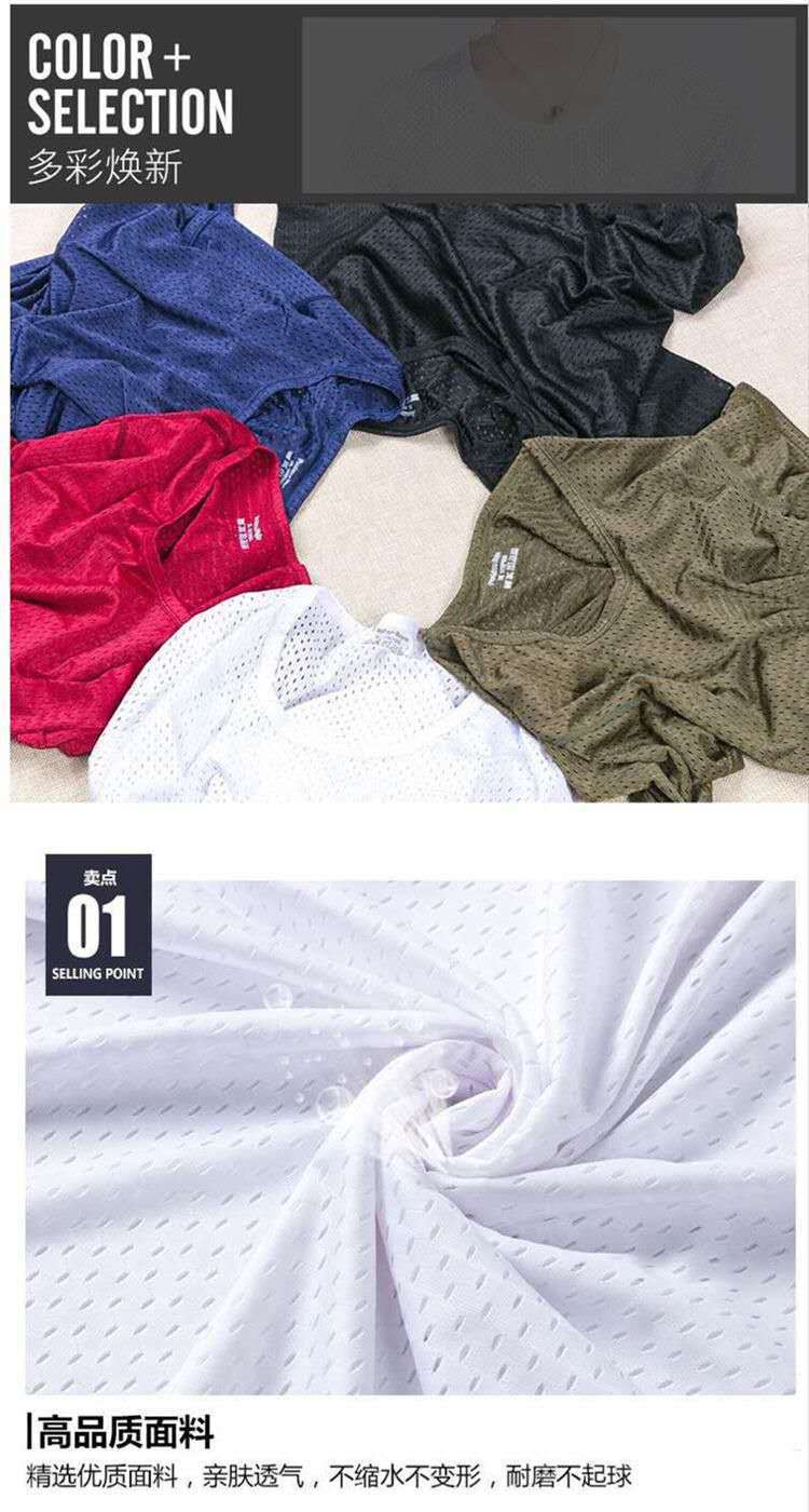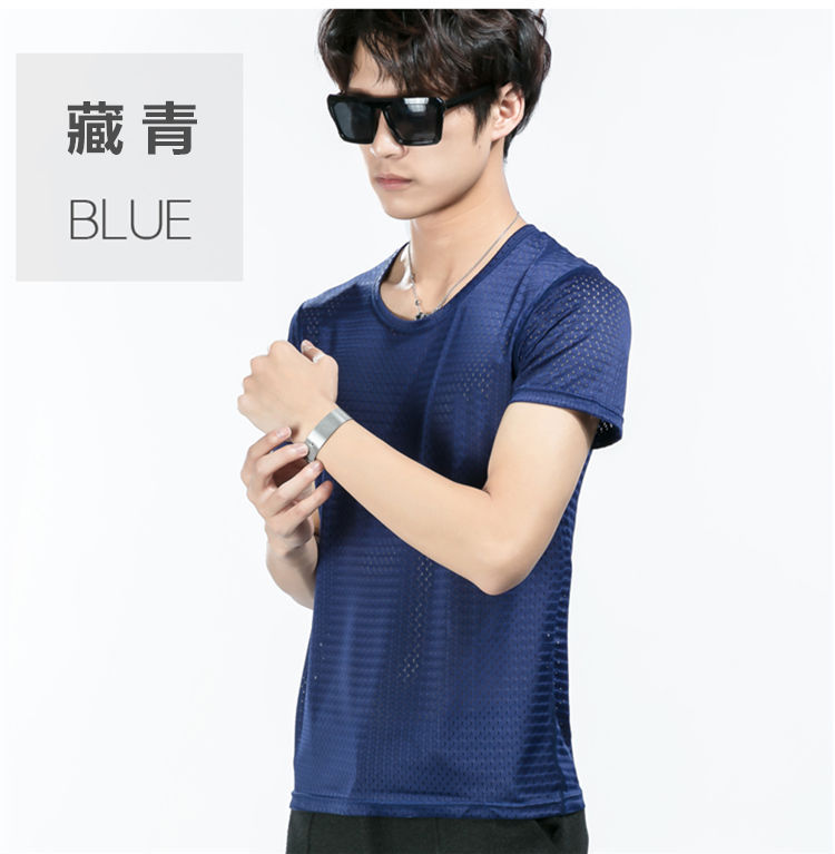 남성용 아이스 실크 메쉬 반팔 티셔츠 트렌디 한 속이 빈 여름 빠른 건조 반팔 티셔츠 느슨한 스포츠 바닥 셔츠스토어 가기