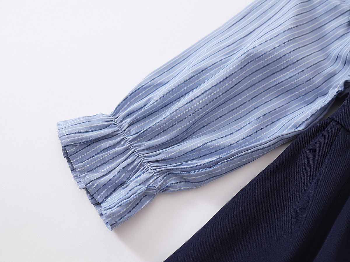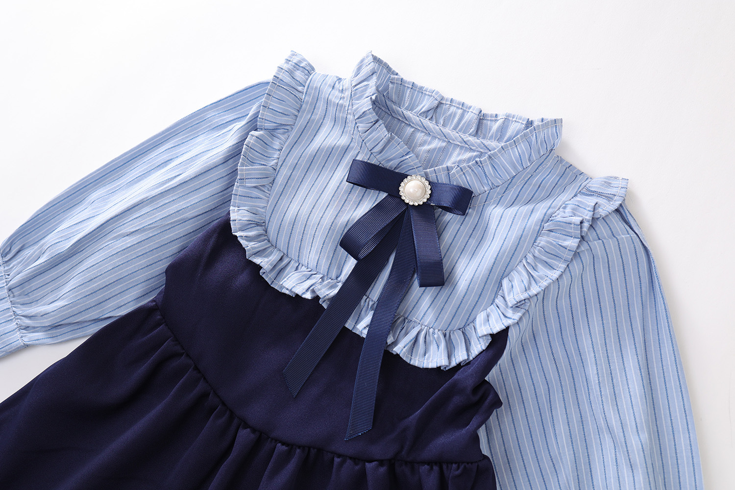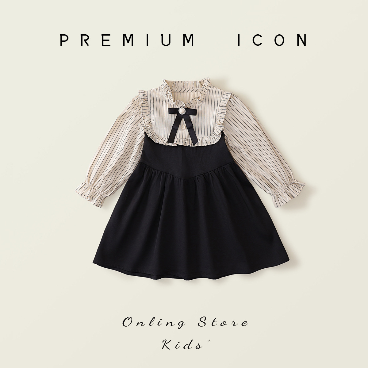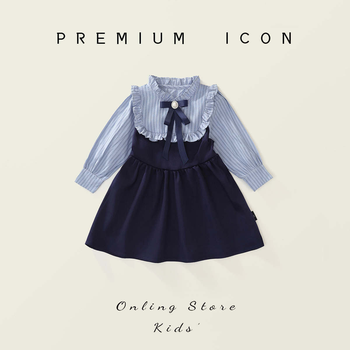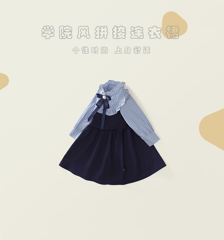 여자 대학 스타일 드레스 2025 가을 새로운 아기 소녀 가짜 투피스 한국어 버전 스트라이프 대비 색상 긴팔 드레스스토어 가기