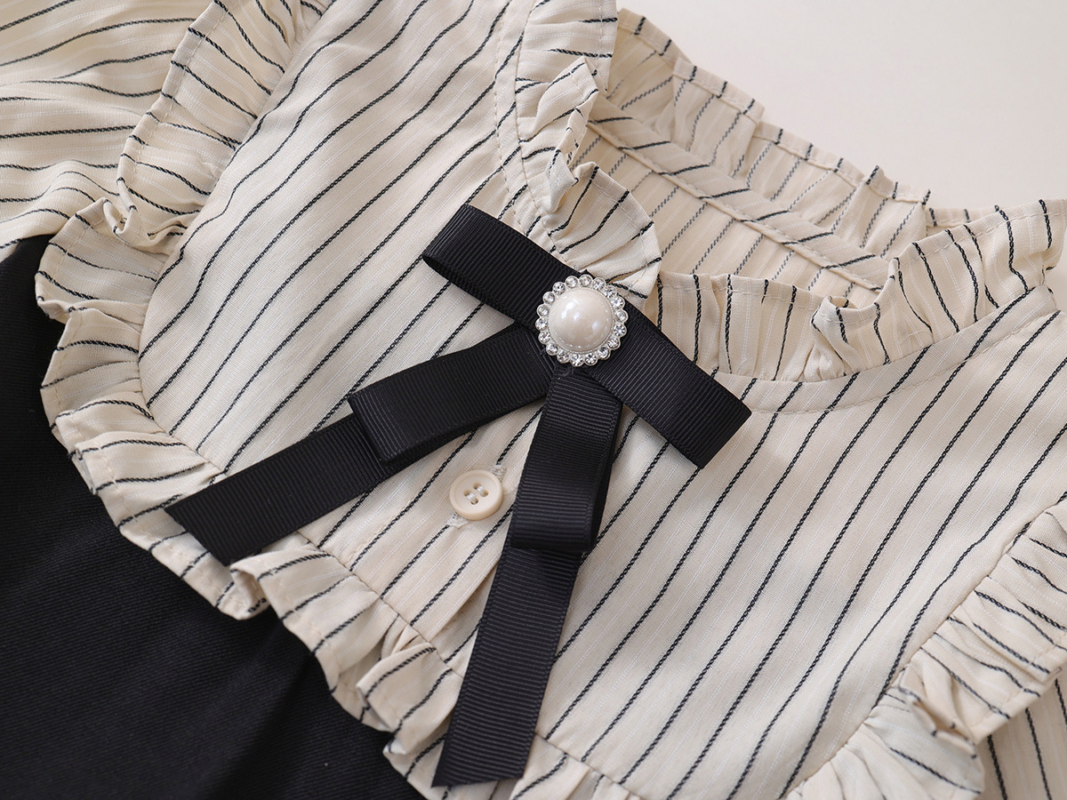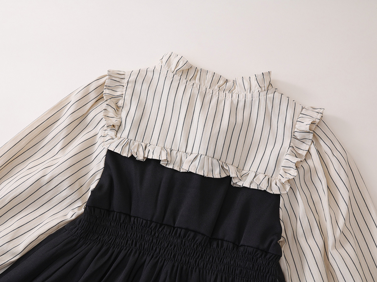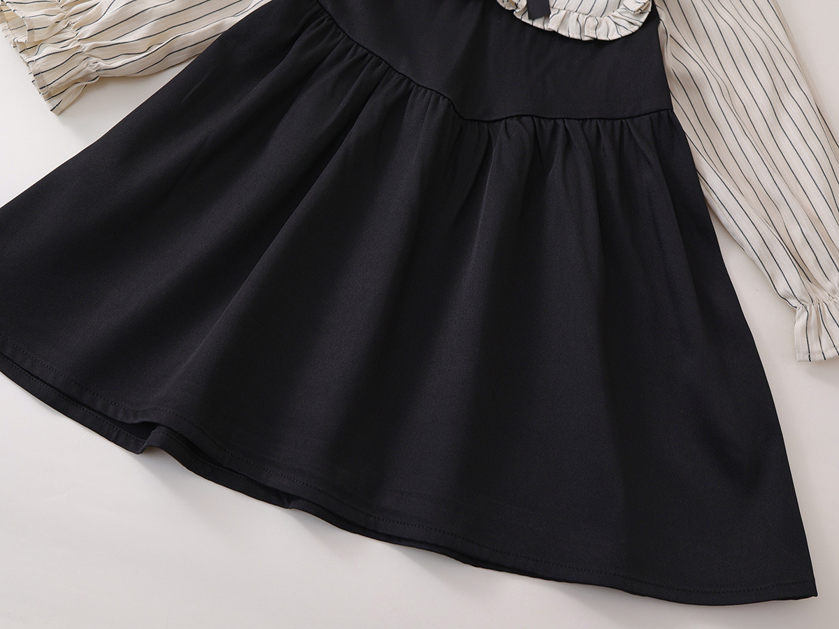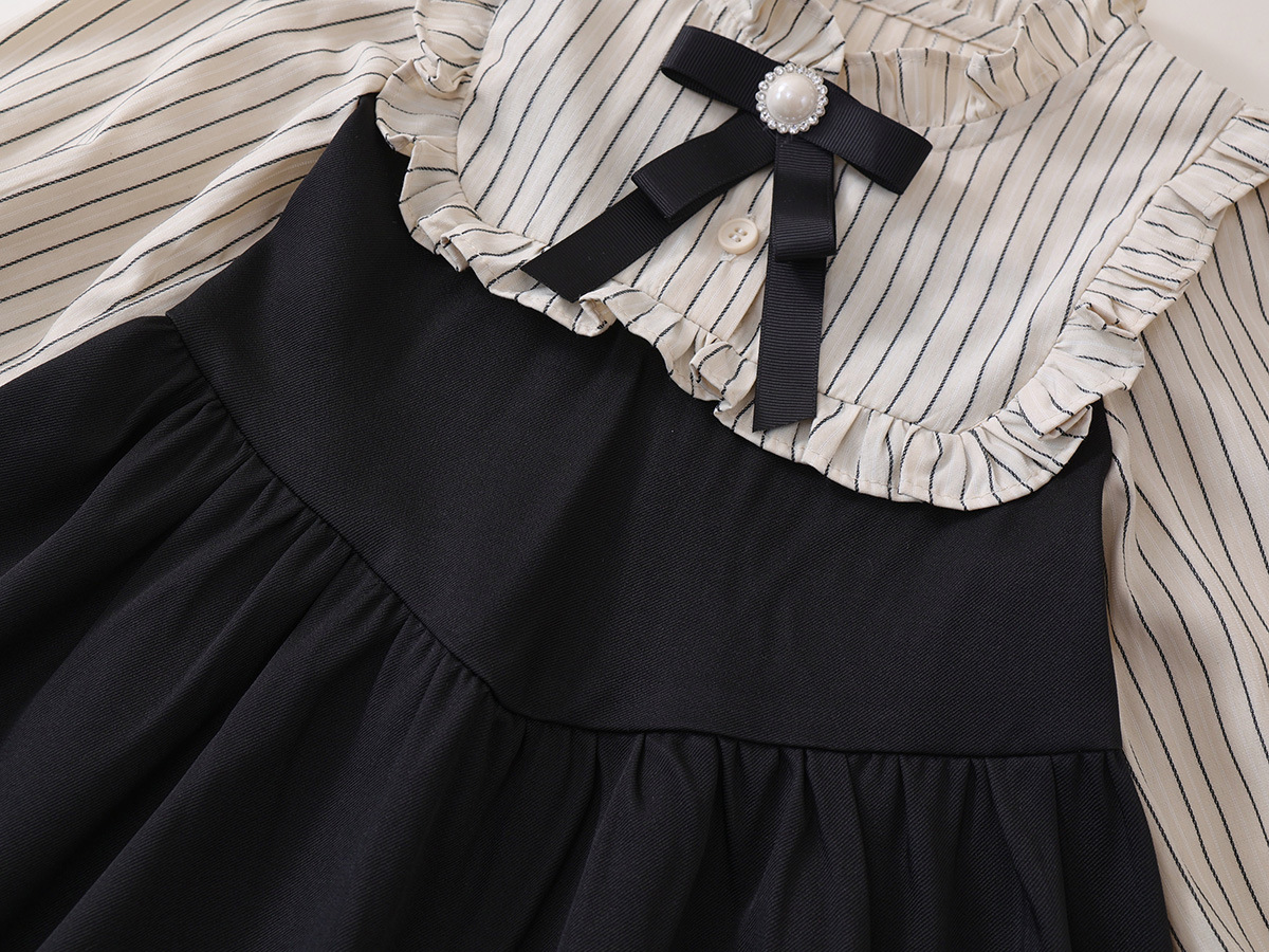 여자 대학 스타일 드레스 2025 가을 새로운 아기 소녀 가짜 투피스 한국어 버전 스트라이프 대비 색상 긴팔 드레스