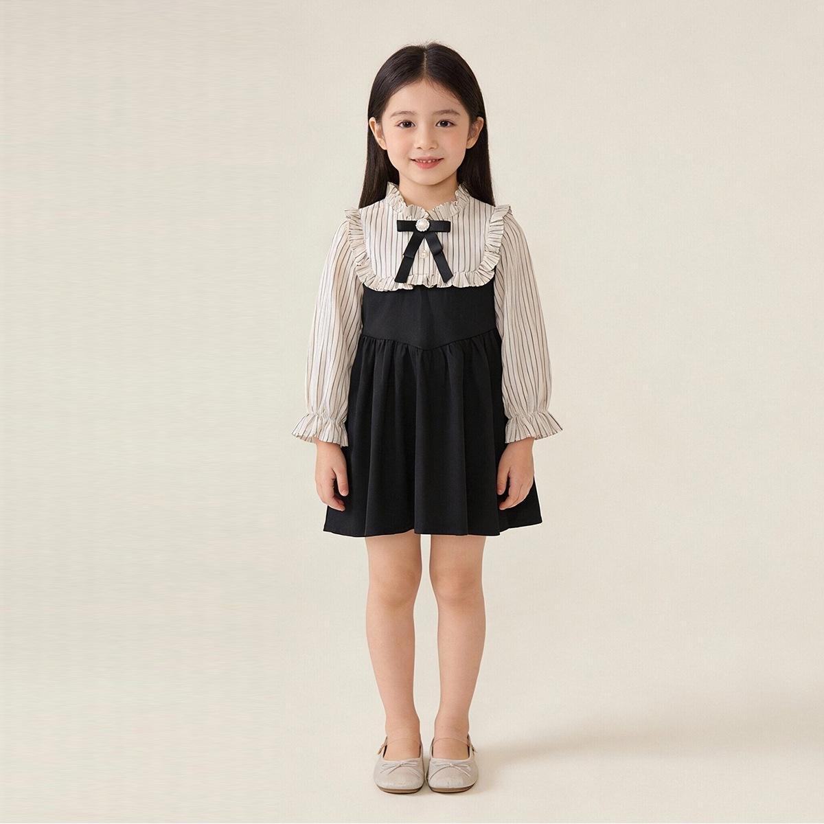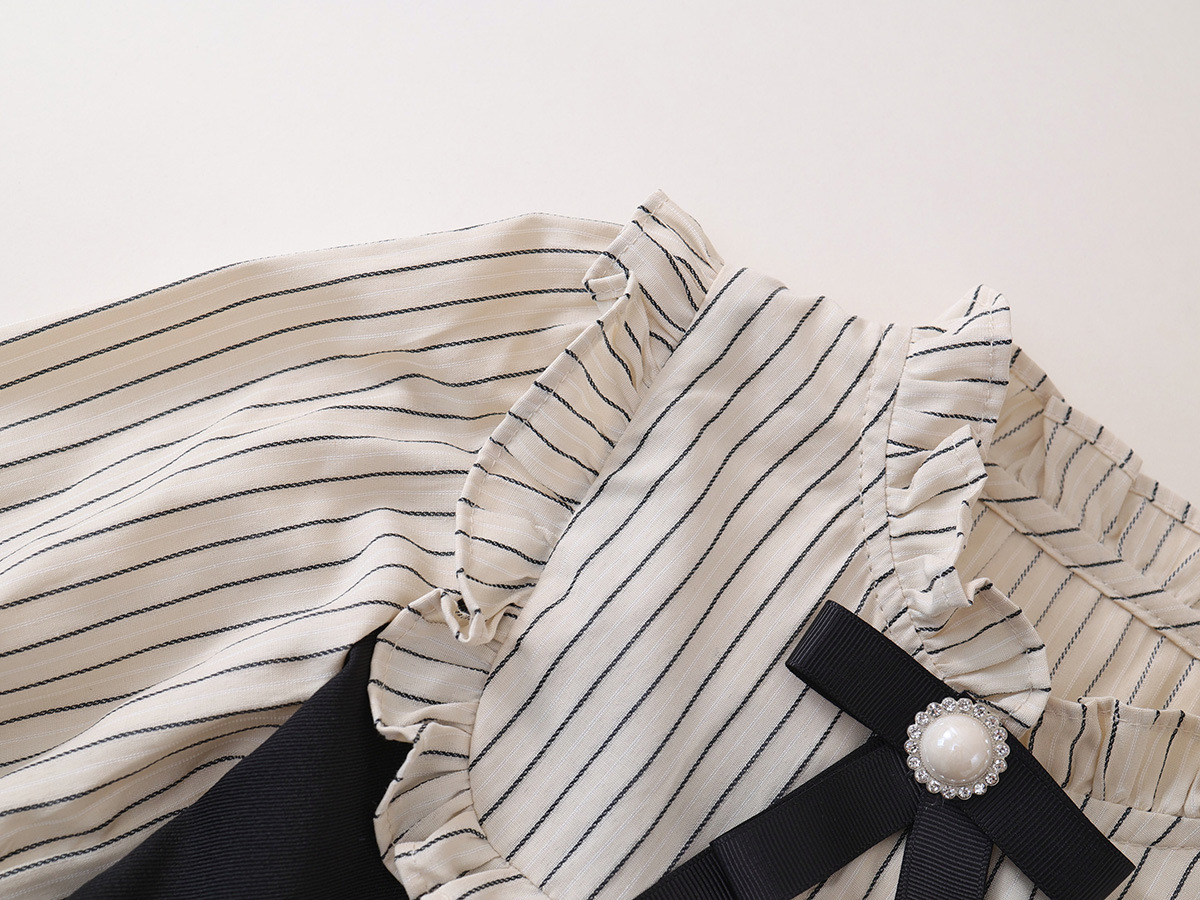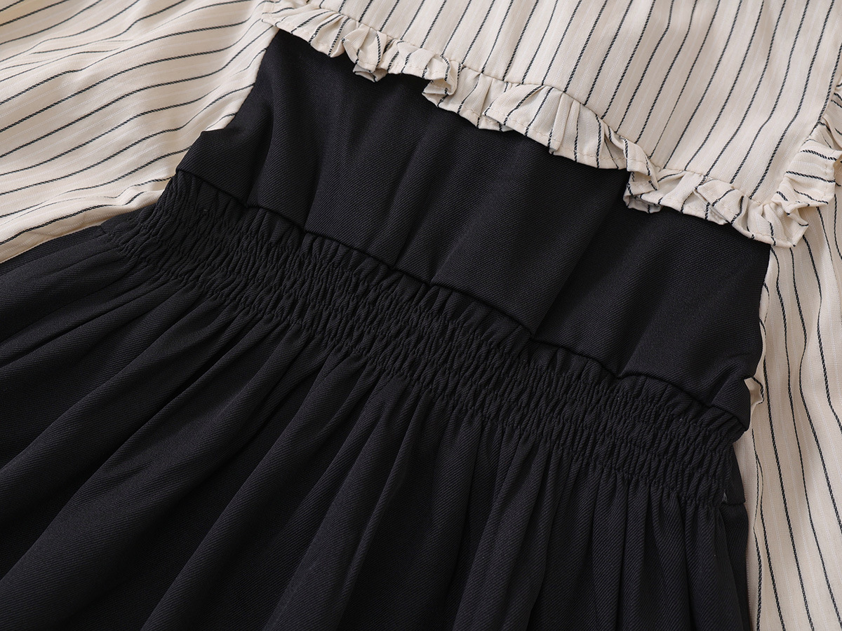 여자 대학 스타일 드레스 2025 가을 새로운 아기 소녀 가짜 투피스 한국어 버전 스트라이프 대비 색상 긴팔 드레스