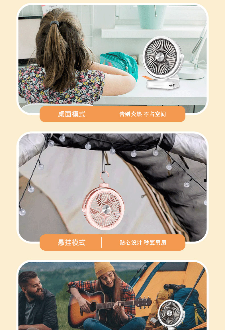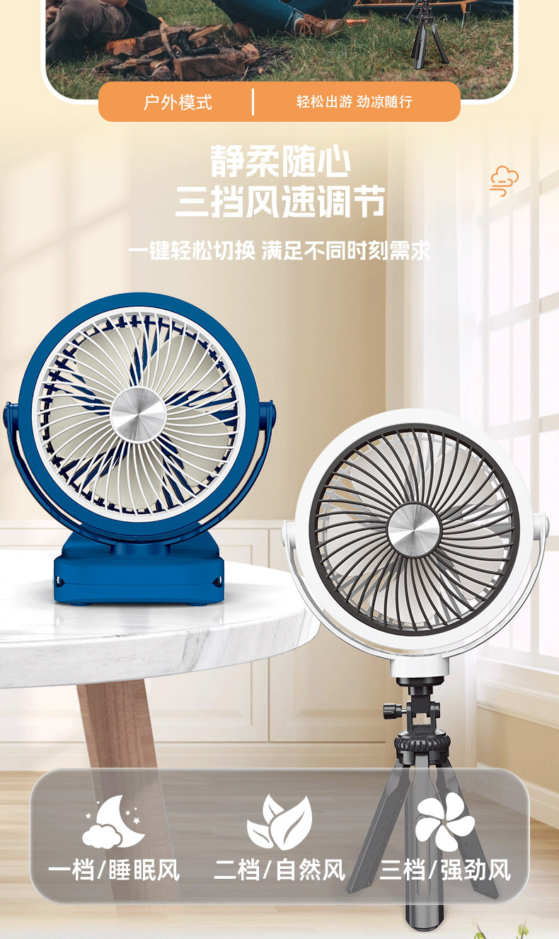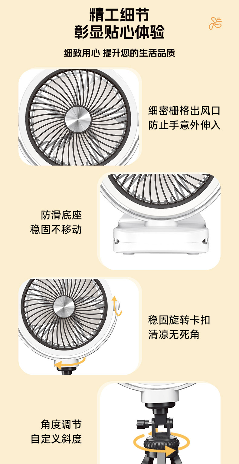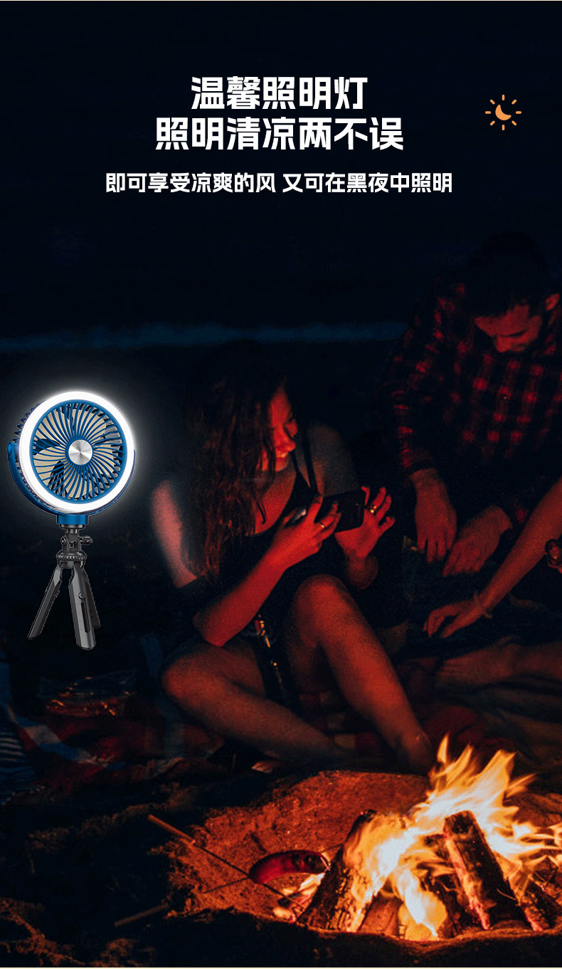 국경 간 기능 멀티 USB 충전 매일 야외 유모차 캠핑 샹들리에 팬 삼각대 야간 조명 선풍기 공장스토어 가기