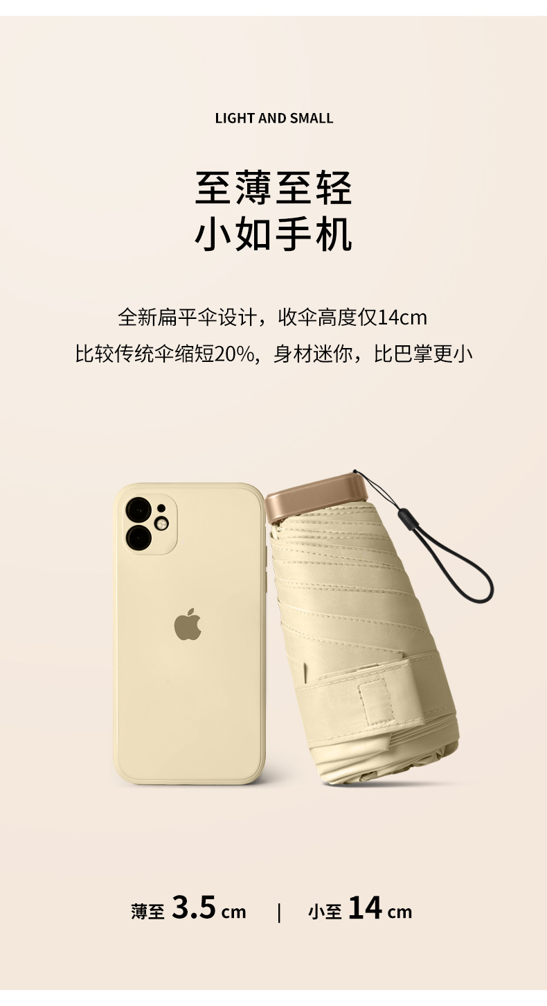 미니 포켓 6 배 평면 태양 우산 태양 보호 자외선 보호 우산 여성 비 이중 사용 태양 우산 작은 휴대용스토어 가기