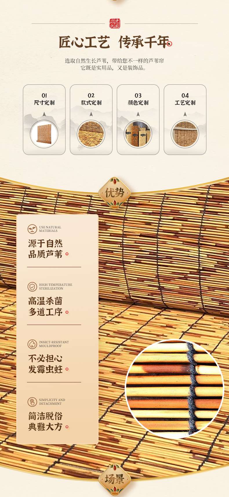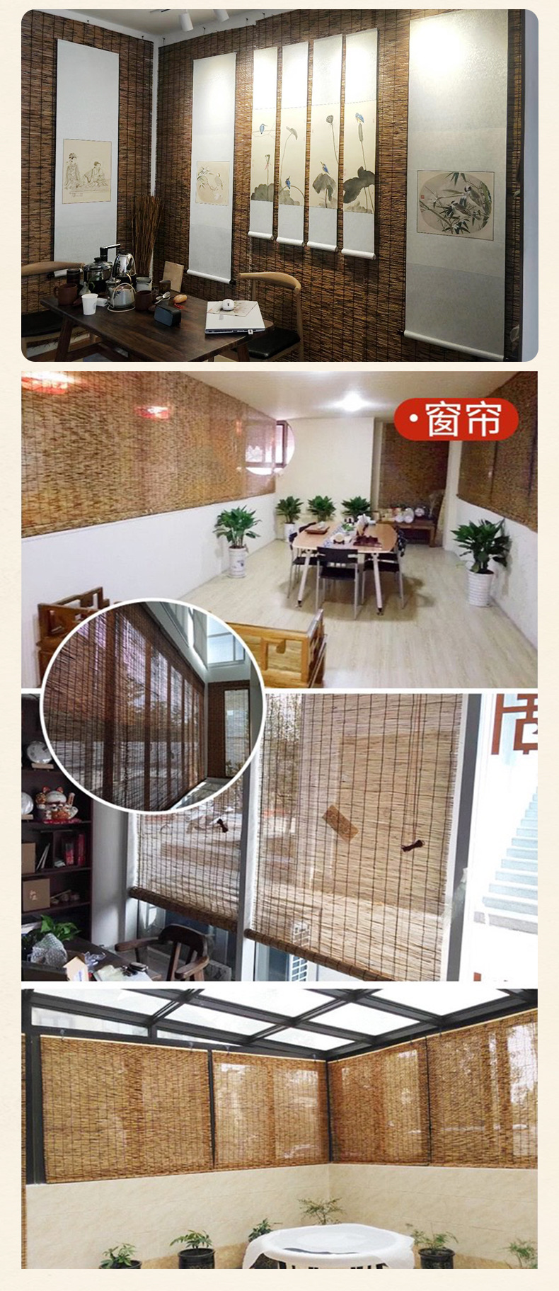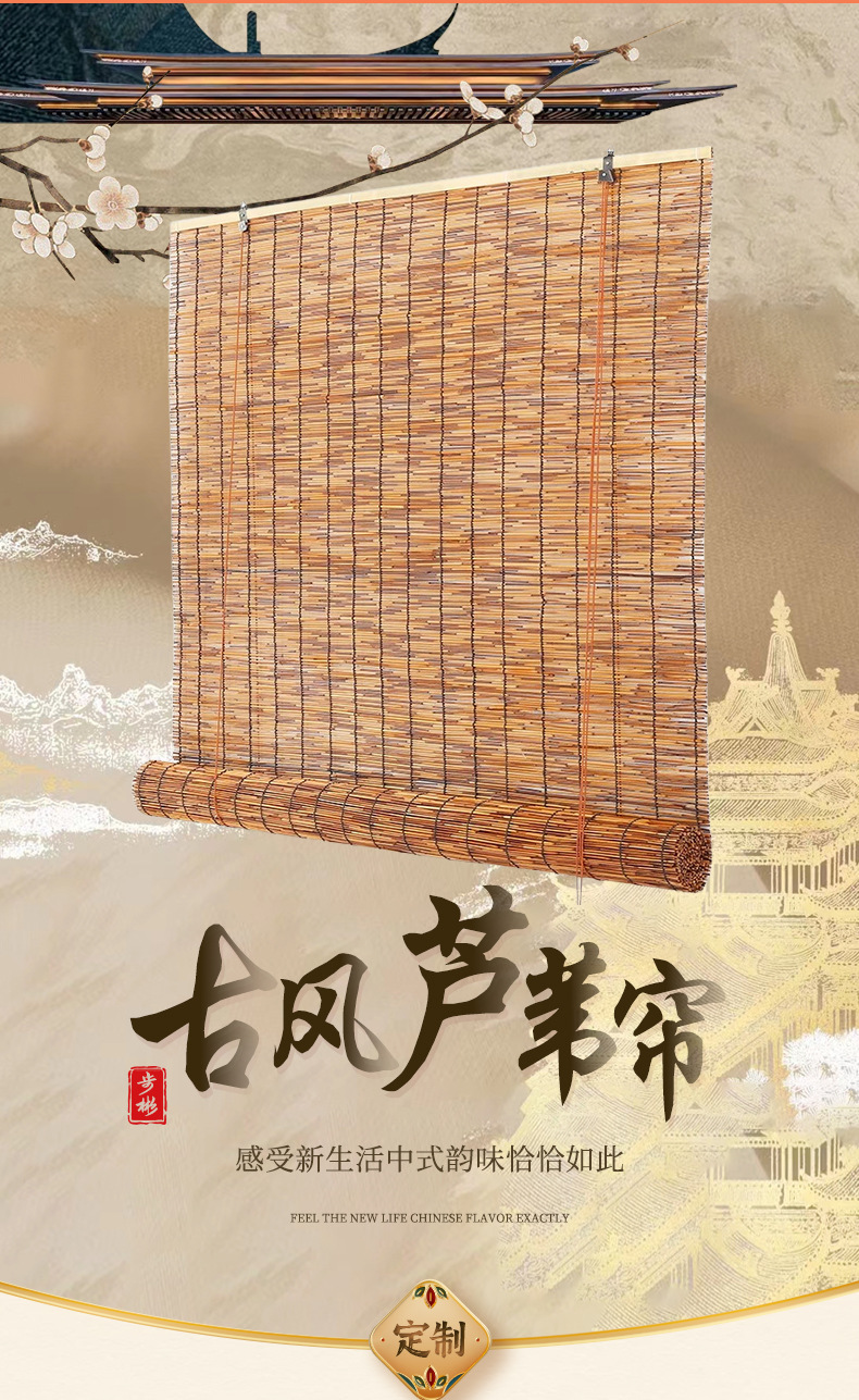 무선 리드 커튼 벽 장식 천장 잔디 커튼 국경 파티션 리프팅 햇빛 대나무 커튼 롤러 커튼스토어 가기
