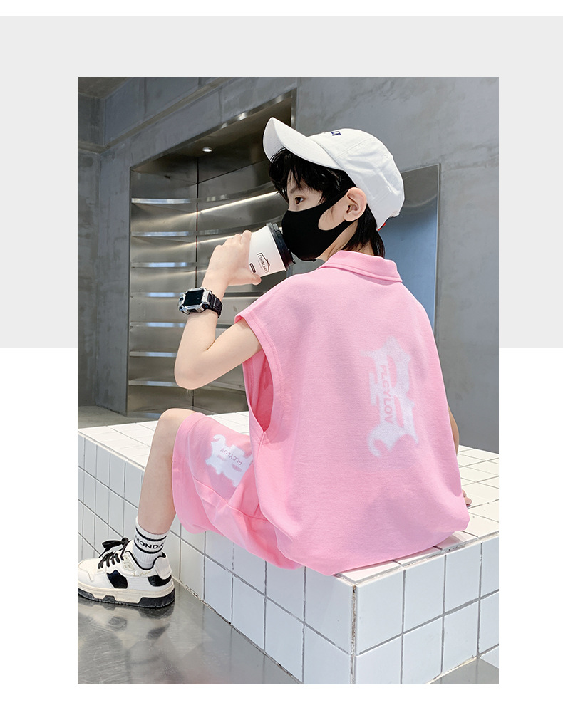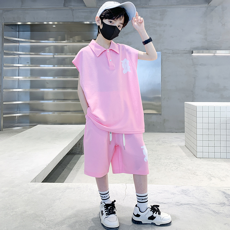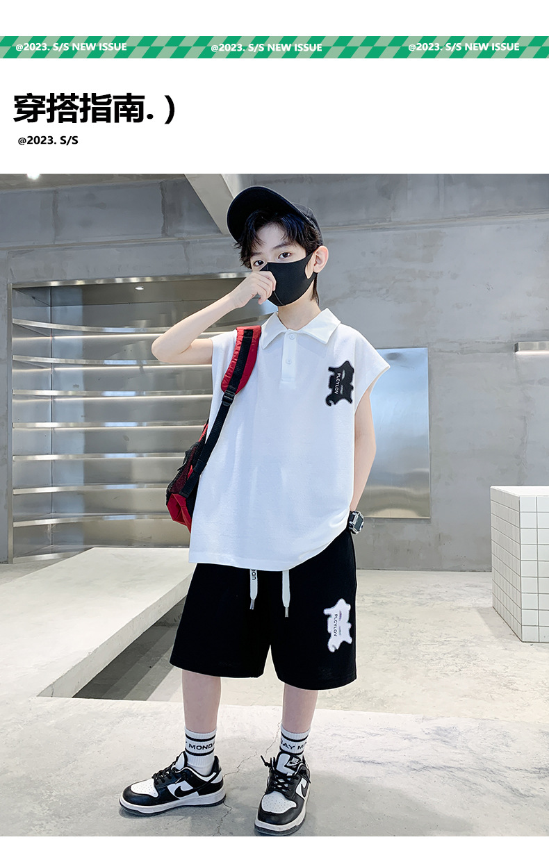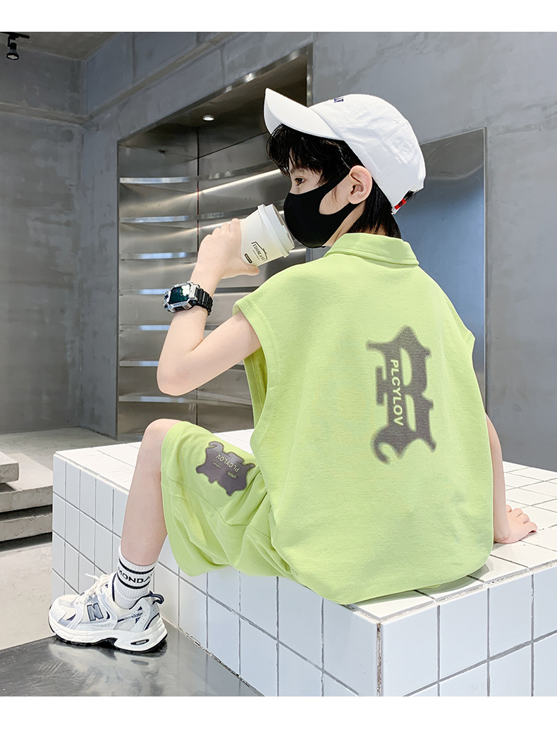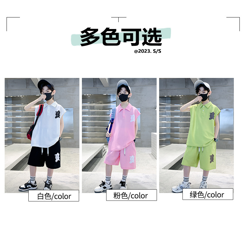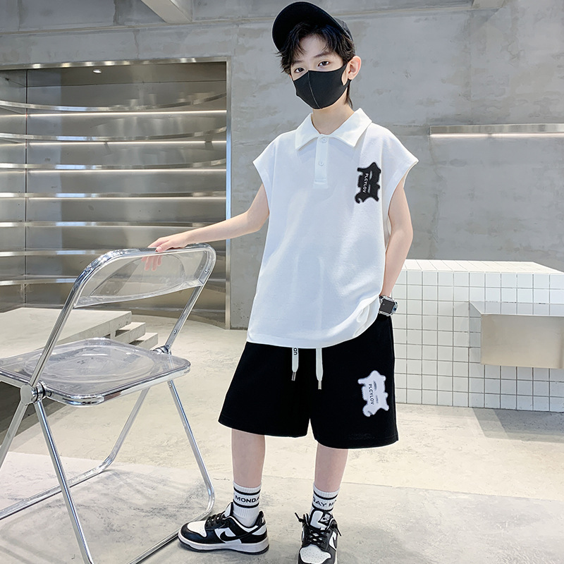 소년 여름 조끼 폴로 셔츠 정장 2025 여름 새로운 스타일 중대형 어린이 스포츠 잘 생긴 여름 투피스 세트스토어 가기