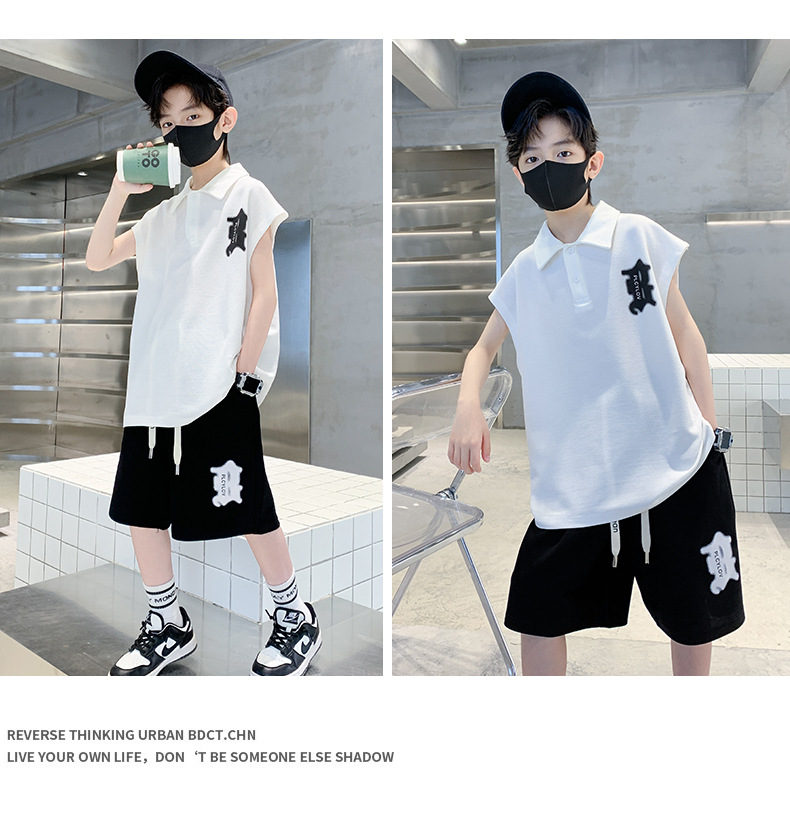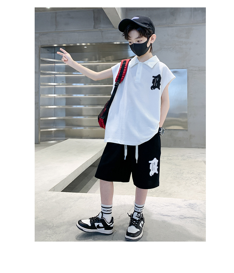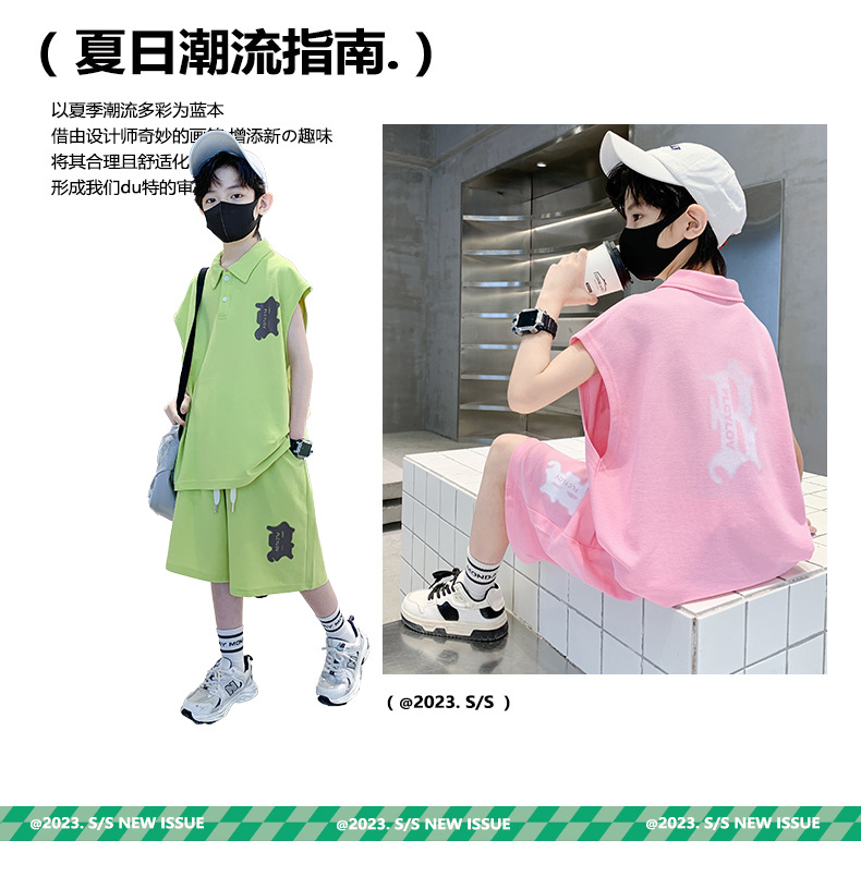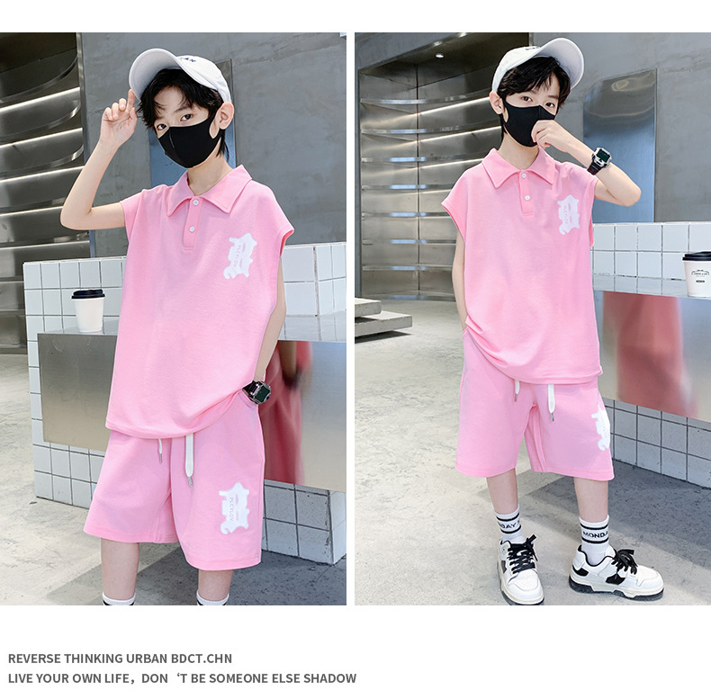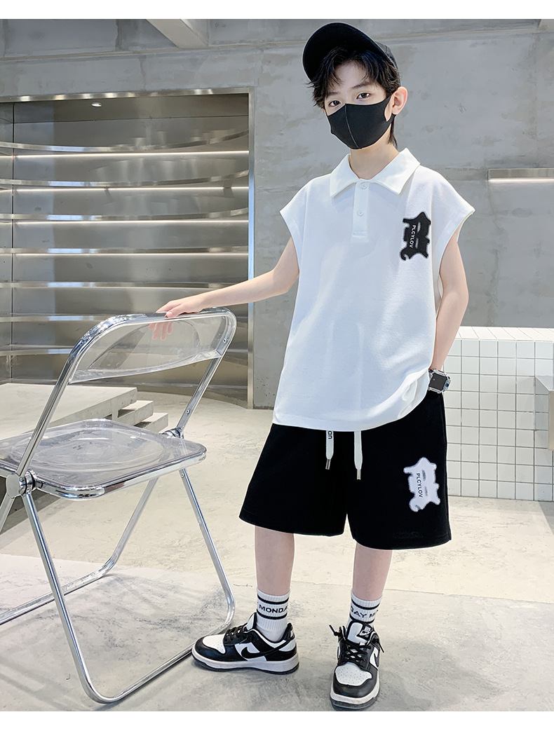소년 여름 조끼 폴로 셔츠 정장 2025 여름 새로운 스타일 중대형 어린이 스포츠 잘 생긴 여름 투피스 세트스토어 가기
