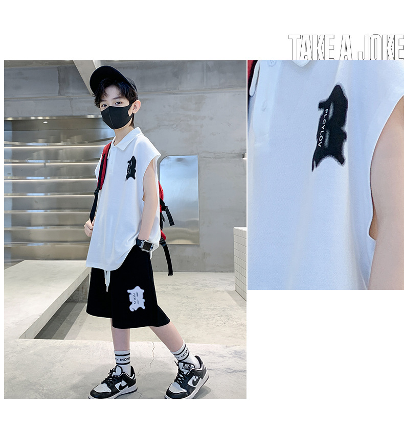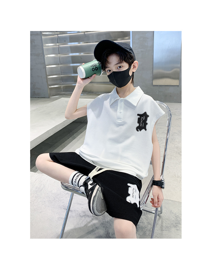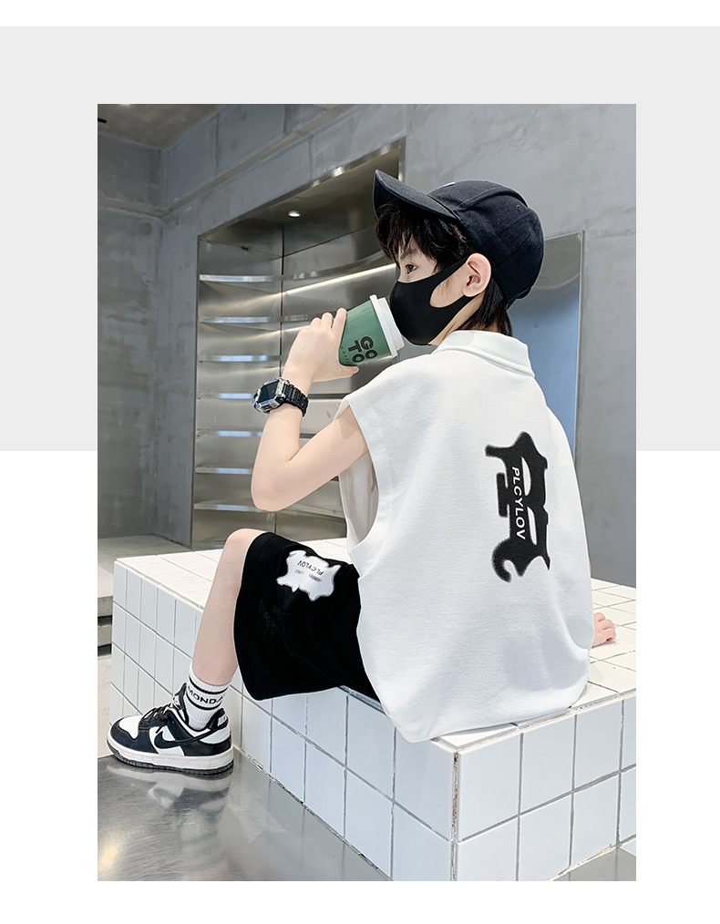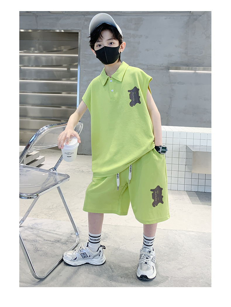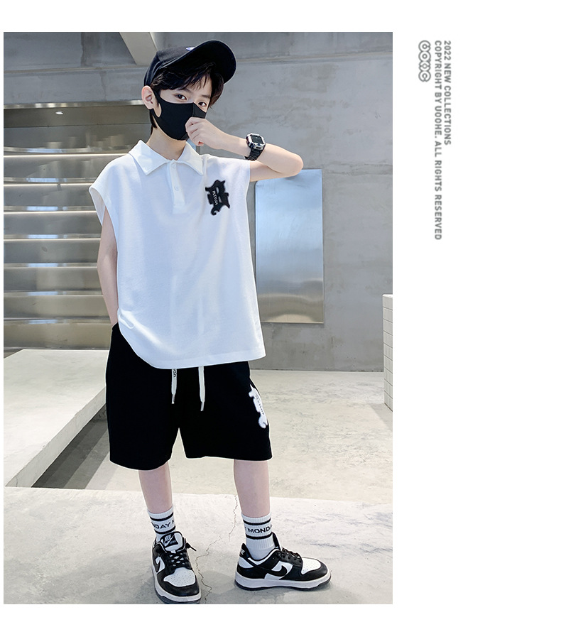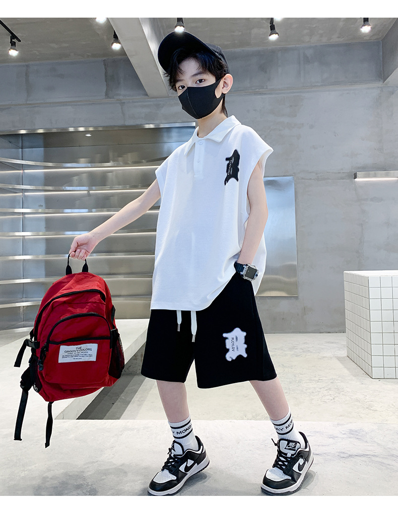 소년 여름 조끼 폴로 셔츠 정장 2025 여름 새로운 스타일 중대형 어린이 스포츠 잘 생긴 여름 투피스 세트스토어 가기