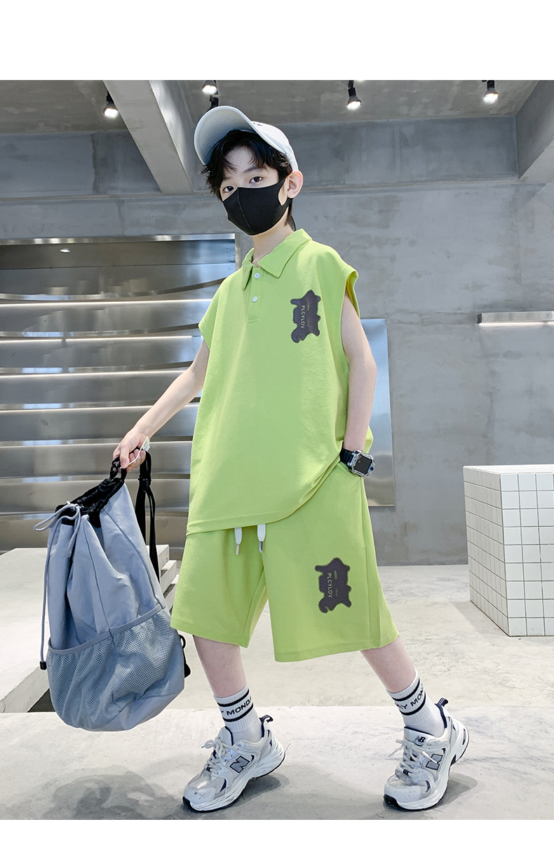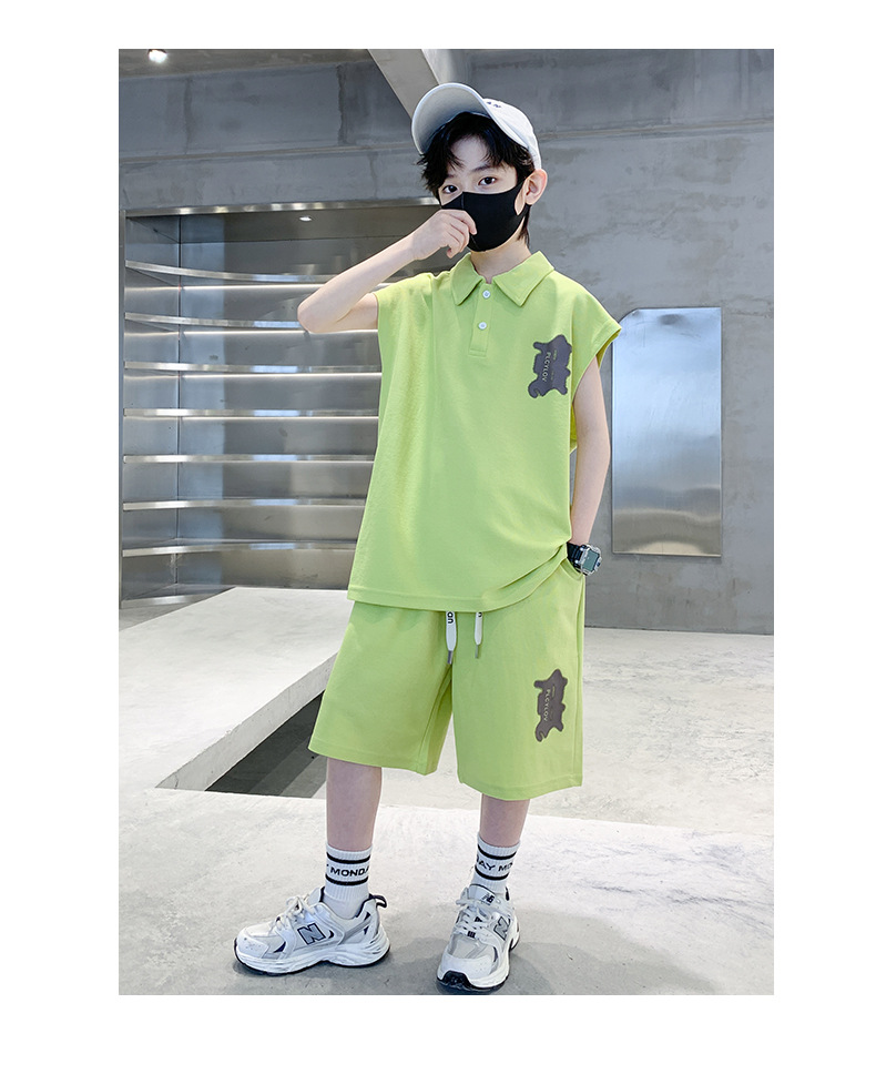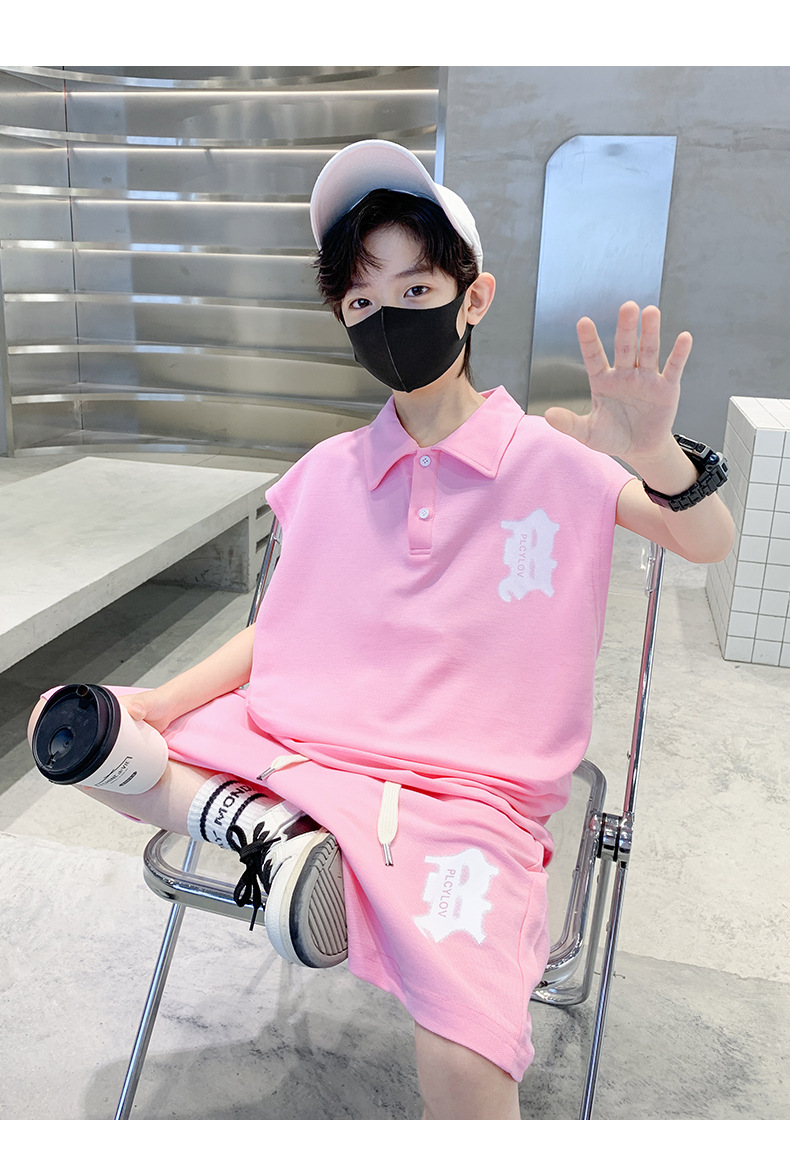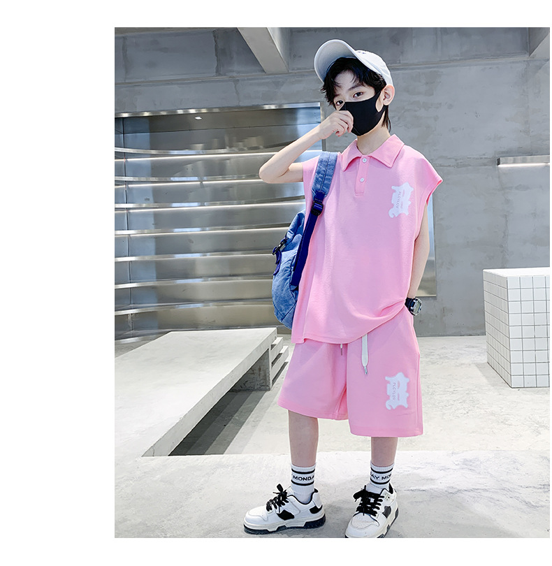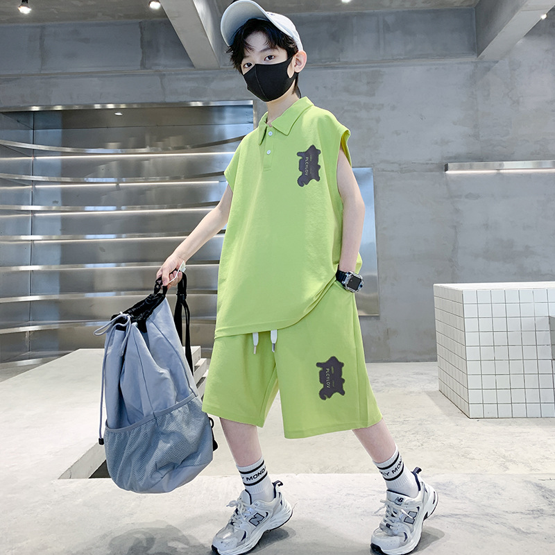 소년 여름 조끼 폴로 셔츠 정장 2025 여름 새로운 스타일 중대형 어린이 스포츠 잘 생긴 여름 투피스 세트