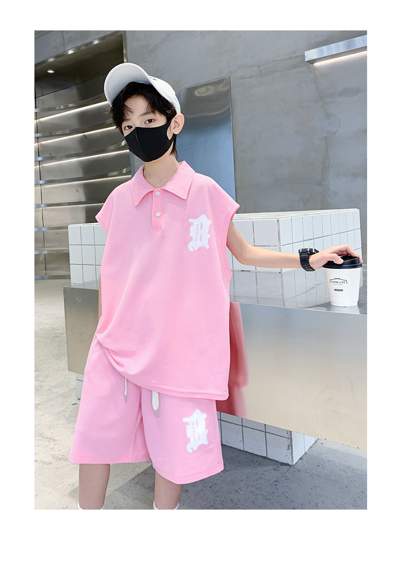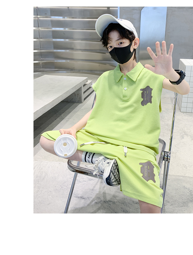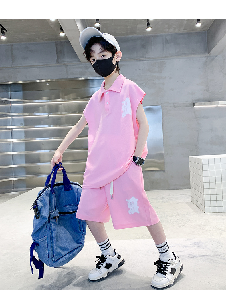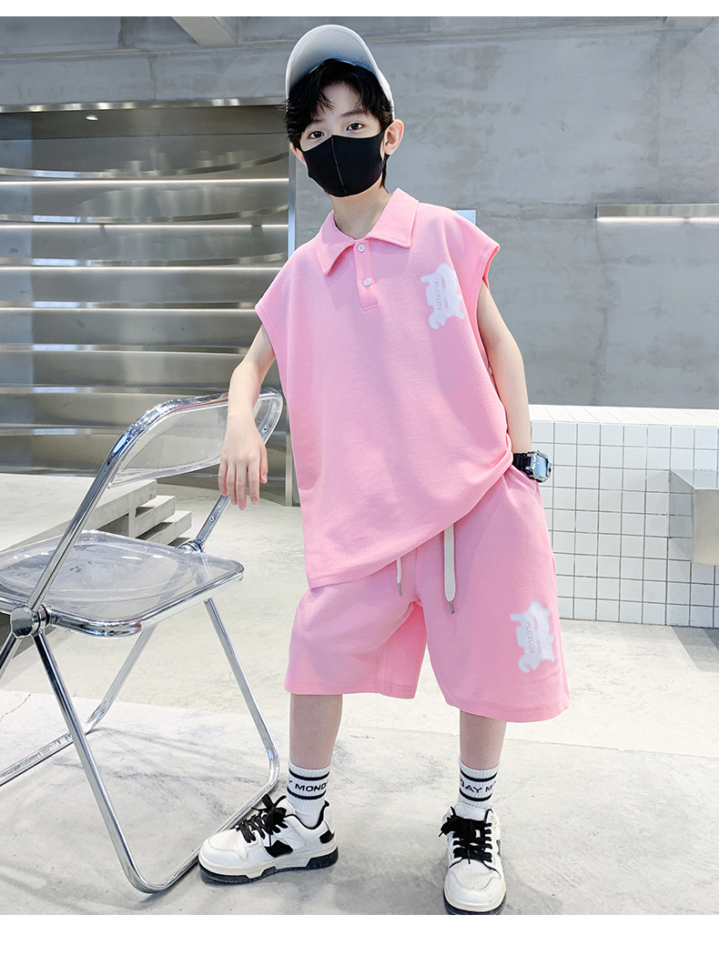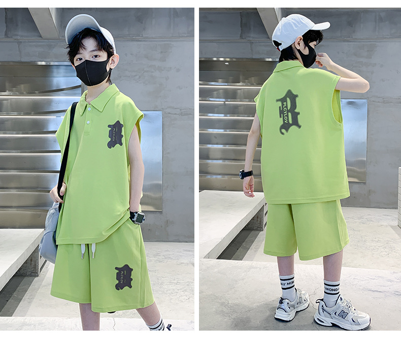 소년 여름 조끼 폴로 셔츠 정장 2025 여름 새로운 스타일 중대형 어린이 스포츠 잘 생긴 여름 투피스 세트