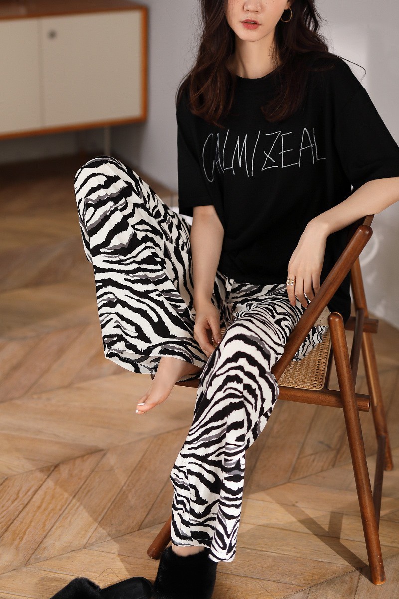 • 흑백 문자 얼룩말 프린트 바지 짧은 길이