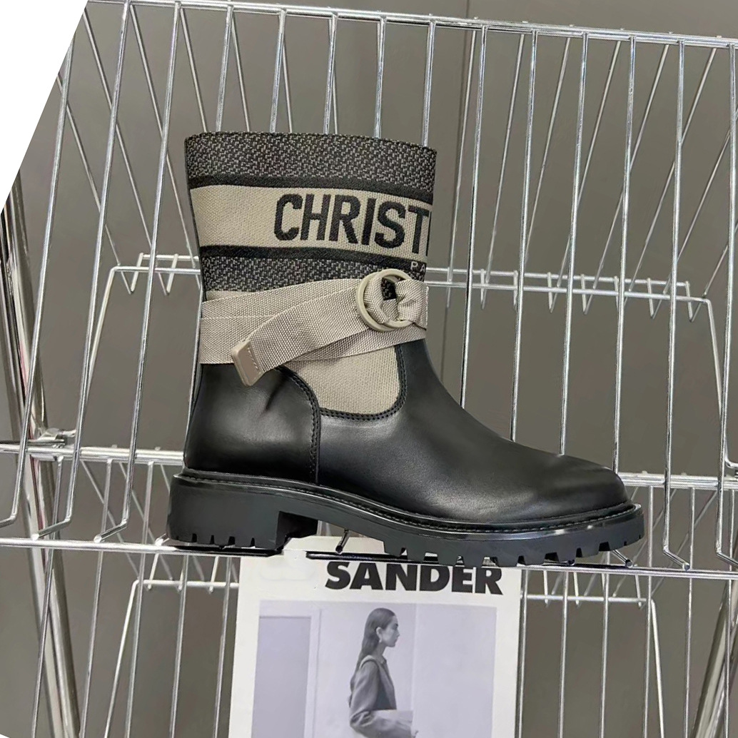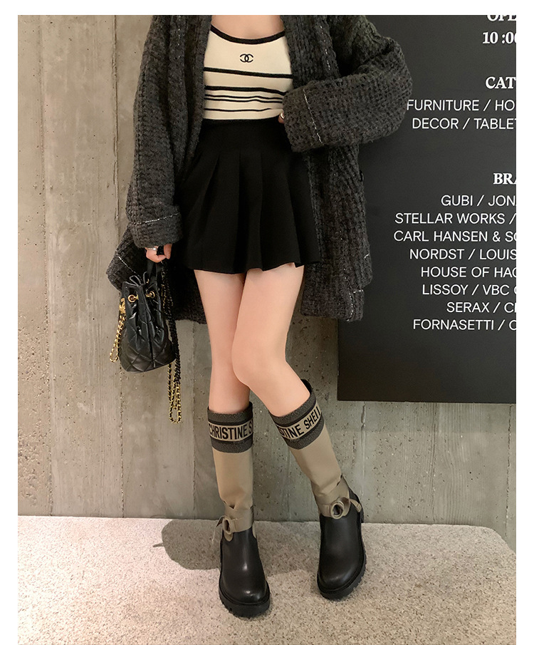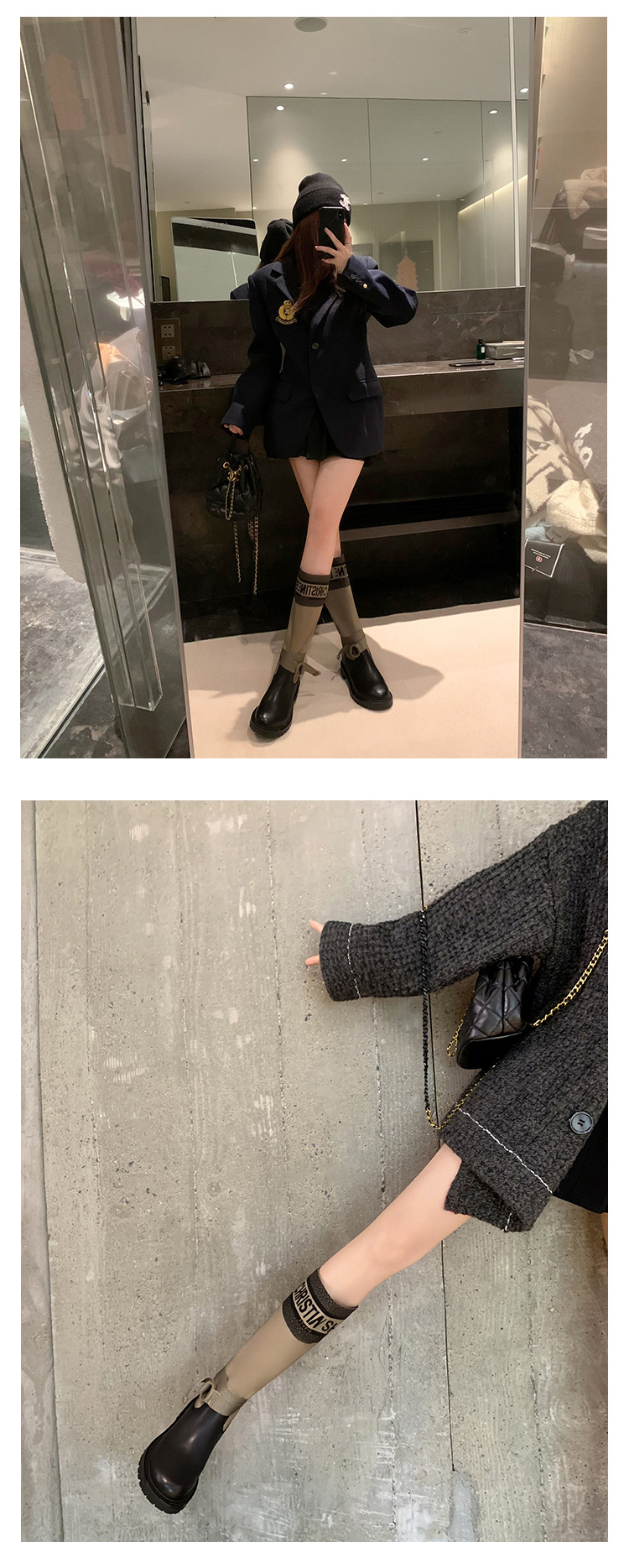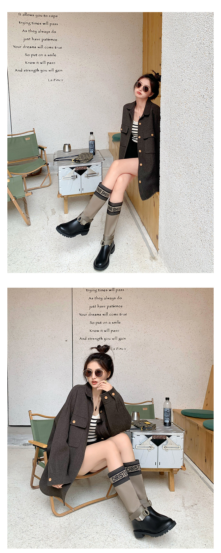 2024 봄 새로운 D 편지 틈새 디자인 두꺼운 다리 무릎 부츠 여성 중간 송아지 부츠 두꺼운 힐 높은 부츠
