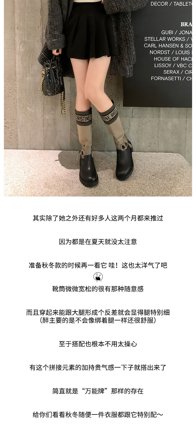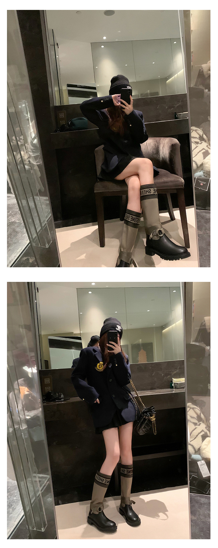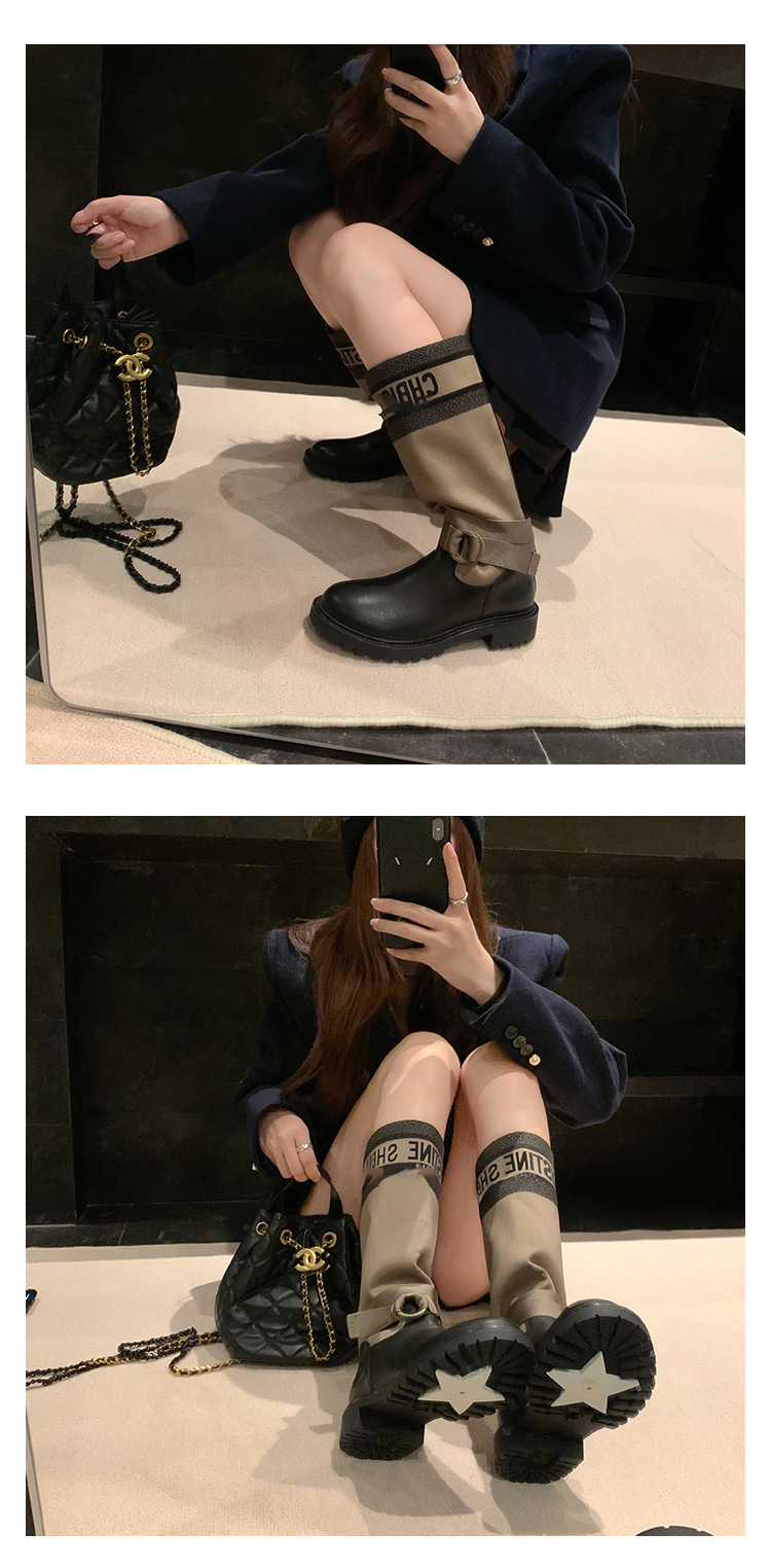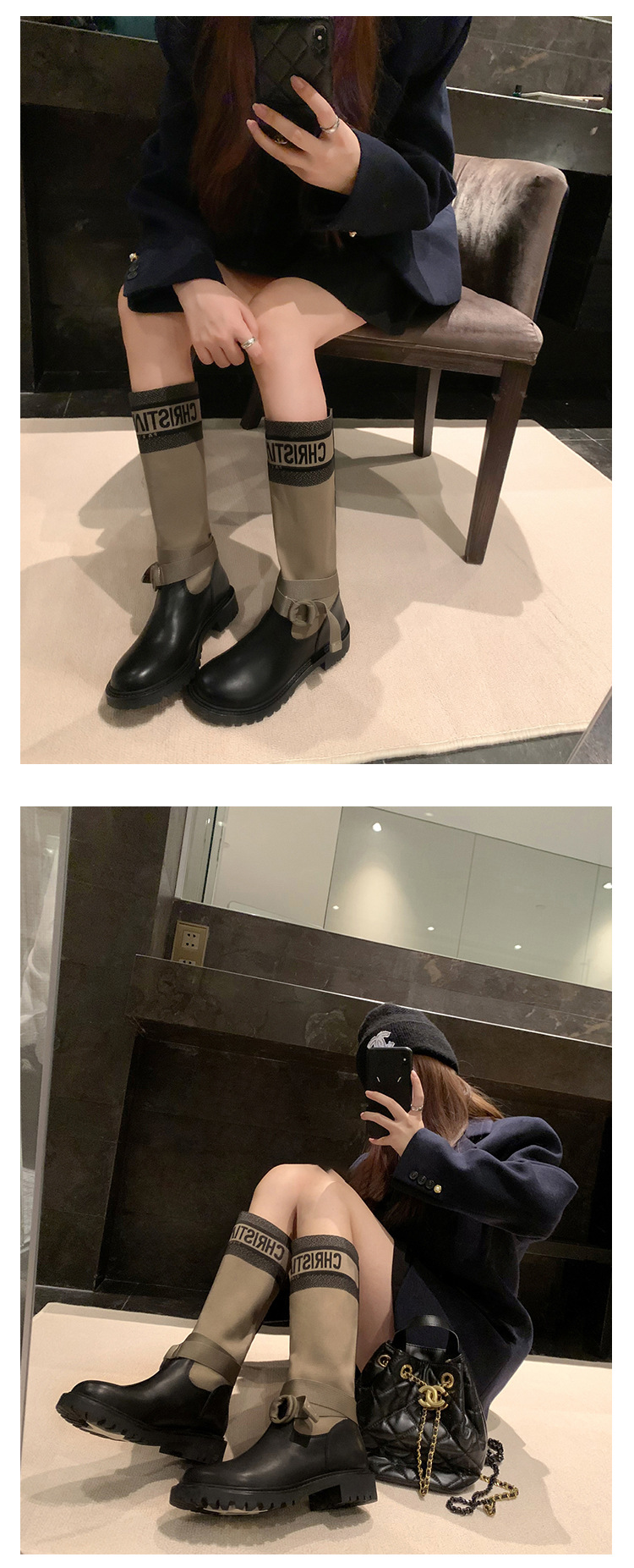 2024 봄 새로운 D 편지 틈새 디자인 두꺼운 다리 무릎 부츠 여성 중간 송아지 부츠 두꺼운 힐 높은 부츠스토어 가기